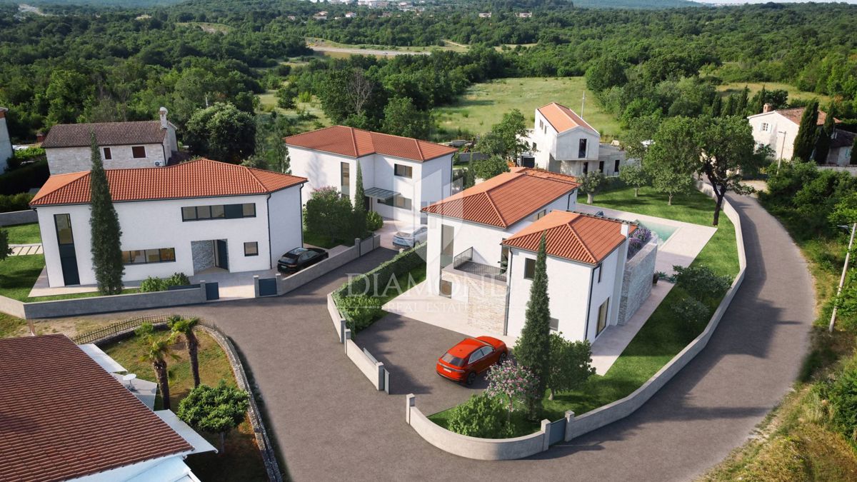 Poreč, okolica, idilična moderna vila sa istarskim akcentom u izgradnji!
