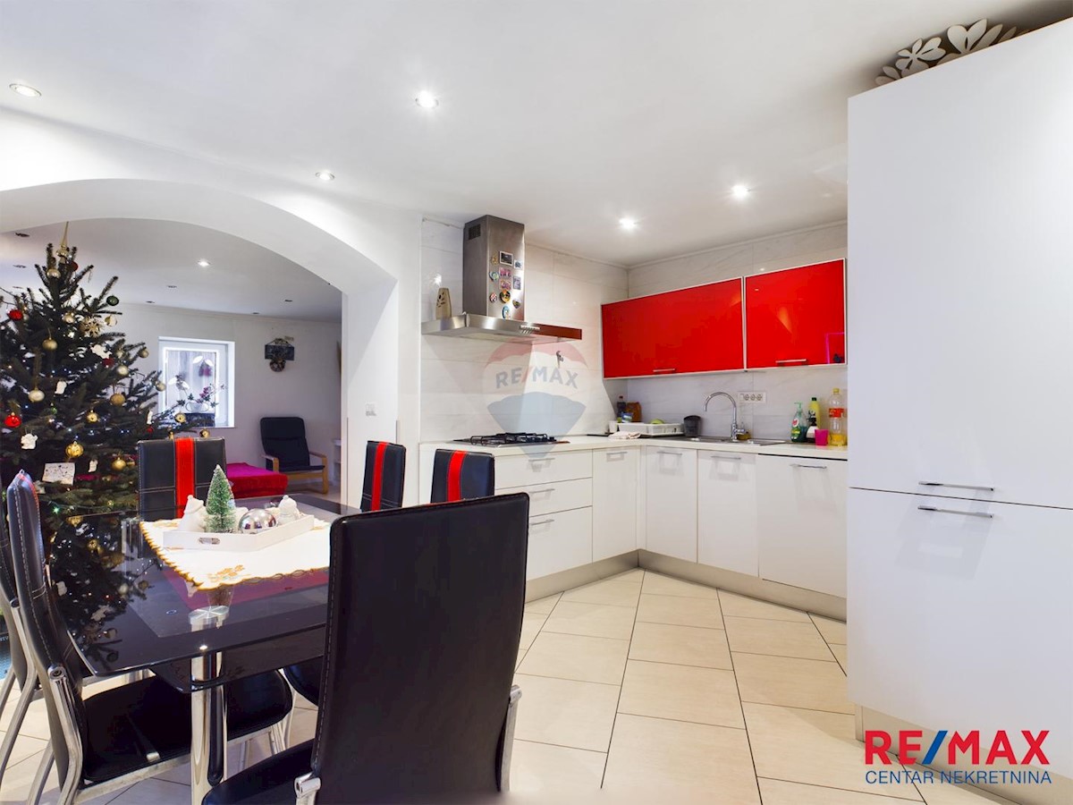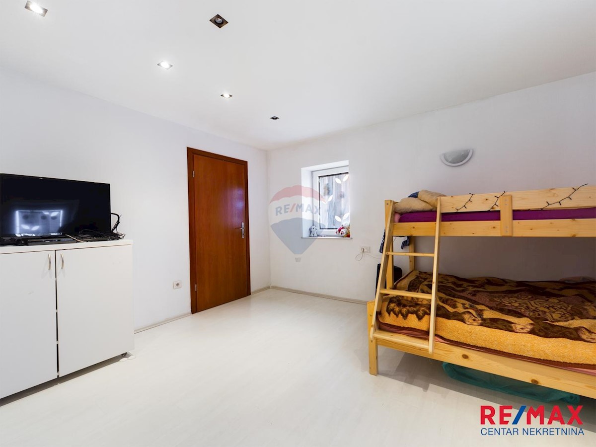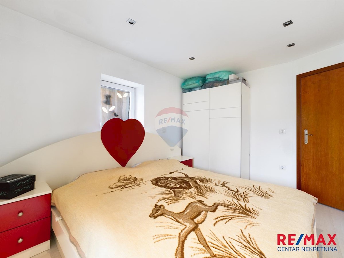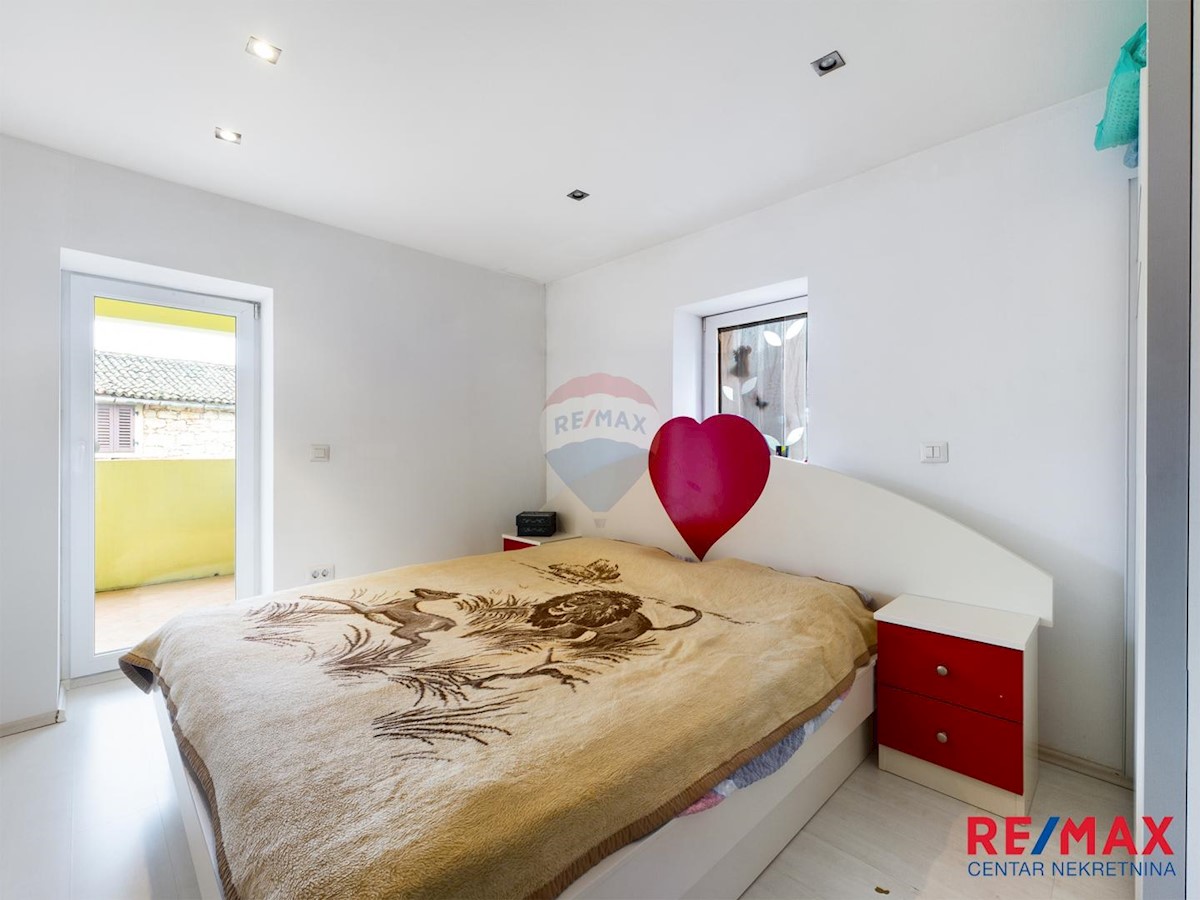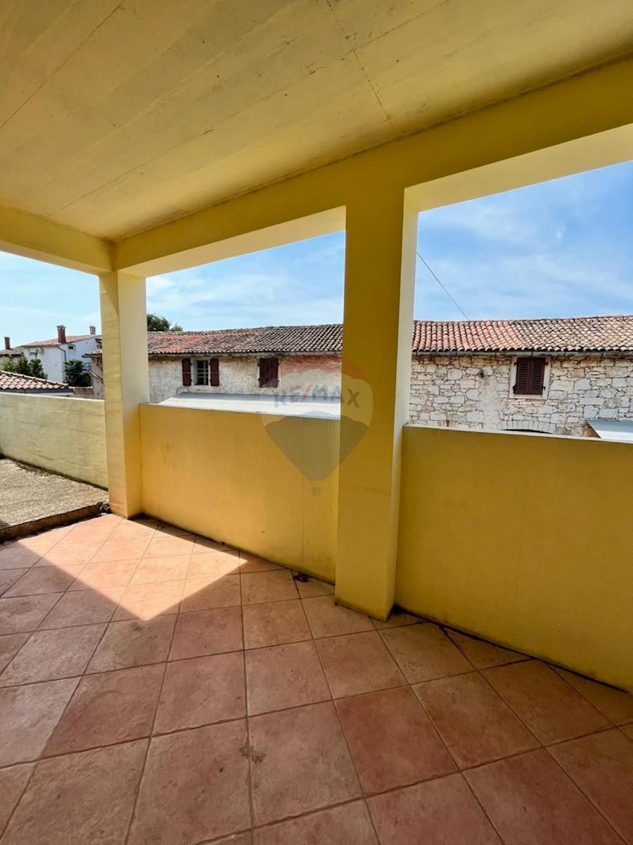 U malom mjestu udaljenom 7 km od Poreča, sa svim potrebnim sadržajem kao što su škola, pošta, crkva, trgovina, linija gradskog autobusa, prodaje se dvojna kuća sa dva odvojena stana i dva parkirna mjesta. U prizemlju kuće se nalazi kuhinja sa blagovaonom,