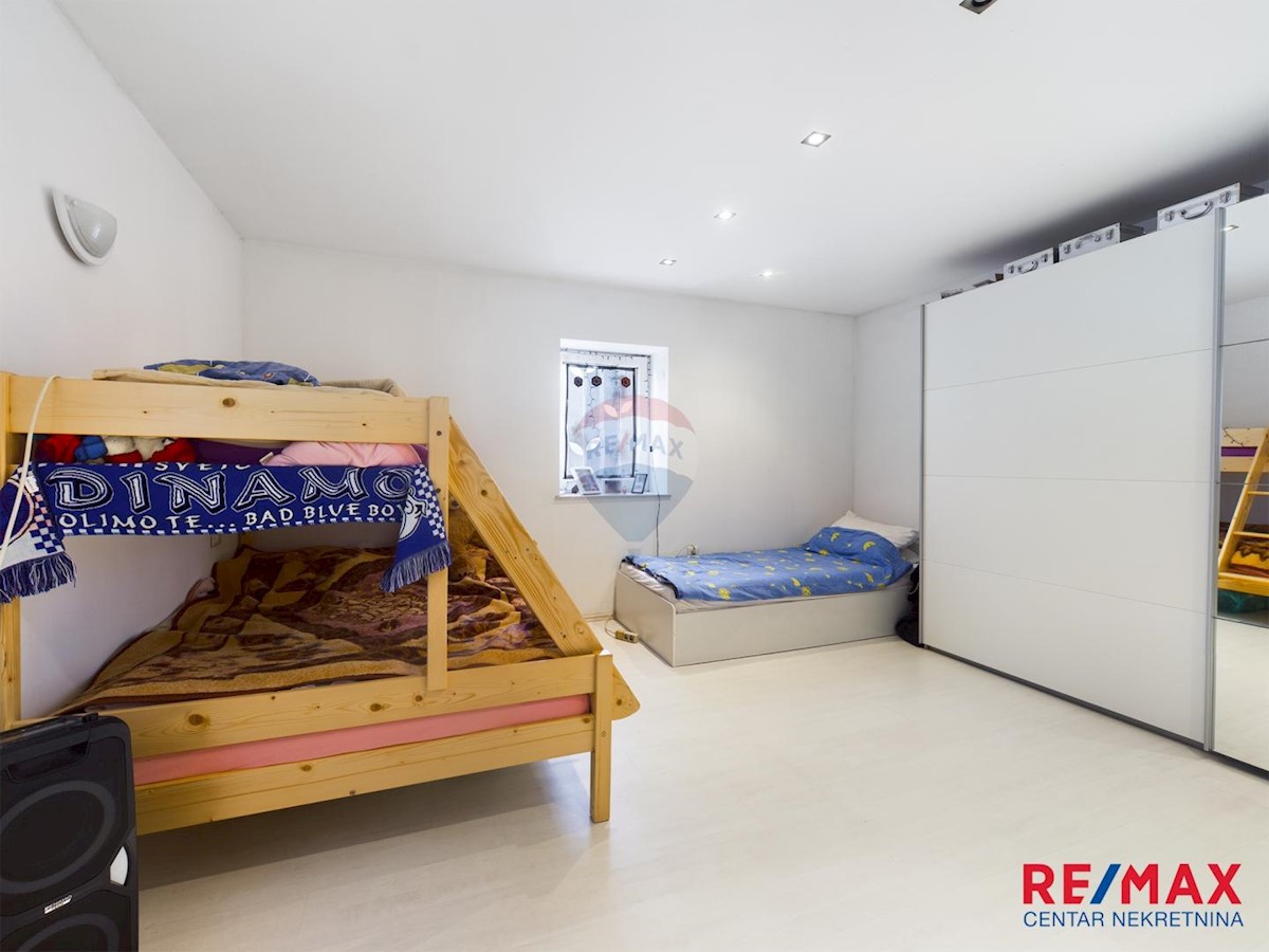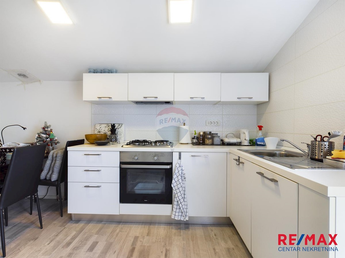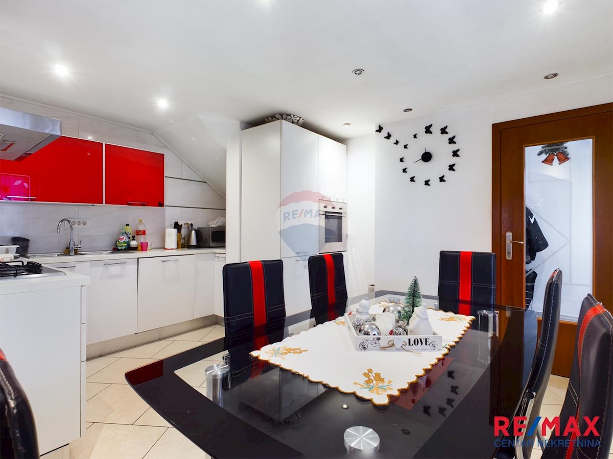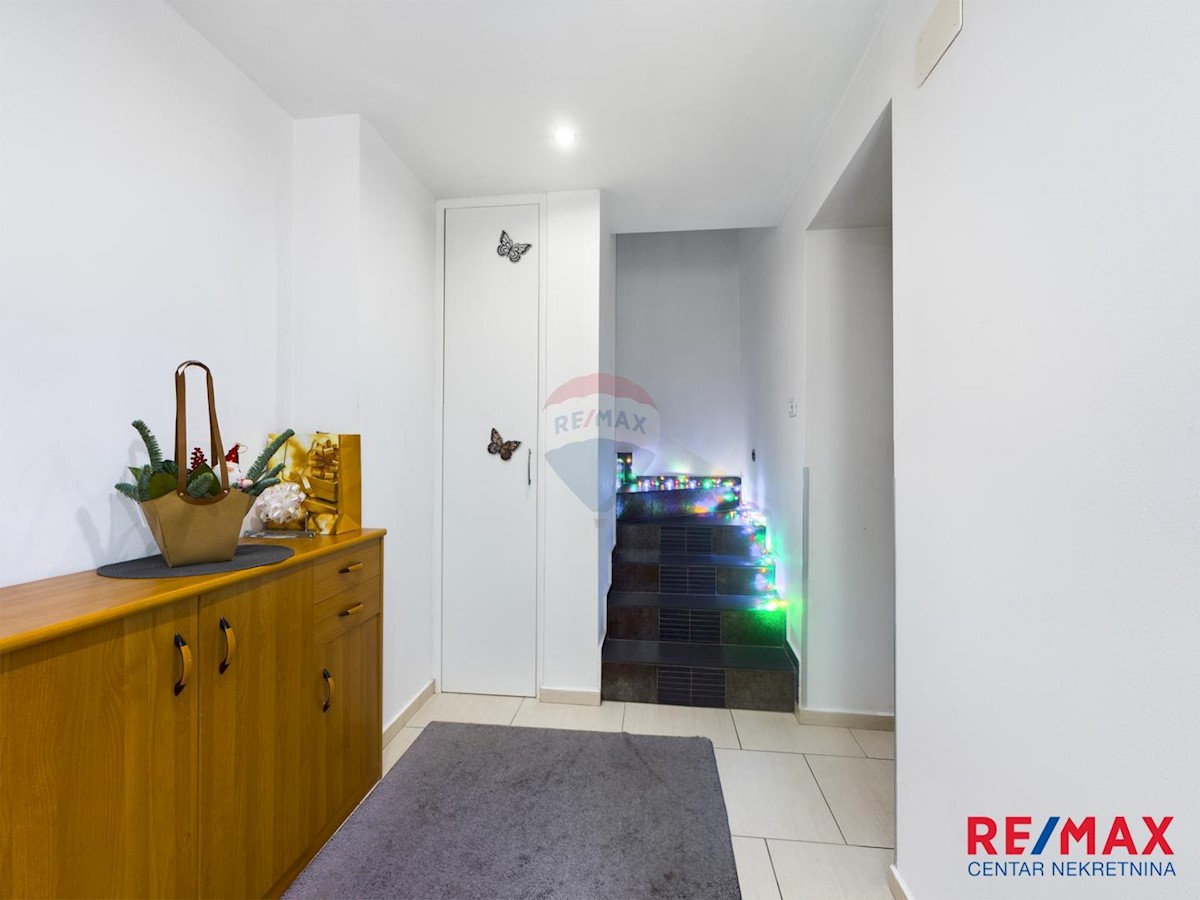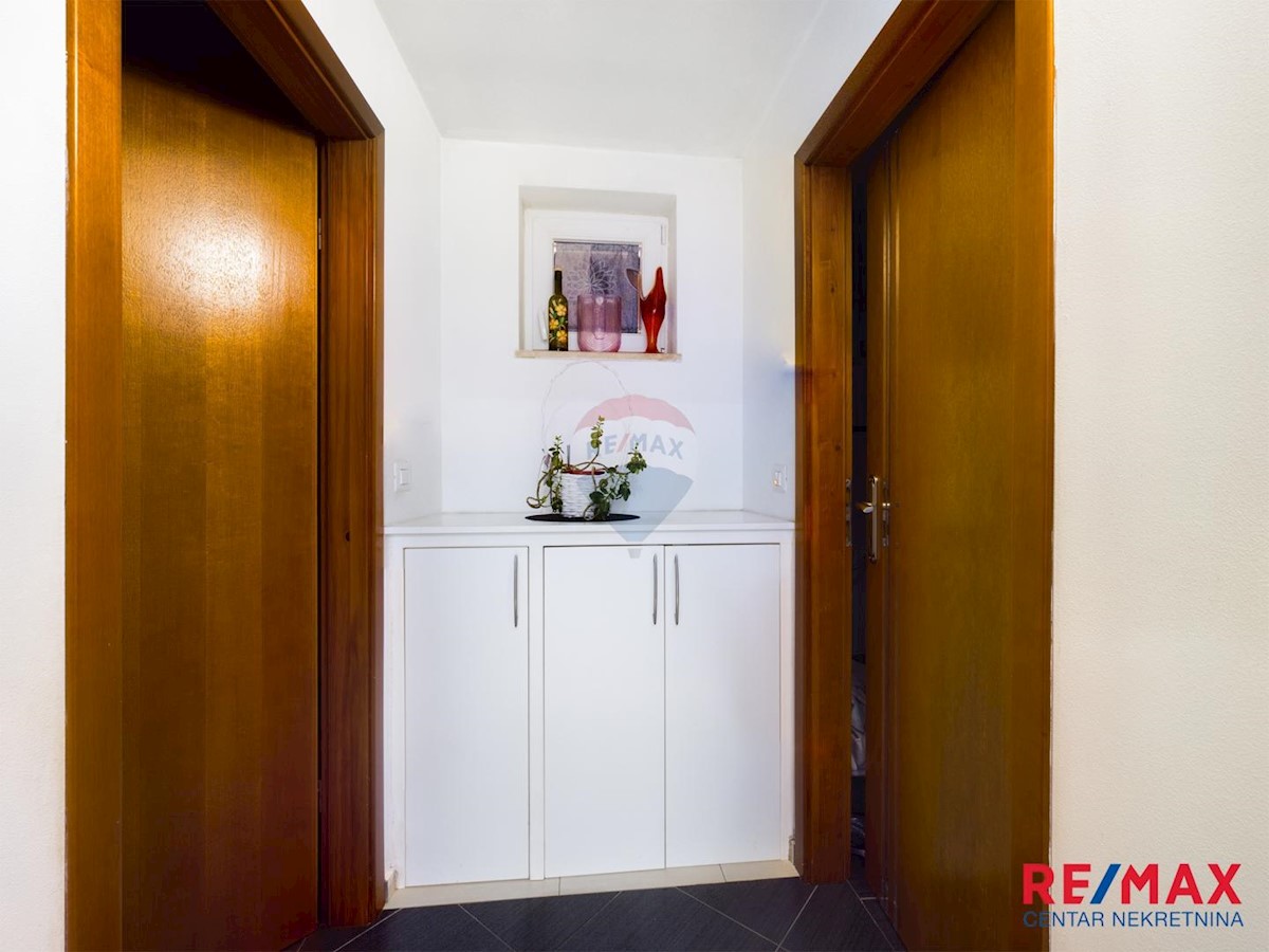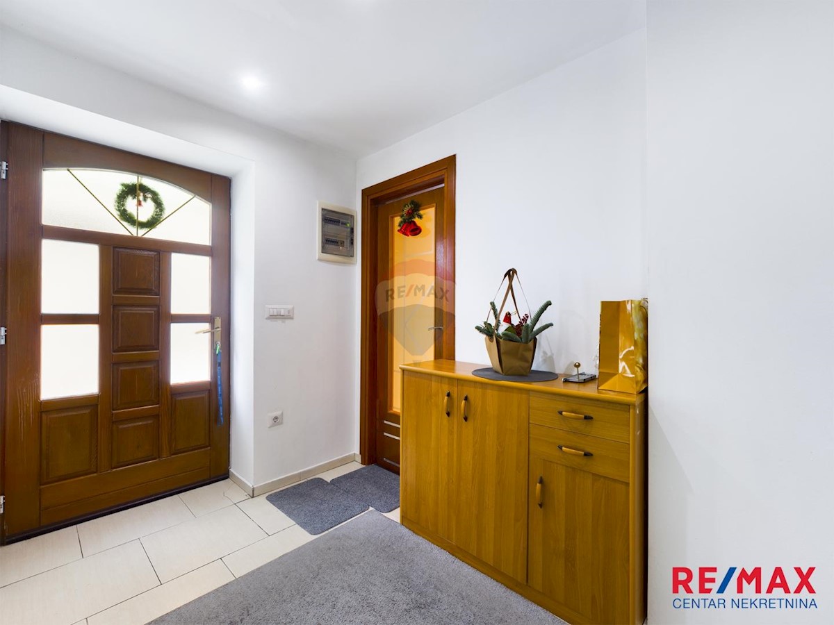 U malom mjestu udaljenom 7 km od Poreča, sa svim potrebnim sadržajem kao što su škola, pošta, crkva, trgovina, linija gradskog autobusa, prodaje se dvojna kuća sa dva odvojena stana i dva parkirna mjesta. U prizemlju kuće se nalazi kuhinja sa blagovaonom,