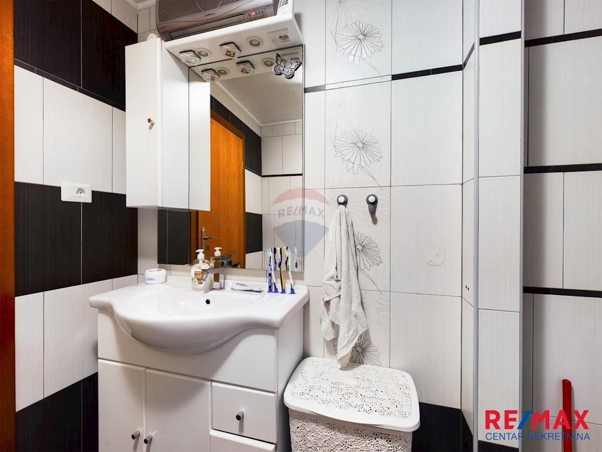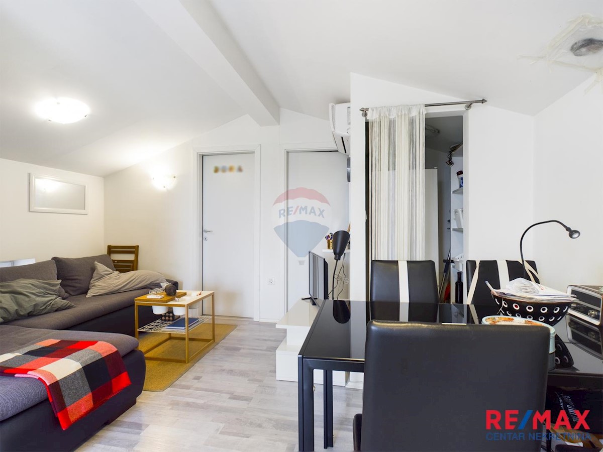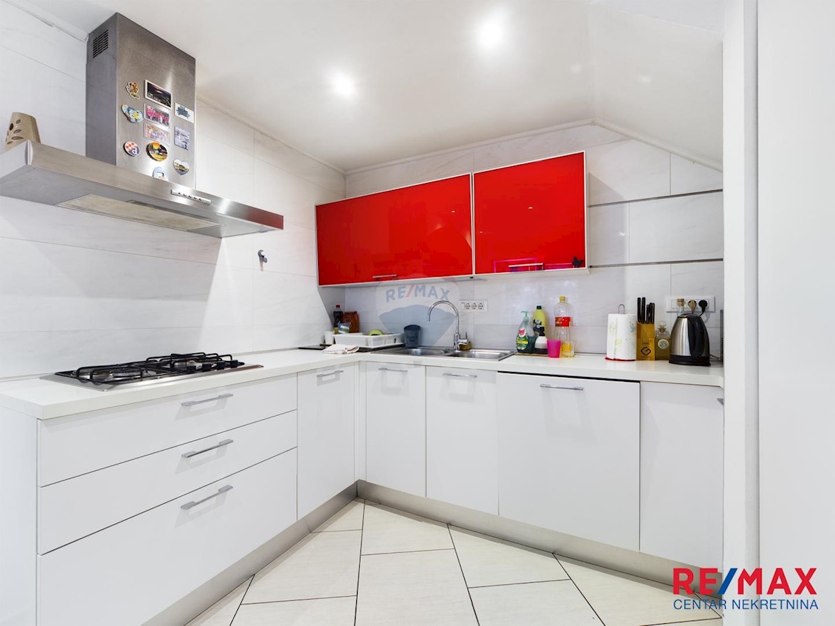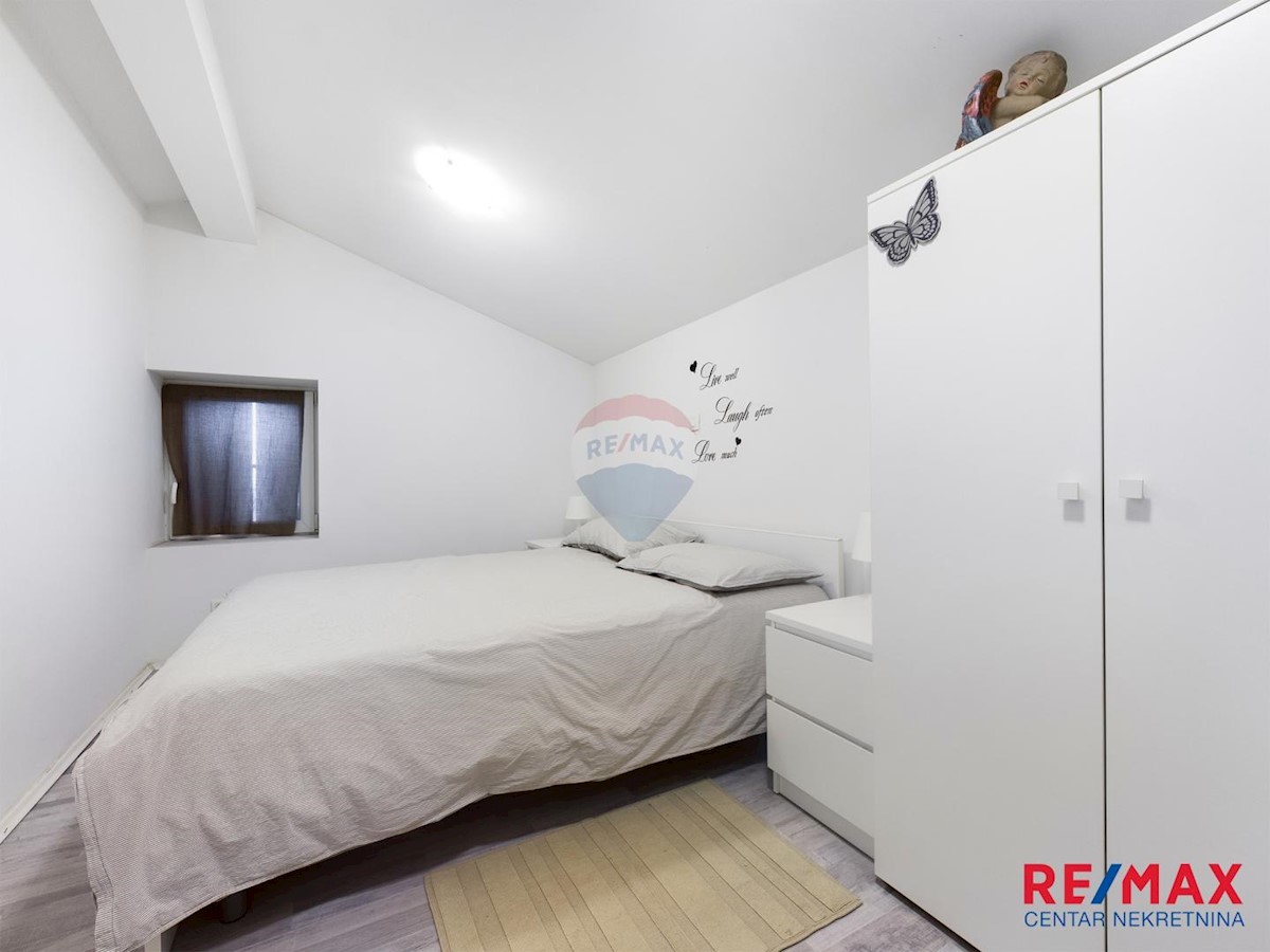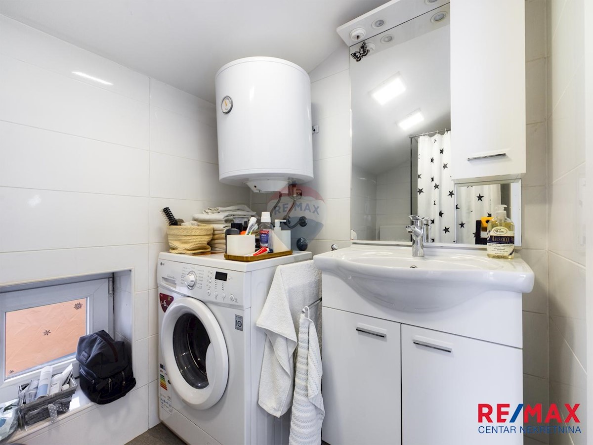 U malom mjestu udaljenom 7 km od Poreča, sa svim potrebnim sadržajem kao što su škola, pošta, crkva, trgovina, linija gradskog autobusa, prodaje se dvojna kuća sa dva odvojena stana i dva parkirna mjesta. U prizemlju kuće se nalazi kuhinja sa blagovaonom,