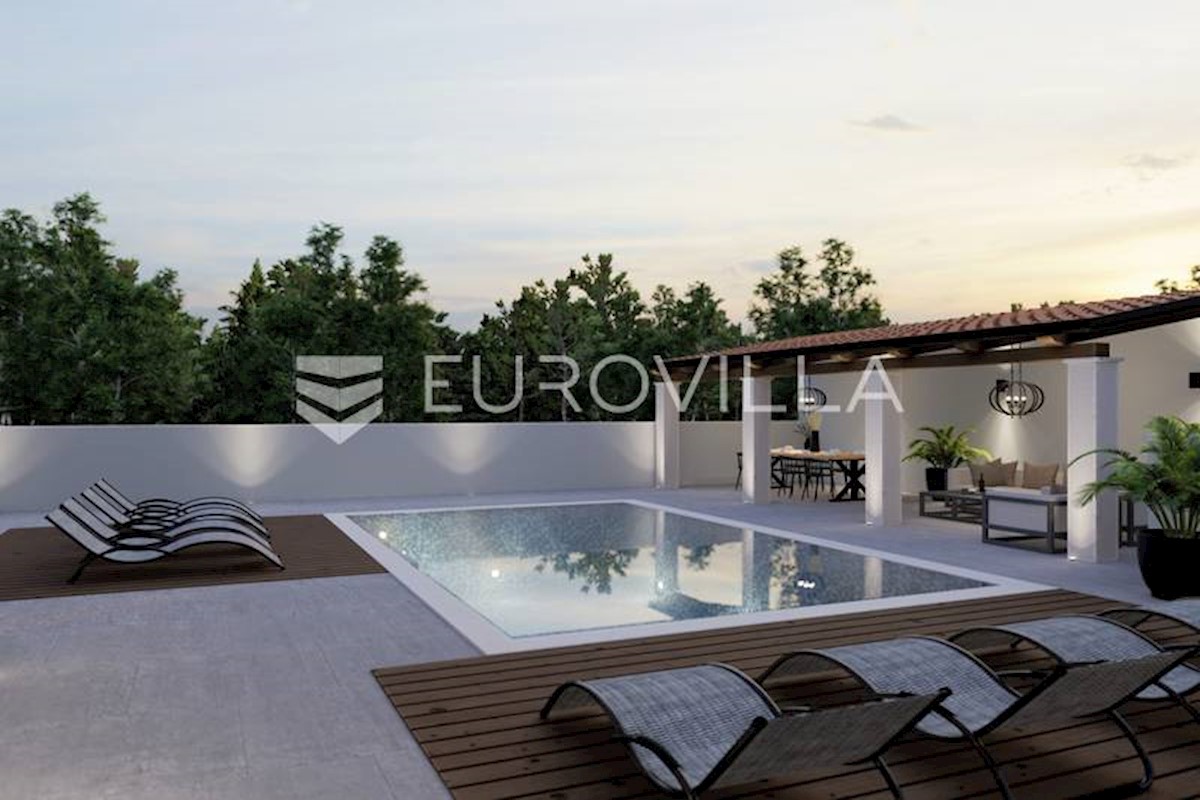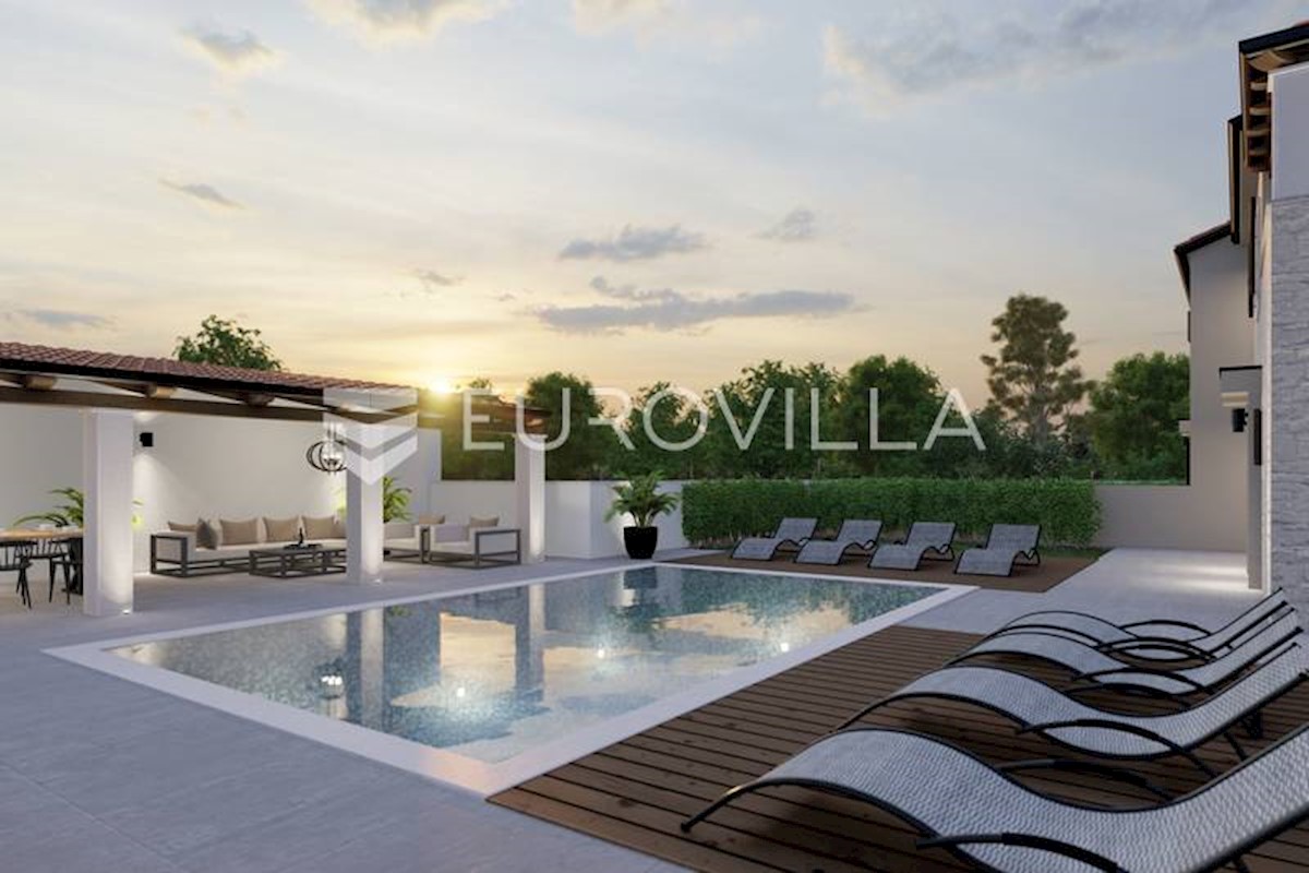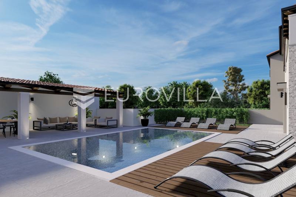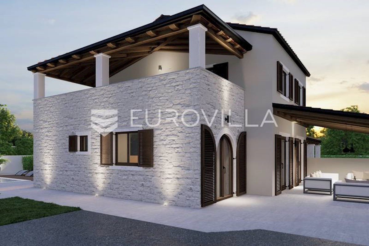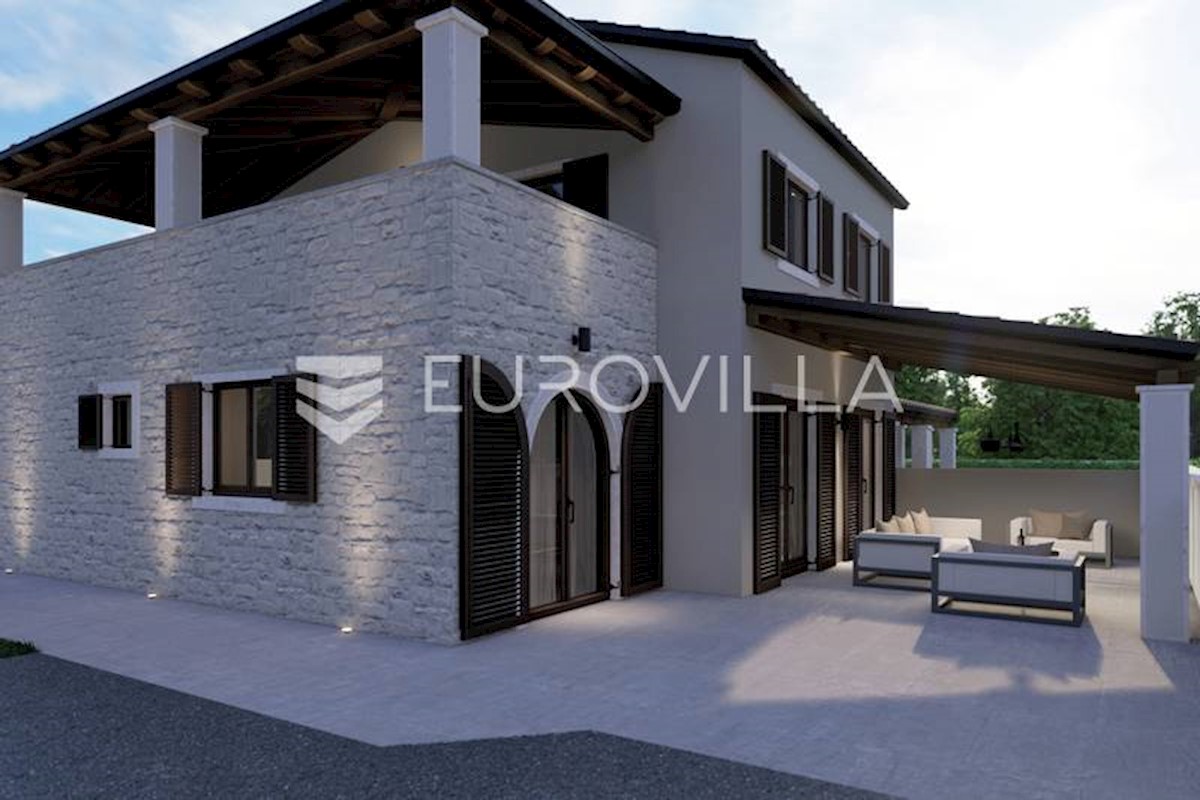 U rubnom djelu naselja nedaleko grada Poreča smještena je ova prekrasna moderna dvojna kamena kuća od 170 m2, osmišljena da pruža mir i privatnost a isto da zadovolji sve uvjete modernog života. S obzirom na to da je kuća smještena na rubnom djelu građevi