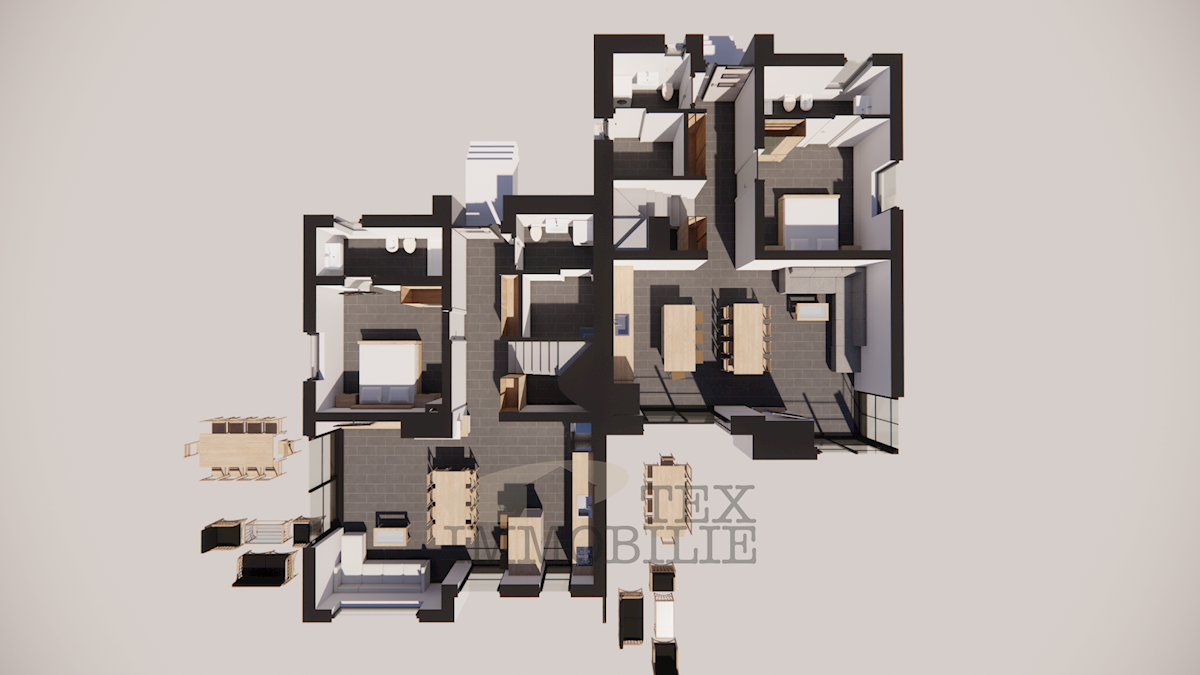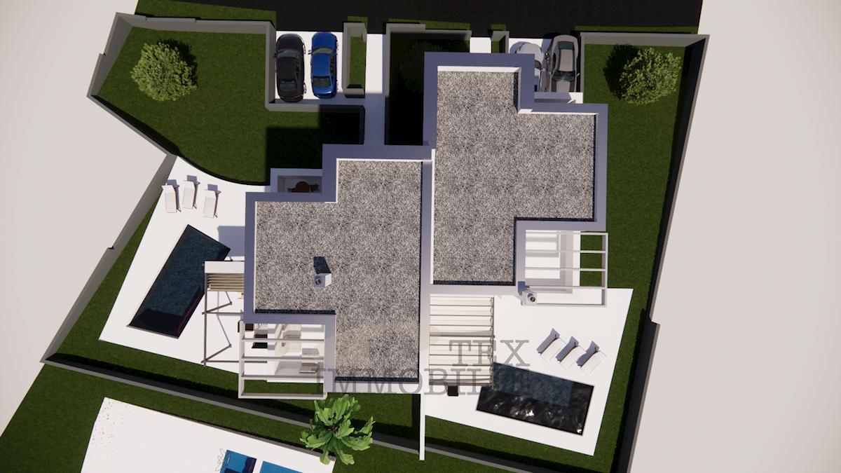 U okolici Poreča, prodaje se dvojna kuća u izgradnji. Vila će se sastojati od spavaće sobe sa kupaonom, dnevnog boravka, kuhinje i wc-a u prizemlju. Na prvom katu biti će tri spavaće sobe, dvije kupaone, terasa i balkon. U dvorištu kuće biti će bazen i dv