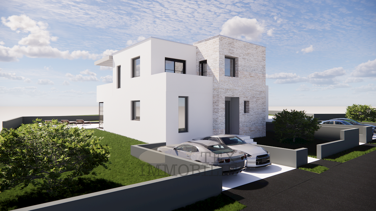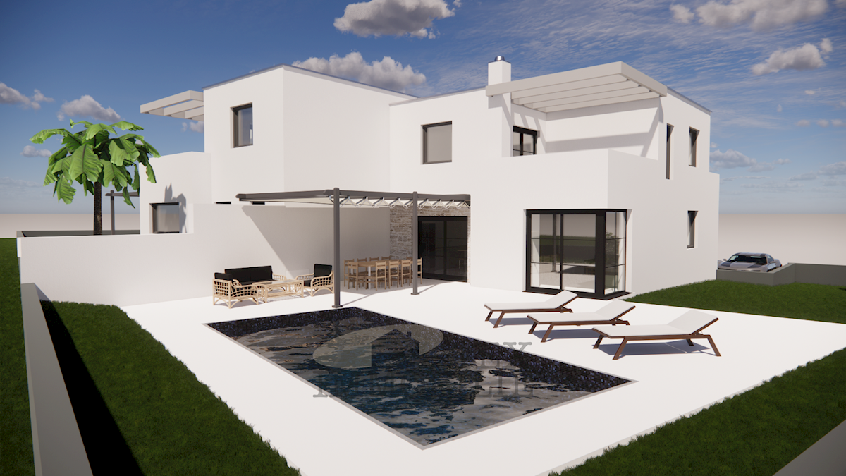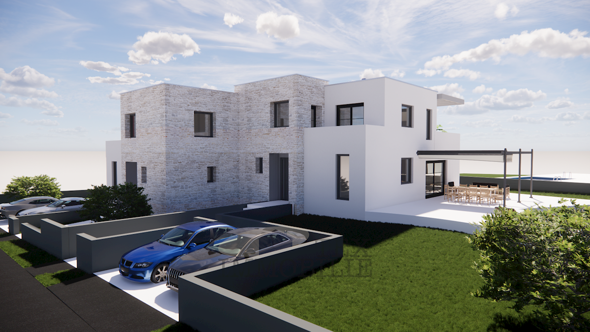 U okolici Poreča, prodaje se dvojna kuća u izgradnji. Vila će se sastojati od spavaće sobe sa kupaonom, dnevnog boravka, kuhinje i wc-a u prizemlju. Na prvom katu biti će tri spavaće sobe, dvije kupaone, terasa i balkon. U dvorištu kuće biti će bazen i dv
