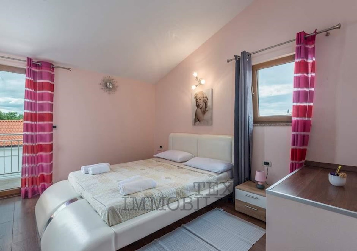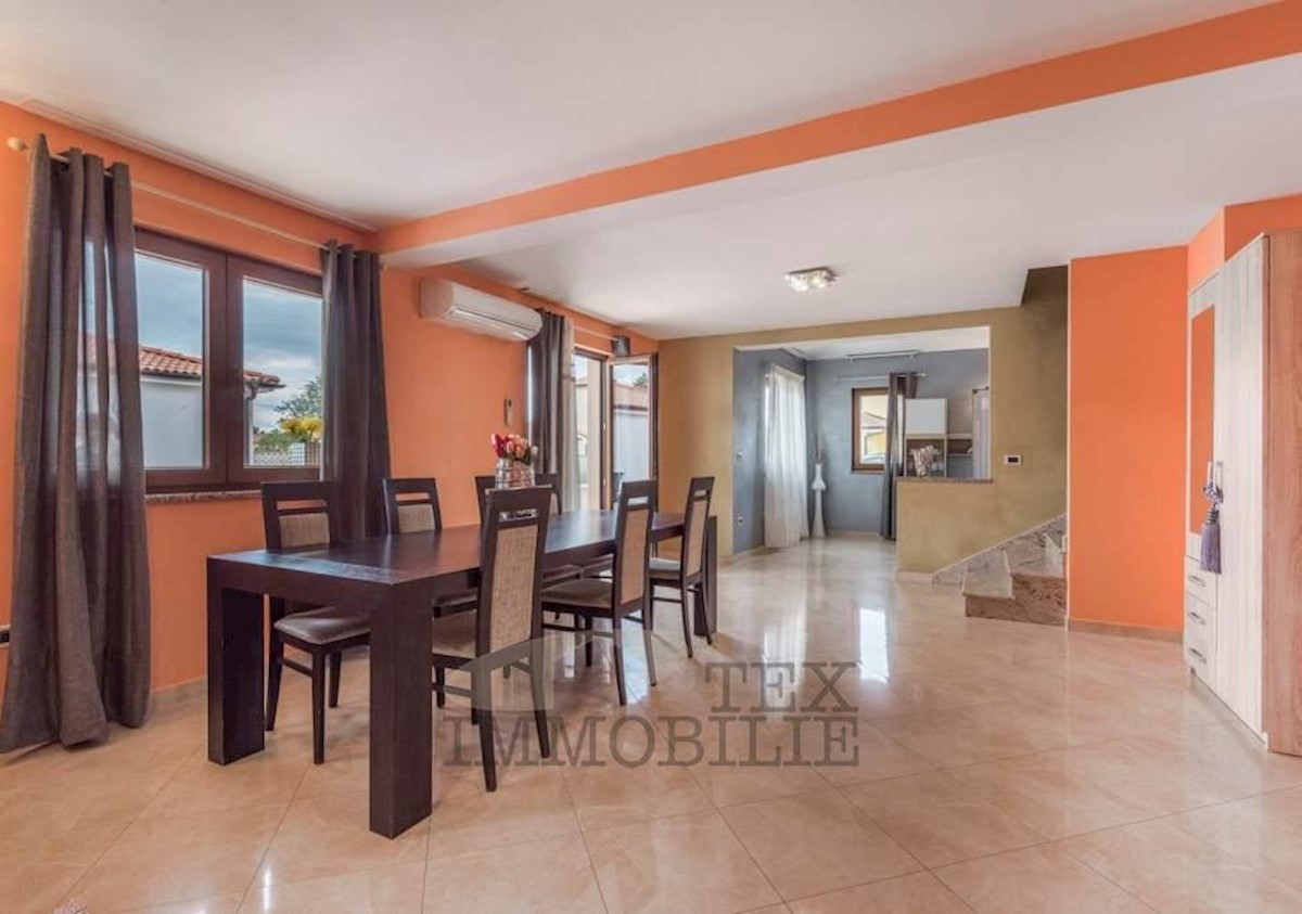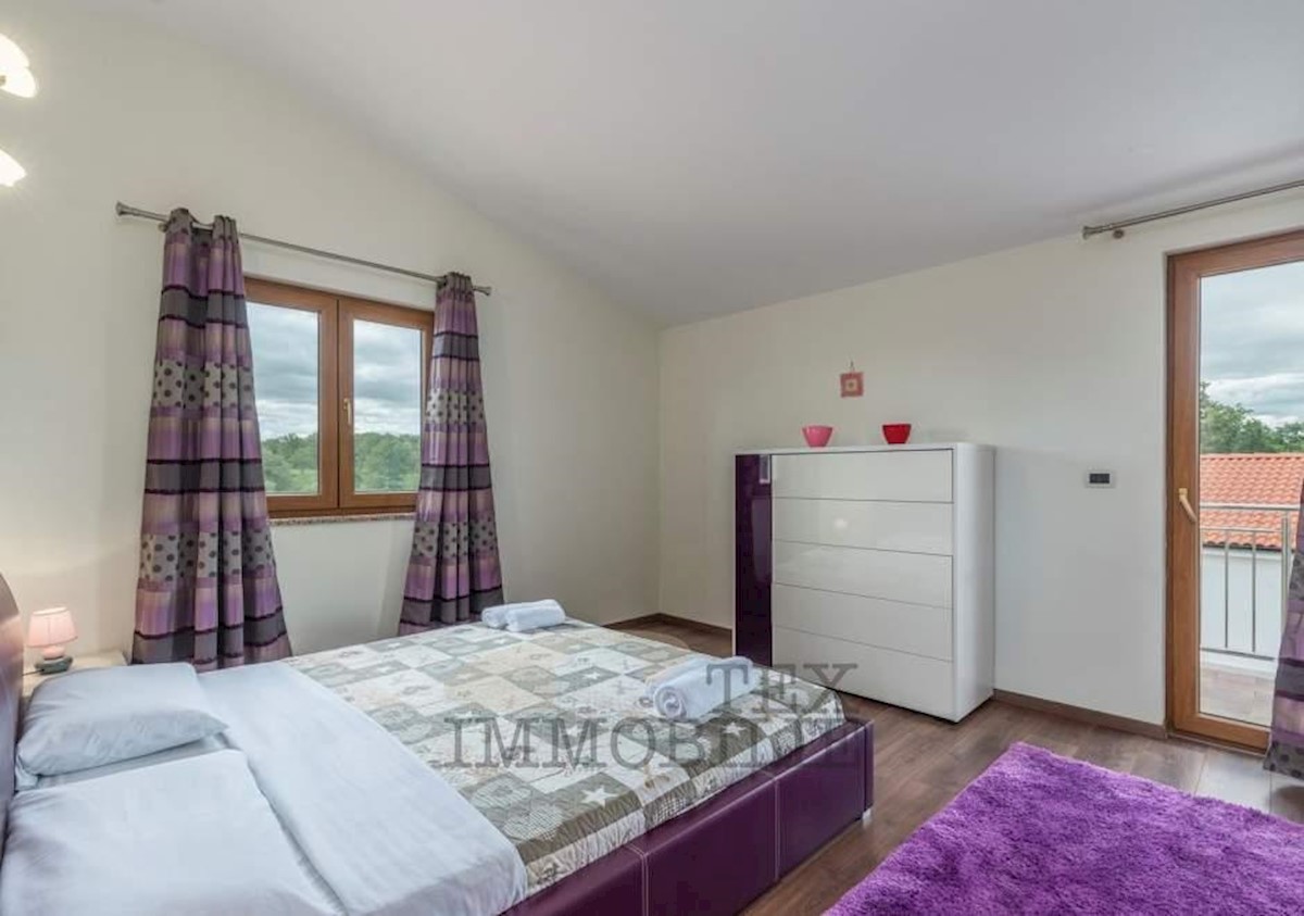 U okolici Poreča, prodaje se kuća s bazenom. U prizemlju kuće nalazi se veliki dnevni boravak, blagavaonica, kuhinja, spavaća soba i kupatilo. Na katu kuće nalazi se još jedna kupaona i tri spavaće sobe. Dvorište raspolaže s tri parkirna mjesta i velikim