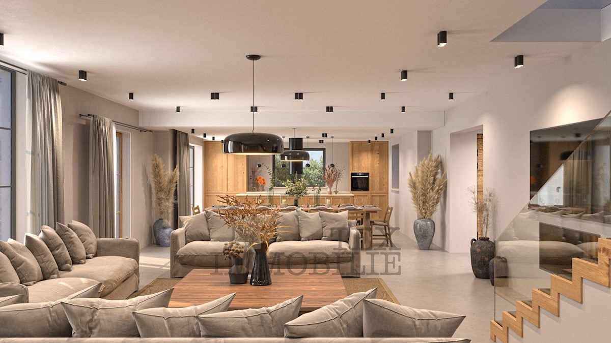 U okolici Poreča, a opet nadomak svih potrebnih sadržaja, prodaje se prekrasna vila s bazenom u izgradnji. Prizemlje kuće sastoji se od garderobe, tehničke sobe, gostinjskog wc-a, prekrasne i prostrane kuhinje, šarmantnog dnevnog boravka koji ima izlaz na