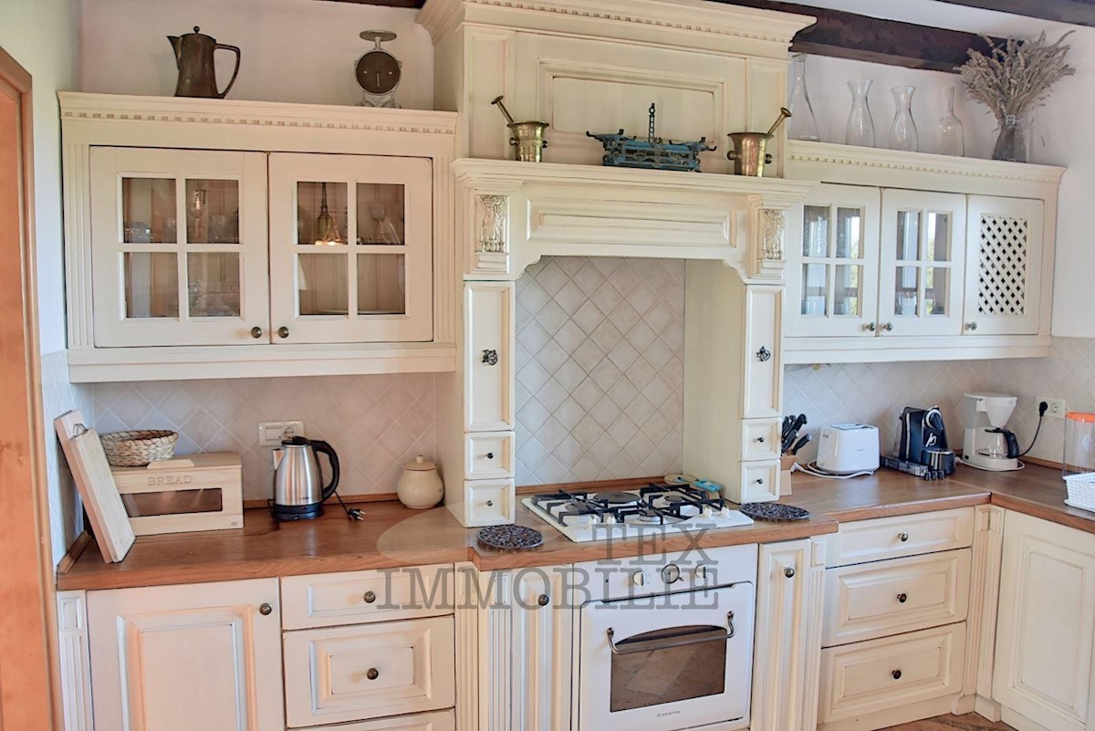 Idealan tradicionalni koncept tlocrta odlikuje se elegantnim interijerom, okupanim svijetlom. U prizemlju ćete pronaći dnevni boravak s veličanstvenim kaminom. Kuharski san, ova po mjeri izgrađena, dobro održavana kuhinja opremljena je drvenim radnim ploč