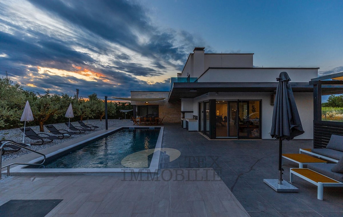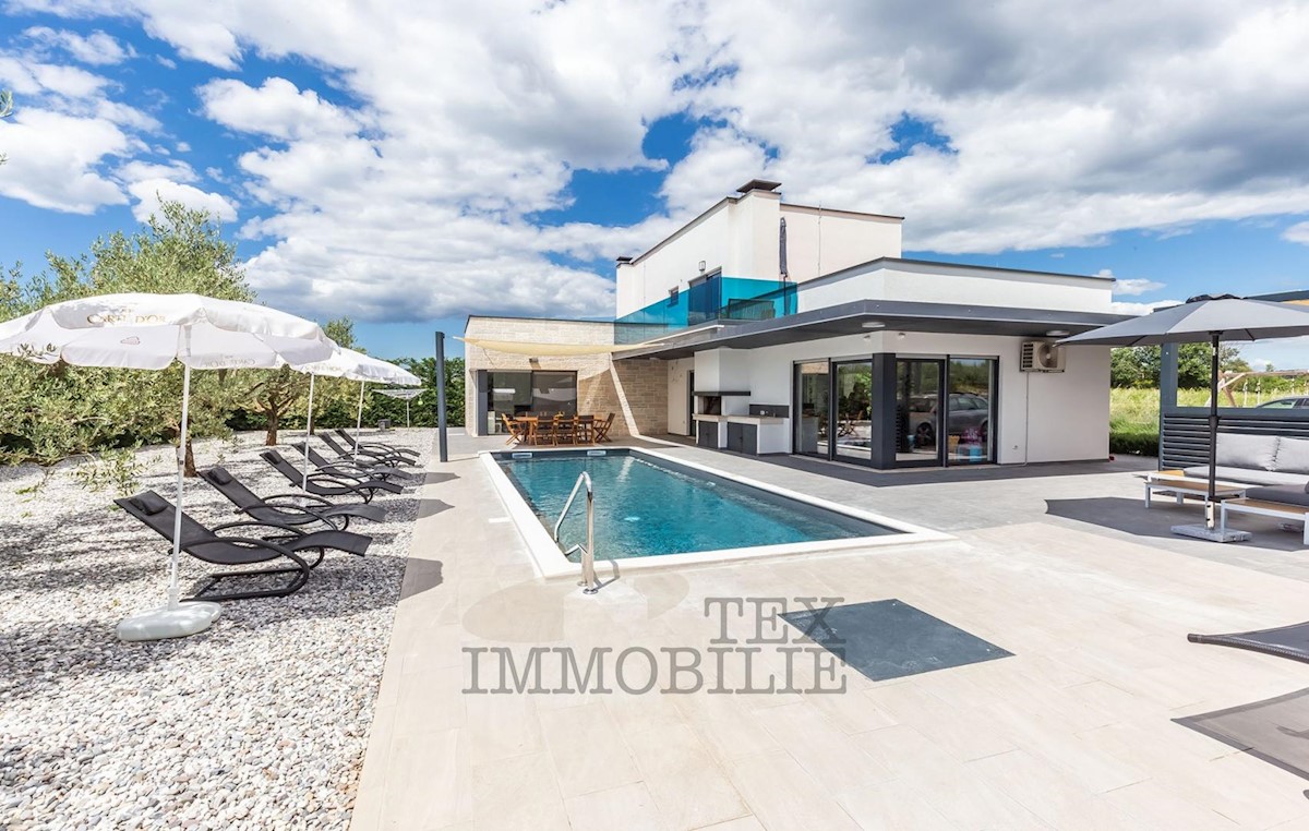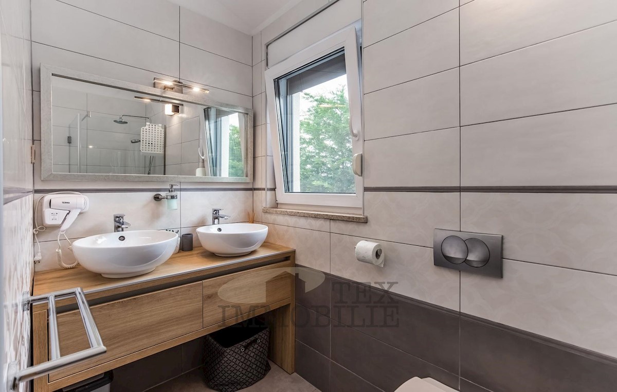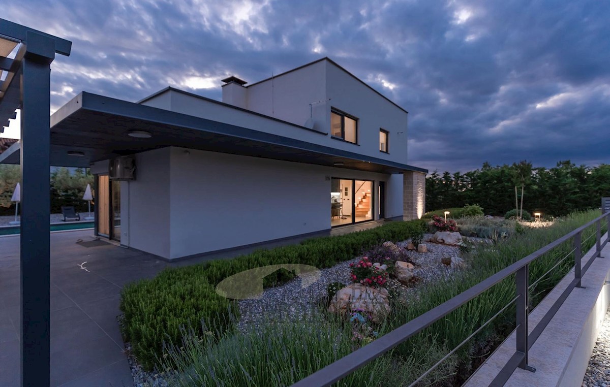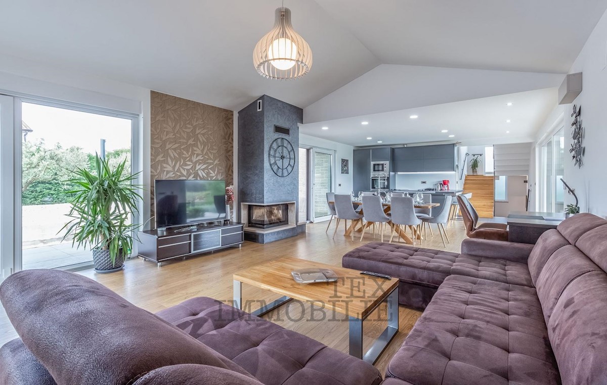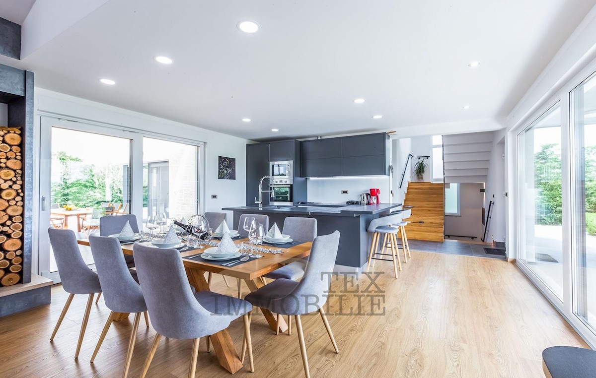 Budite spremni zaljubiti se kad ovo vidite. Ova lijepa i elegantna vila mjesto je na kojem ćete se osjećati svjetovima udaljeni od svakodnevne vreve. Ova dobro dizajnirana vila na tri etaže smještena je pokraj Poteča. Prizemlje obuhvaća dnevni boravak - m