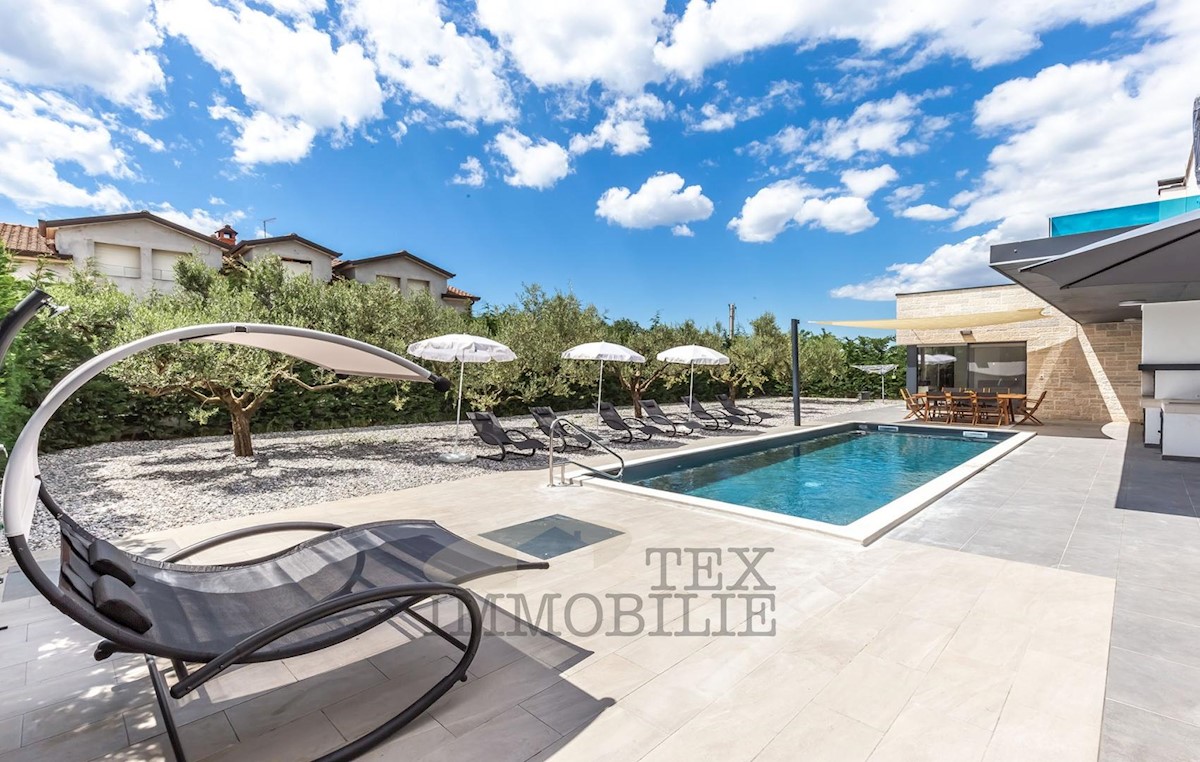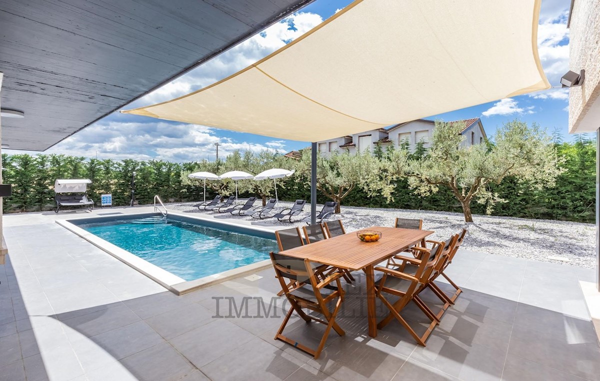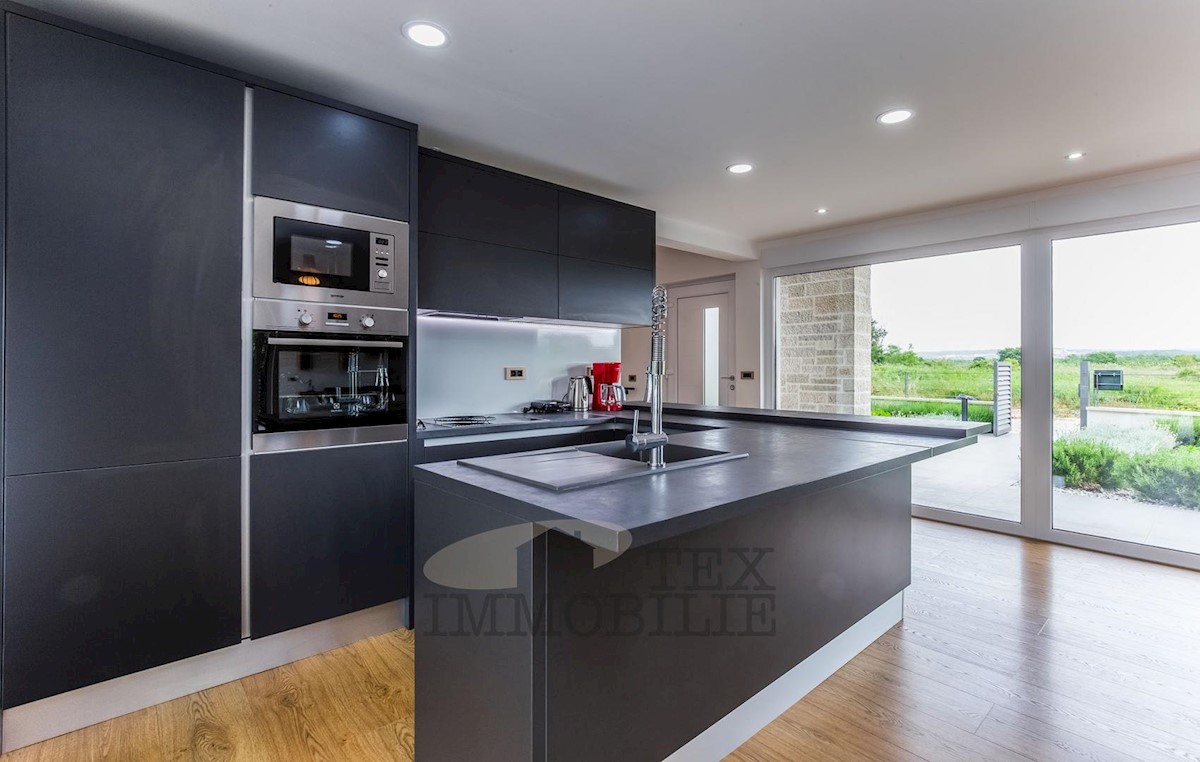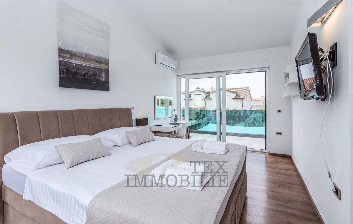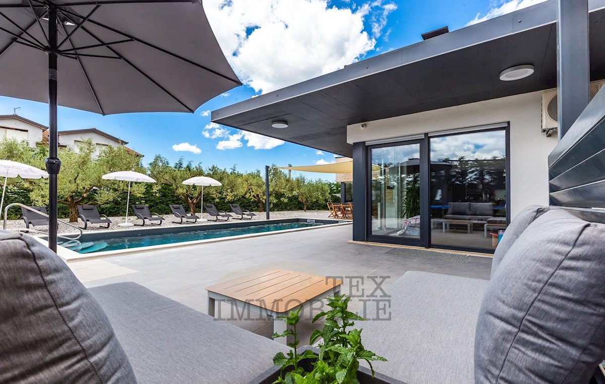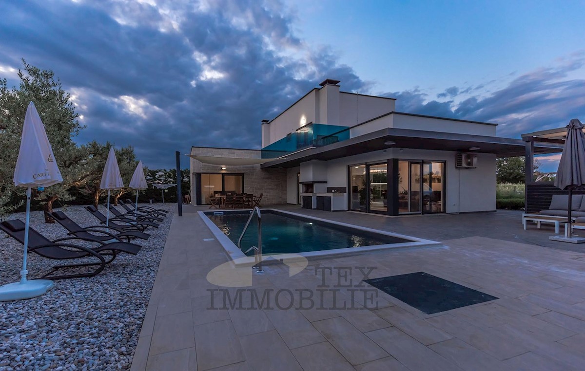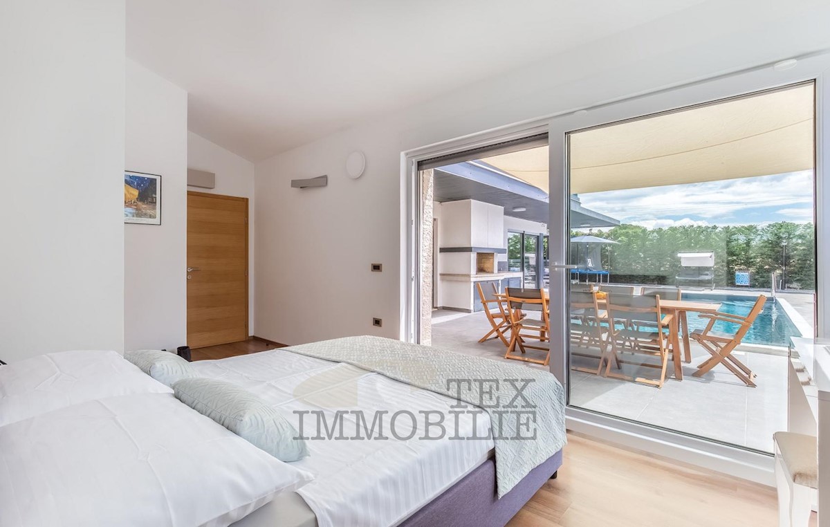 Budite spremni zaljubiti se kad ovo vidite. Ova lijepa i elegantna vila mjesto je na kojem ćete se osjećati svjetovima udaljeni od svakodnevne vreve. Ova dobro dizajnirana vila na tri etaže smještena je pokraj Poteča. Prizemlje obuhvaća dnevni boravak - m