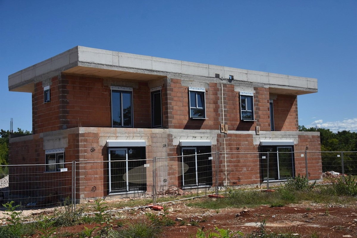 Poreč, dvojna kuća na prodaju, 129 m² i cca 277 m² okućnice. Ova lijepa i prostrana dvojna obiteljska kuća smještena je na mirnoj lokaciji na samo 2 kilometara od starogradske jezgre Poreča. Kuća se sastoji od ulaznnog hodnika, kupaonice, utility sobe, pr