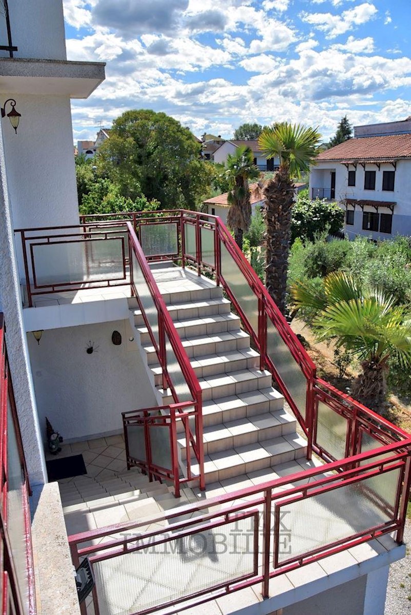 Prodaje se kuća u Poreču, udaljena 700 metara od mora. Kuća ukupne kvadrature 490 m2 prostire se na 1096 m2 okućnice. Kuća se sastoji od tri odvojena stana.Stan u prizemlju sadrži dvije spavaće sobe, dnevni boravak, kuhinju i blagovaonicu i kupaonicu. U