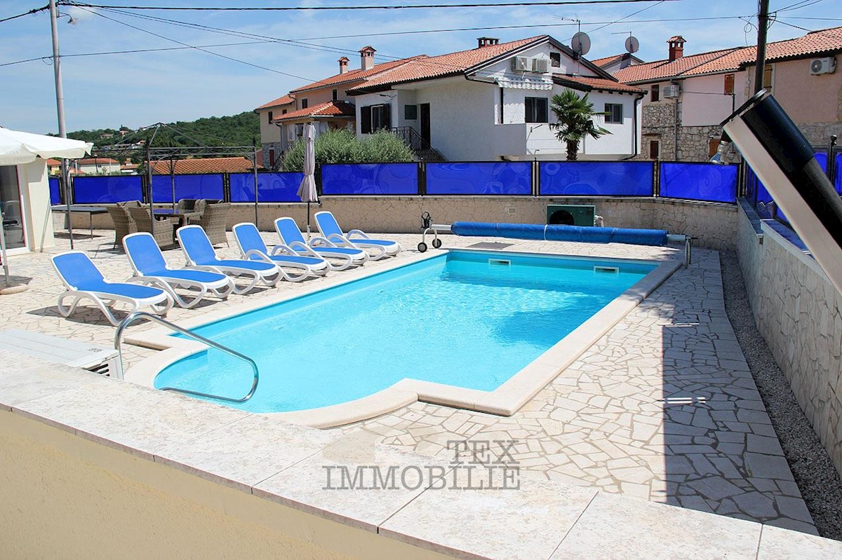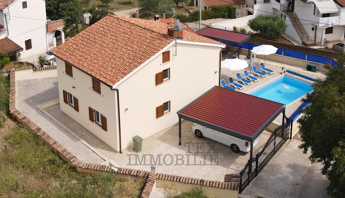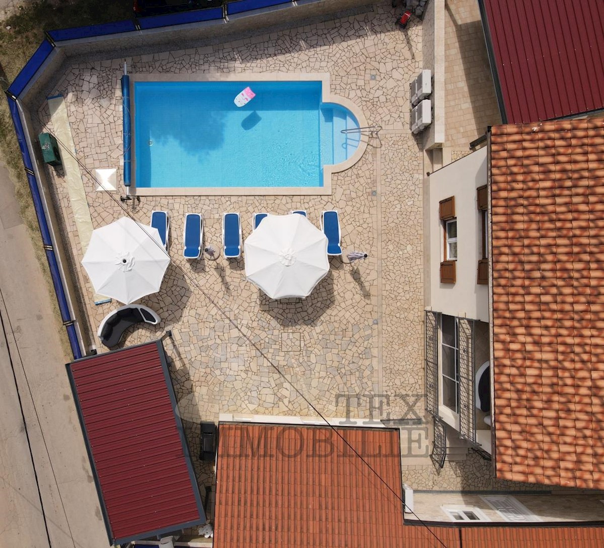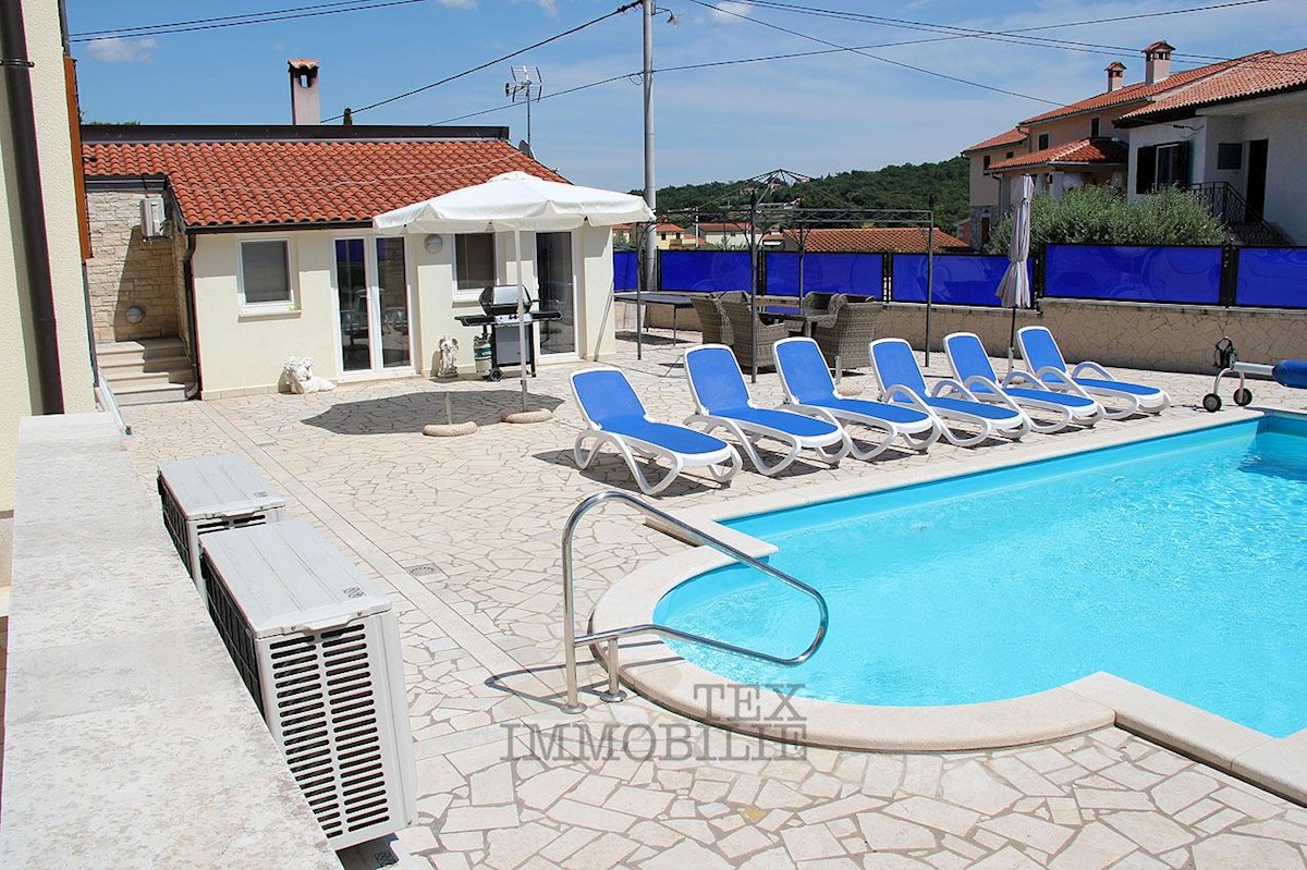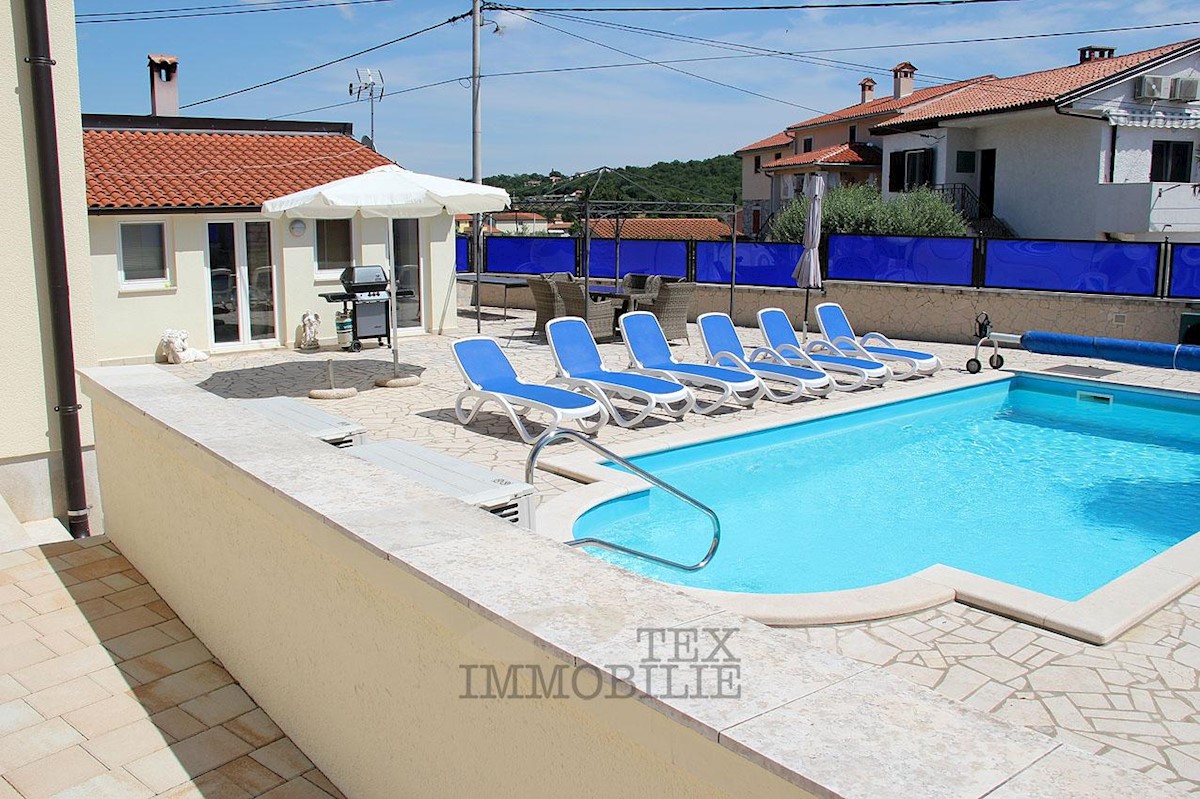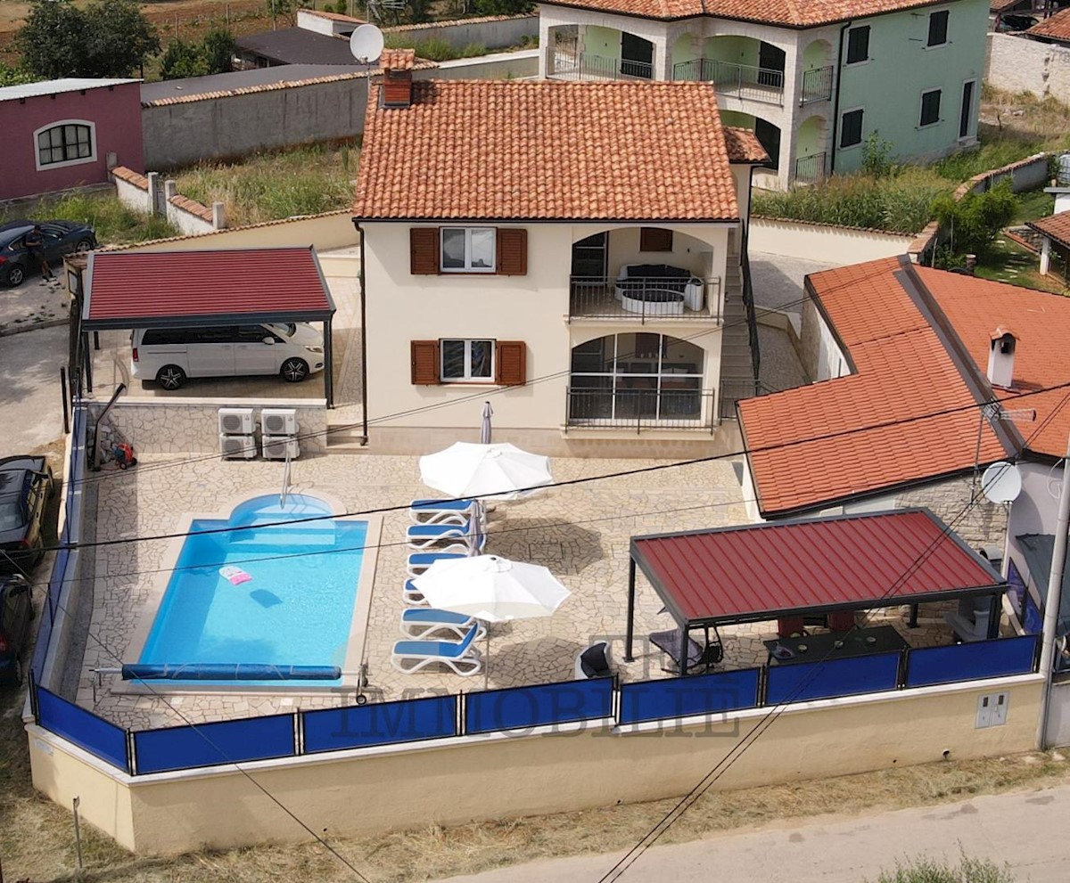 Kuća sa bazenom nalazi se u blizini turističkog središta Poreča, koji je udaljen svega 7 kilometara. Kuća ukupne kvadrature 193 m2, prostire se na ograđenom zemljištu od 570 m2, na kojem su smještena tri stana površine 73 i 75 m2 jedan iznad drugoga, te o