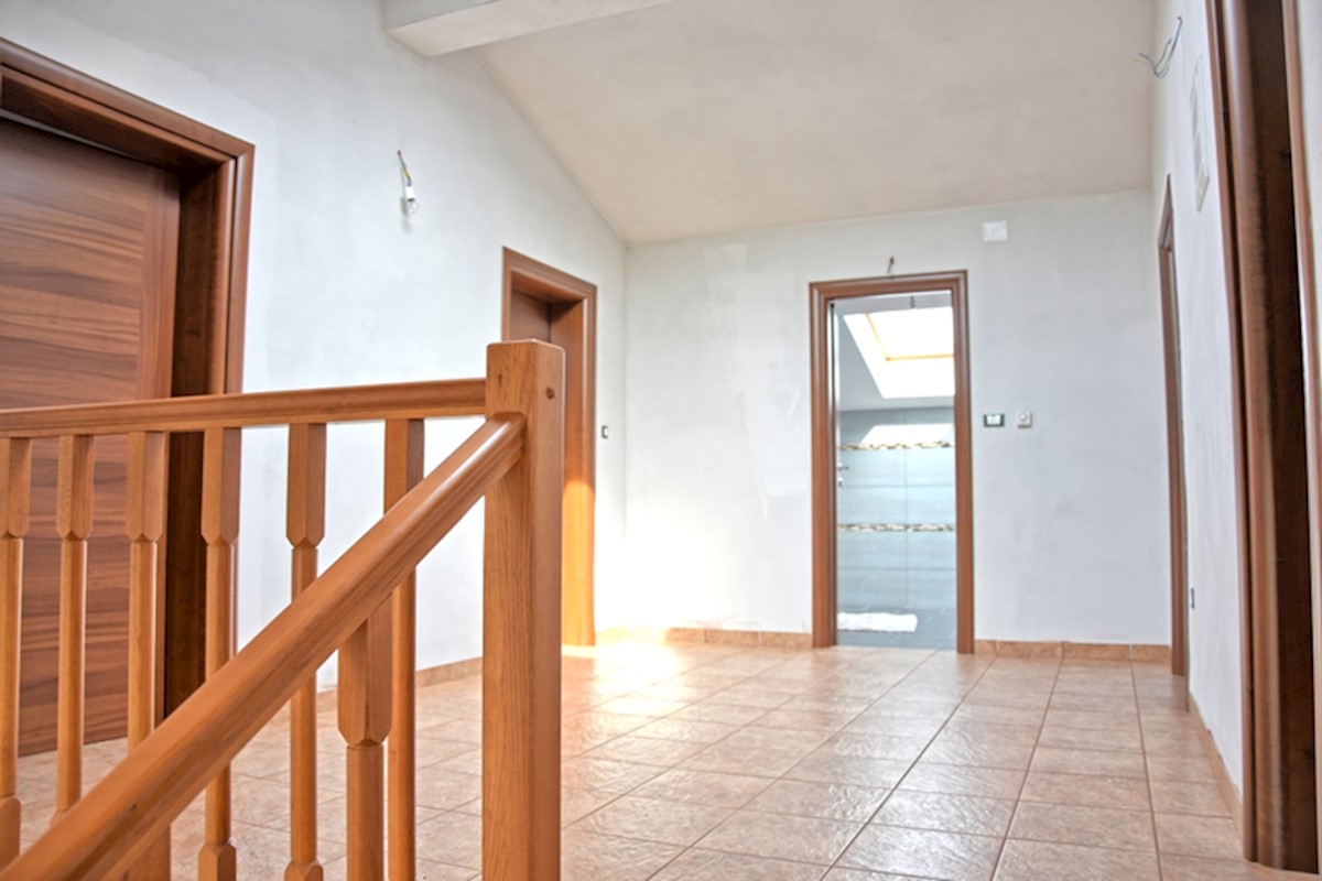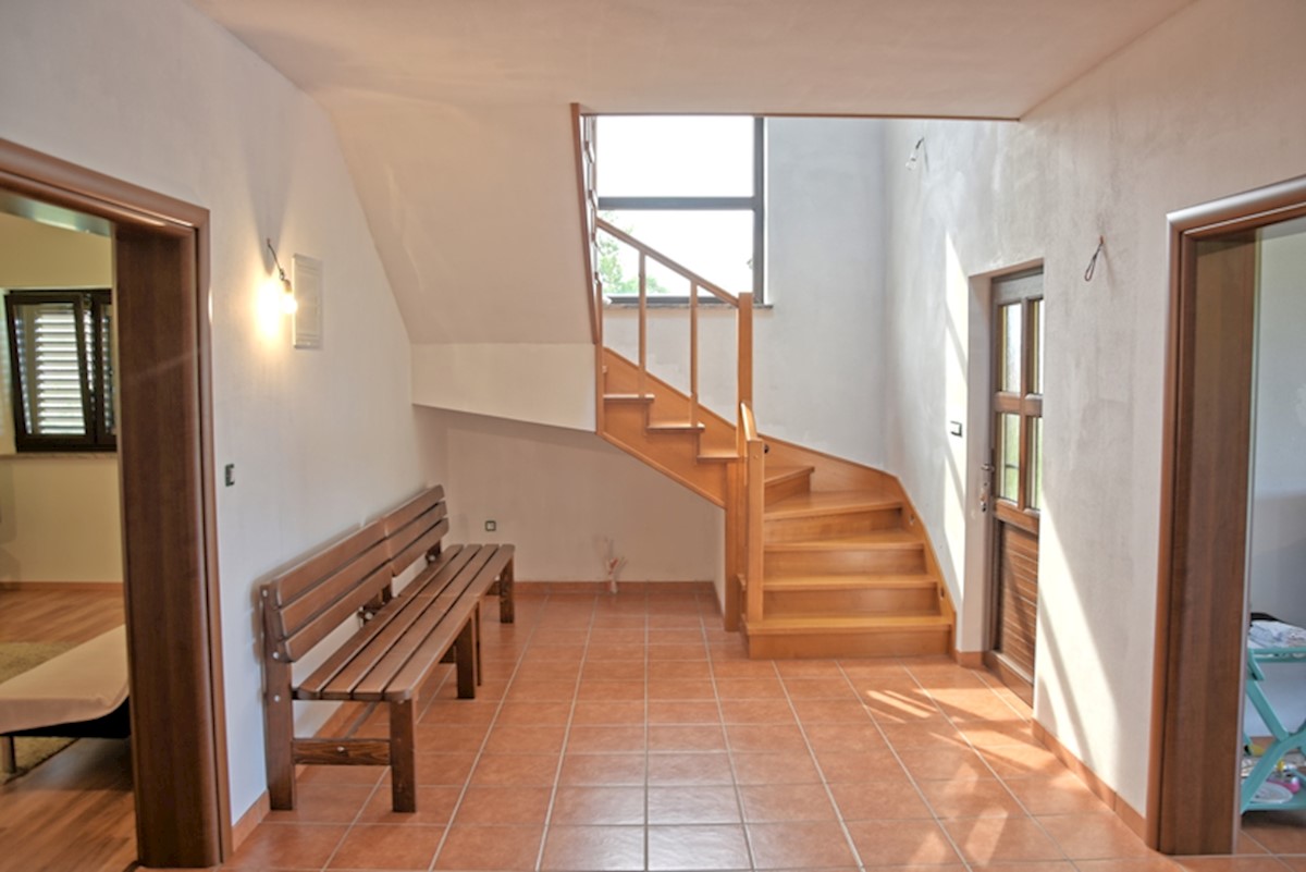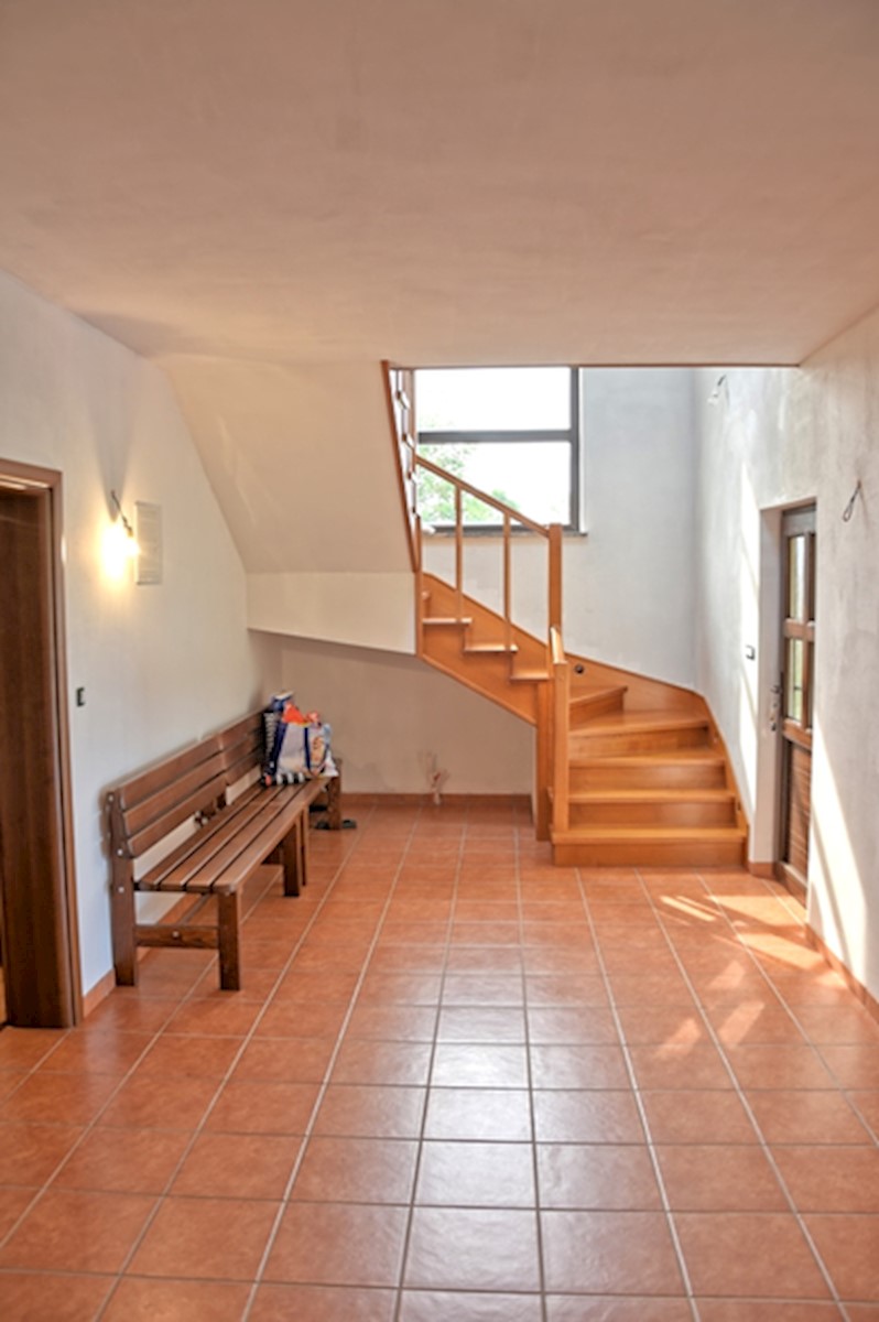Prodaje se samostojeća kuća u Vižinadi sa lijepim pogledom na prirodu, ukupne stambene površine 328 m2, na zemljištu od 1184 m2. Suteren se sastoji od garaže, kotlovnice, pomoćne prostorije i velike taverne sa kaminom (nedovršeno). Prizemlje se sastoji od
