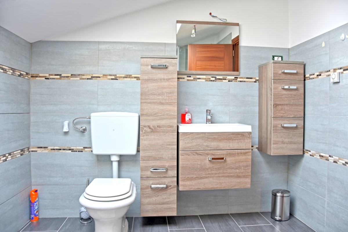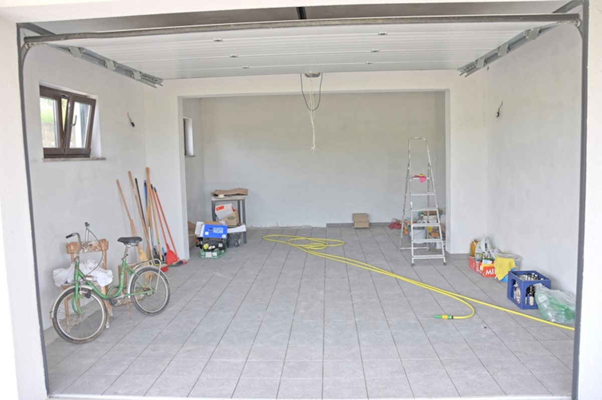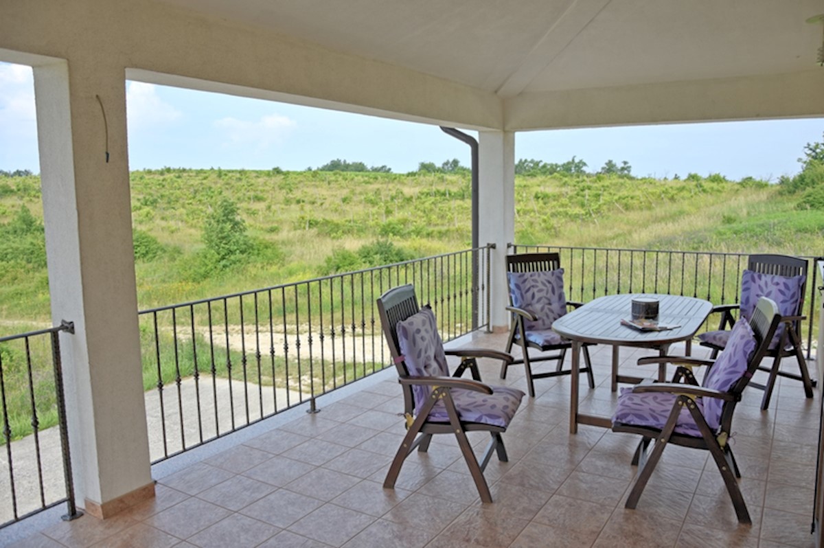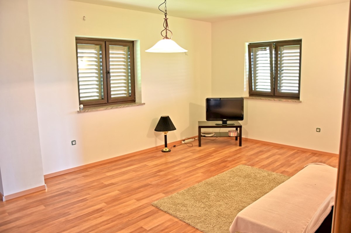 Prodaje se samostojeća kuća u Vižinadi sa lijepim pogledom na prirodu, ukupne stambene površine 328 m2, na zemljištu od 1184 m2. Suteren se sastoji od garaže, kotlovnice, pomoćne prostorije i velike taverne sa kaminom (nedovršeno). Prizemlje se sastoji od