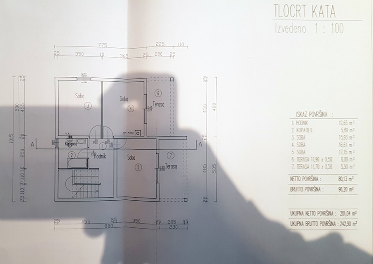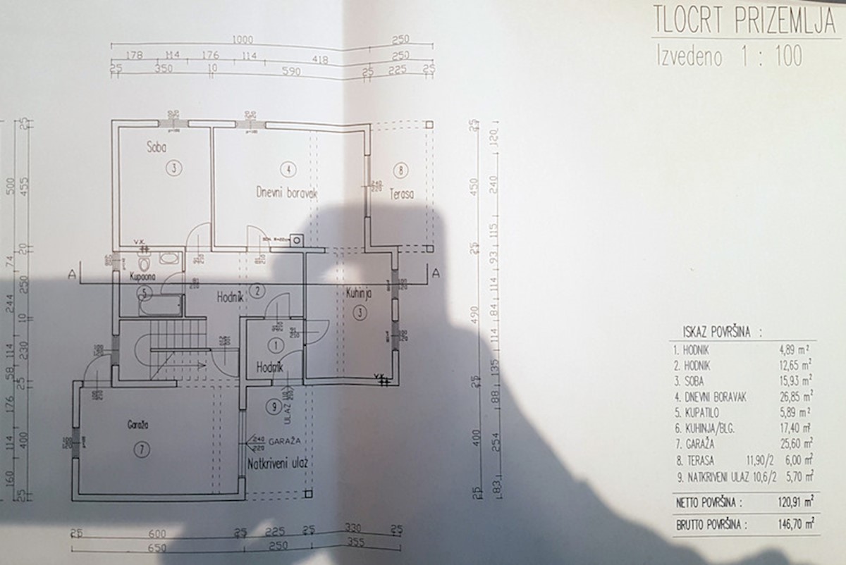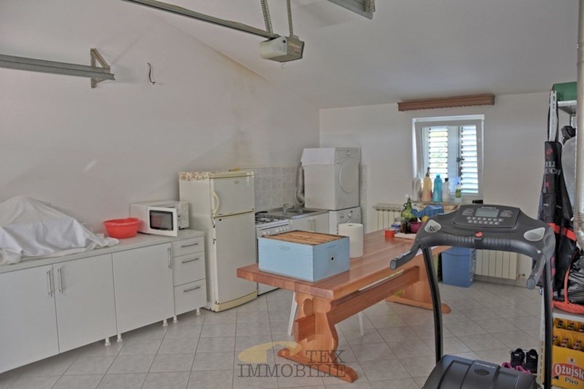 Prodaje se samostojeća obiteljska kuća udaljena 5 kilometara od centra Poreča i 3.5 kilometara od mora. Kuća je dvoetažna, ima unutarnje stepenište. Prizemlje kuće sastoji se od dnevnog boravka, blagovaonice i kuhinje, jedne spavaće sobe, hodnika, kupaoni