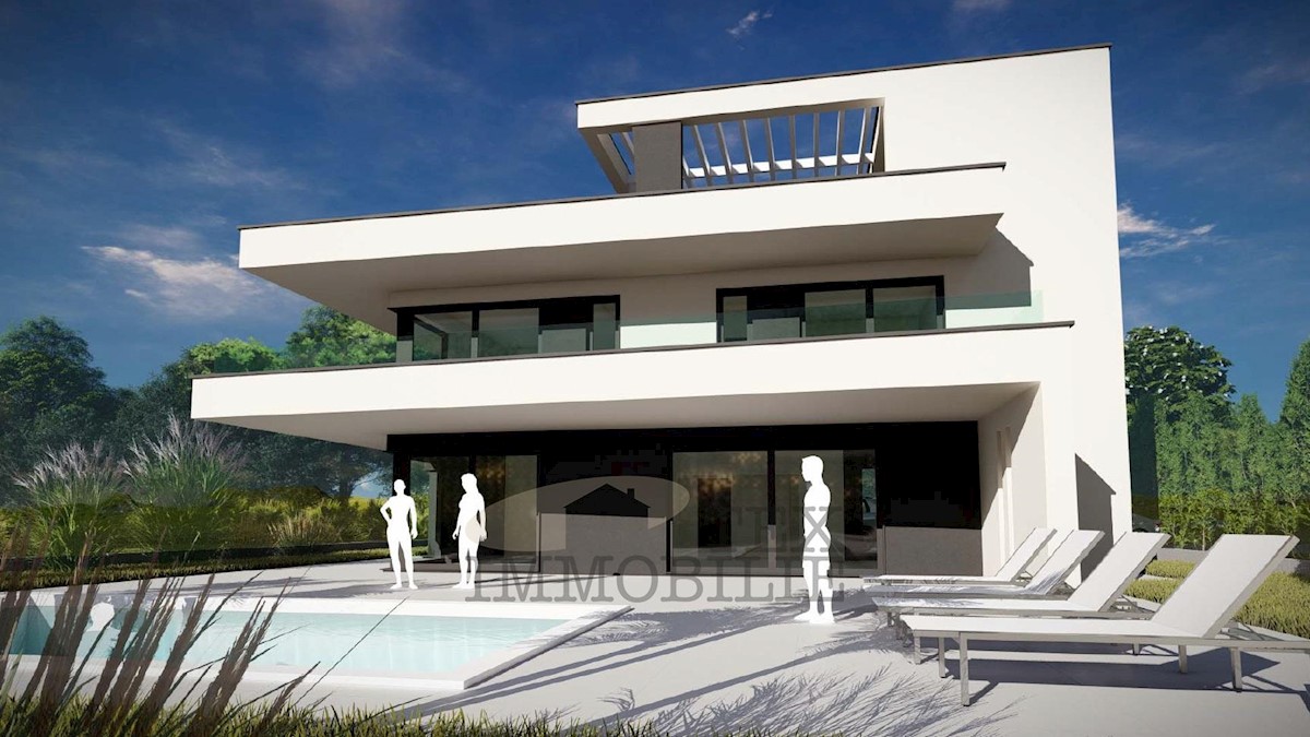 Prodaje se prekrasna moderna vila u okolici Poreča i 2.7 km od mora. U prizemlju sadrži prostrani dnevni boravak,kuhinju i blagovaonicu od čak 55 m2, wellness kutak za uživanje, tehničku sobu, praonicu i wc za goste. Na prvome katu nalaze se tri en-suite