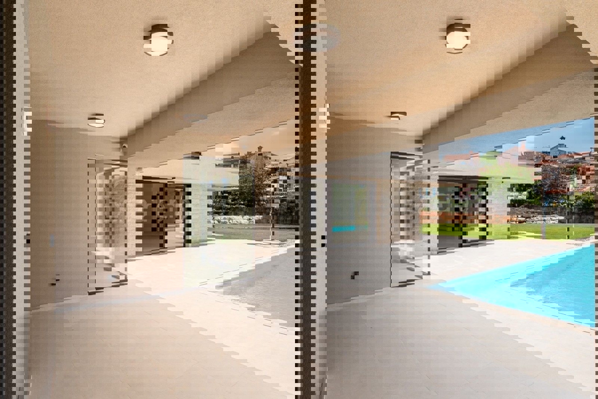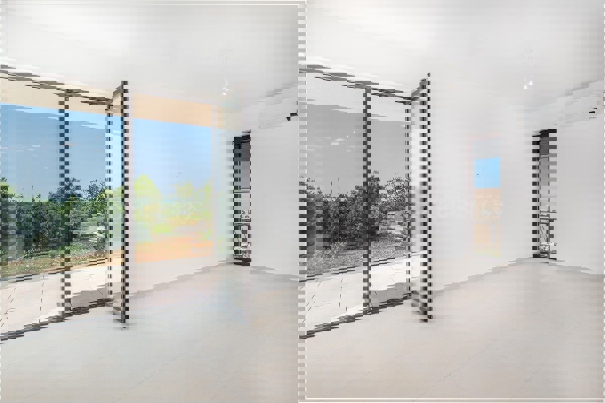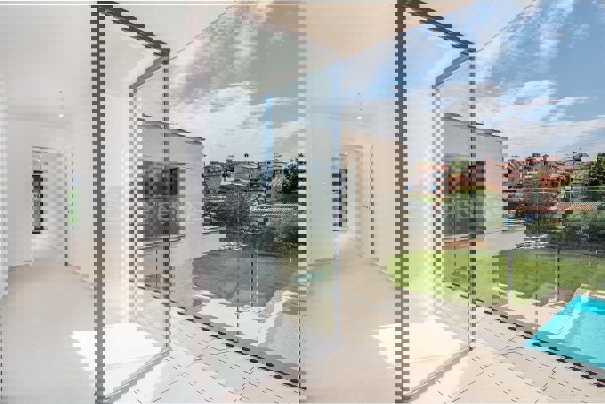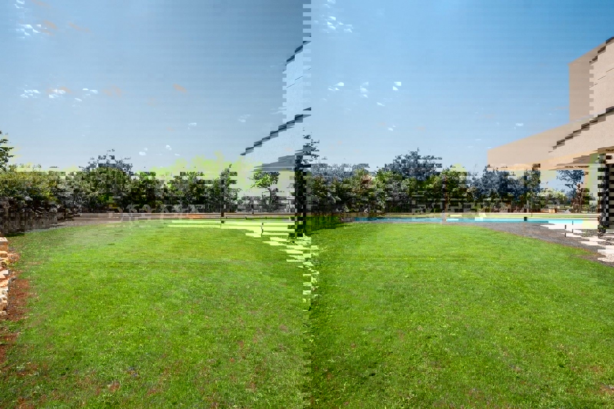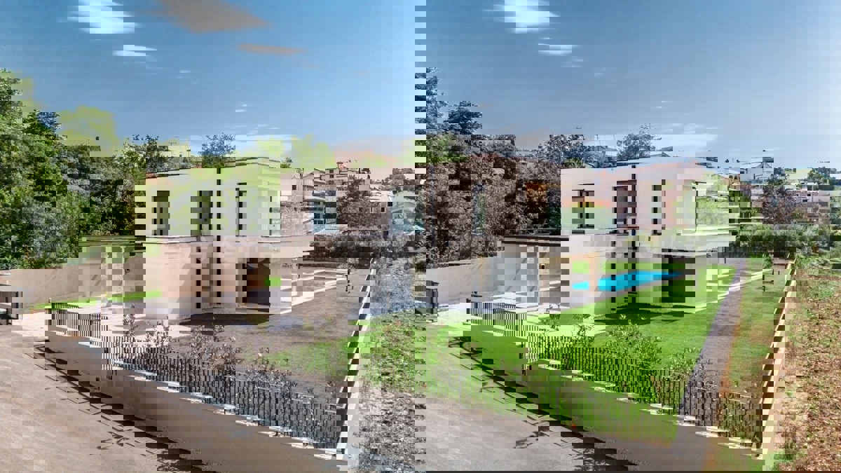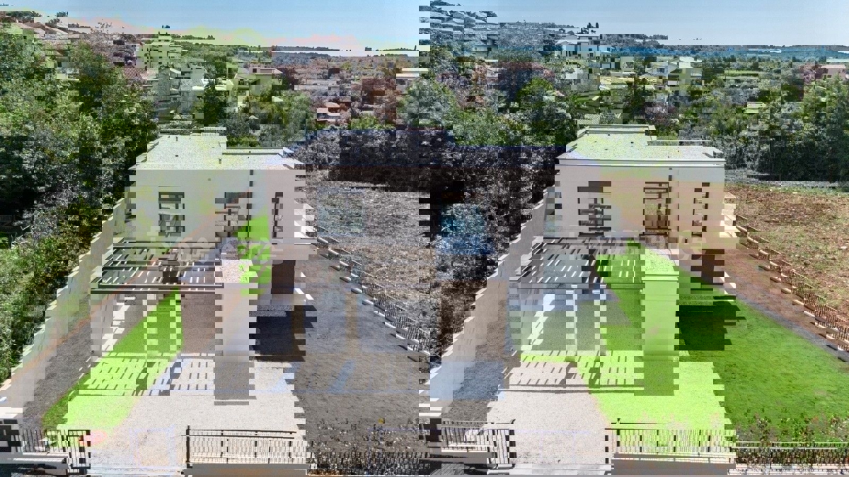 U okolici Poreča, na rubu naselja, u sklopu 14 luksuznih vila na prodaji je vila atraktivnog modernog dizajna. Eksterijer vile kojeg krasi fasada obložena dijelom u kamenu, izbor blagih tonova, atraktivan, a istovremeno minimalistički dizajn odlično se sj