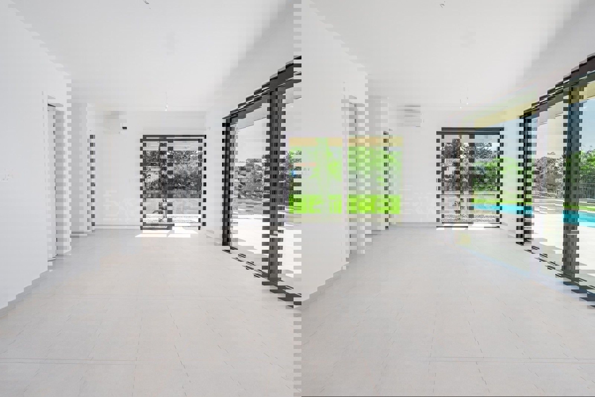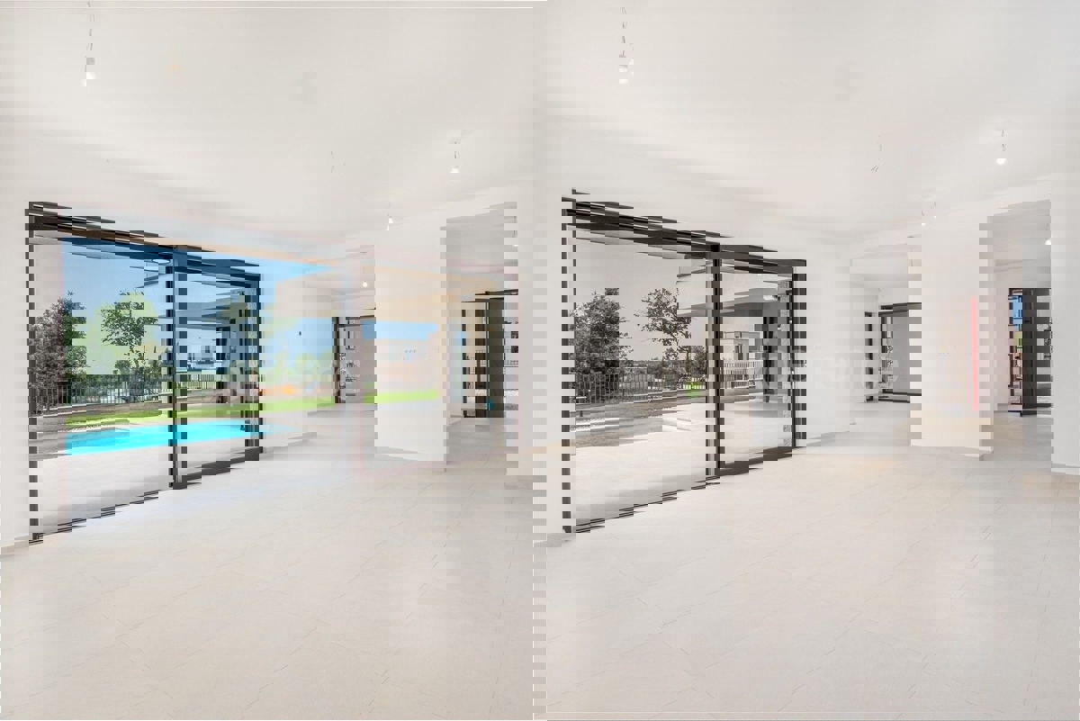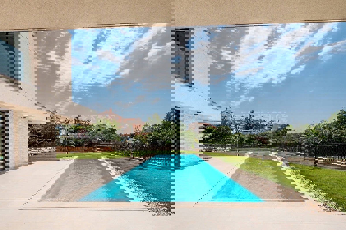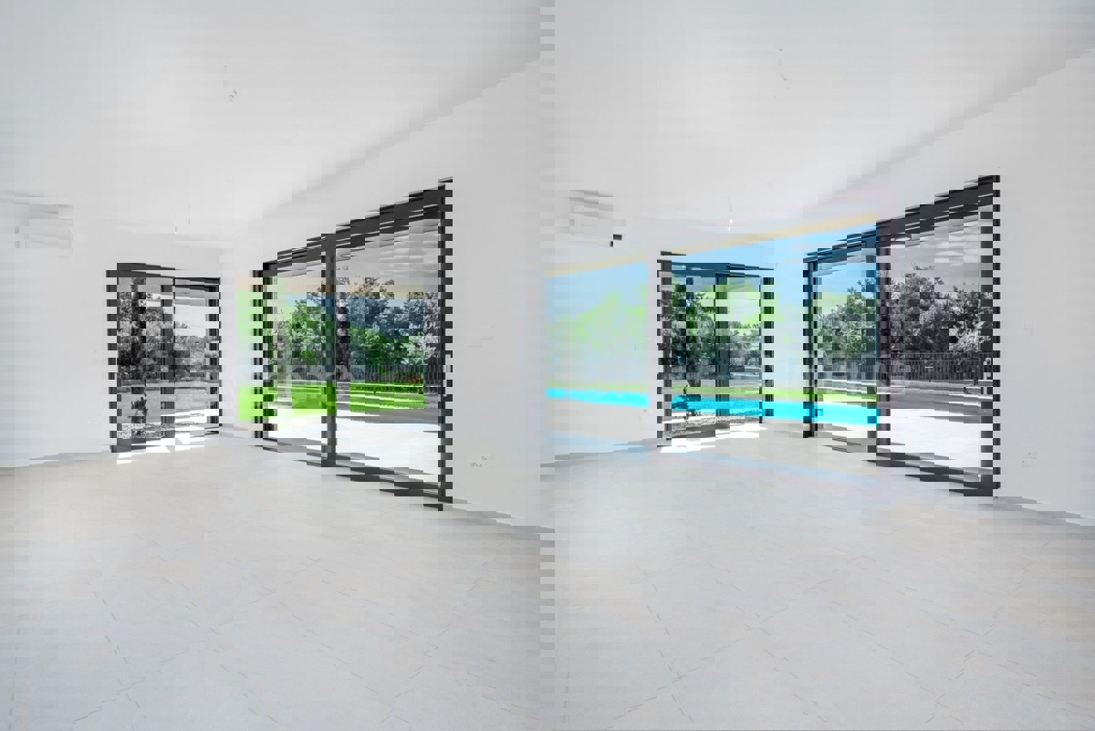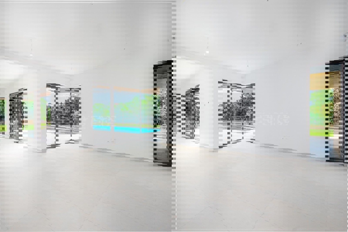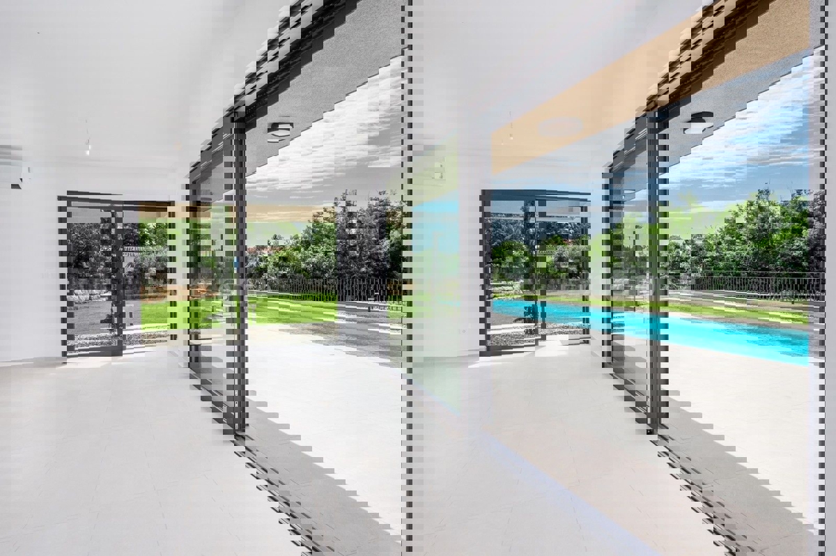 U okolici Poreča, na rubu naselja, u sklopu 14 luksuznih vila na prodaji je vila atraktivnog modernog dizajna. Eksterijer vile kojeg krasi fasada obložena dijelom u kamenu, izbor blagih tonova, atraktivan, a istovremeno minimalistički dizajn odlično se sj
