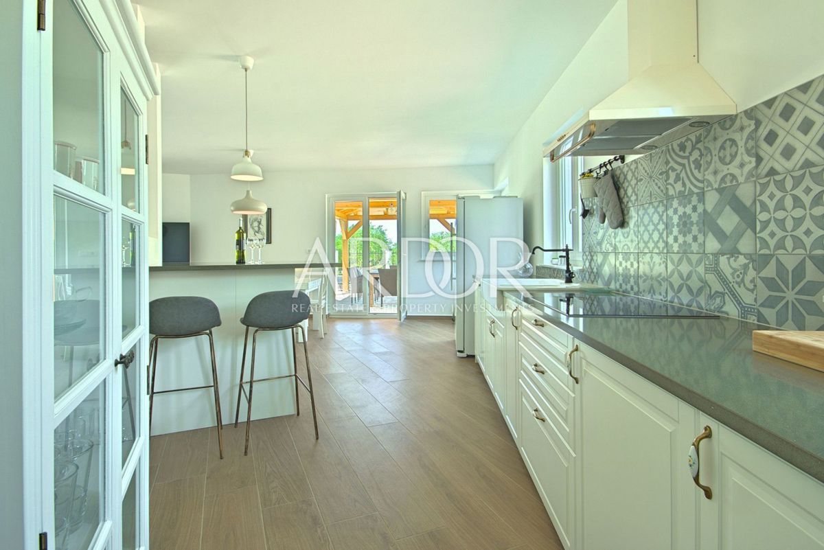 Prodaje se novoizgrađena kamena kuća koja se nalazi na lijepoj i mirnoj lokaciji udaljena 4km od centra grada Poreča i predivnih plaža. Vila se sastoji od prizemlja i prvog kata. U prizemlju kuće nalazi se ulazni hodnik, prostrana spavaća soba sa kupaoni