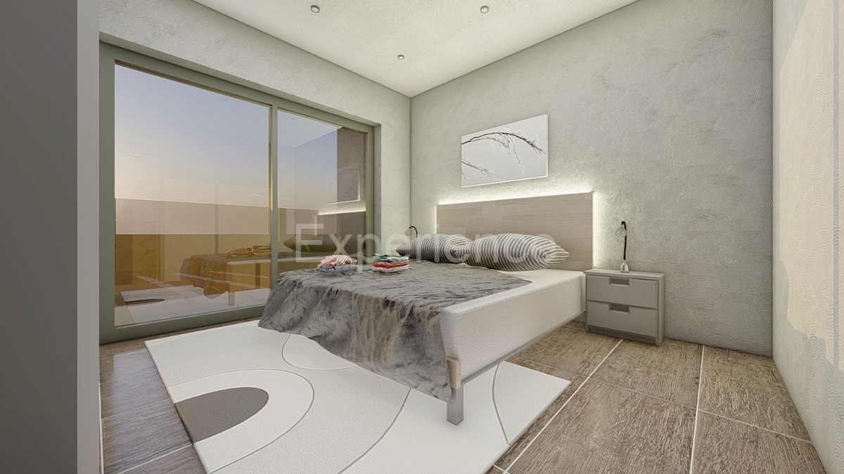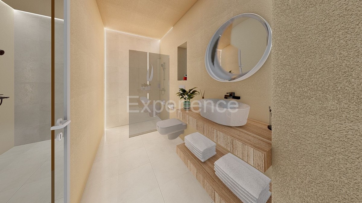 U okolici Poreča, cca. 11 km od mora na prodaji je kuća u izgradnji, ukupne površine 161 m². Kuća je druga u nizu od ukupno 4 kuće. Sastoji se od tri etaže: prizemlje, kat i potkrovlje. U prizemlju nalazi se: predsoblje, otvoreni i svijetao prostor u koje