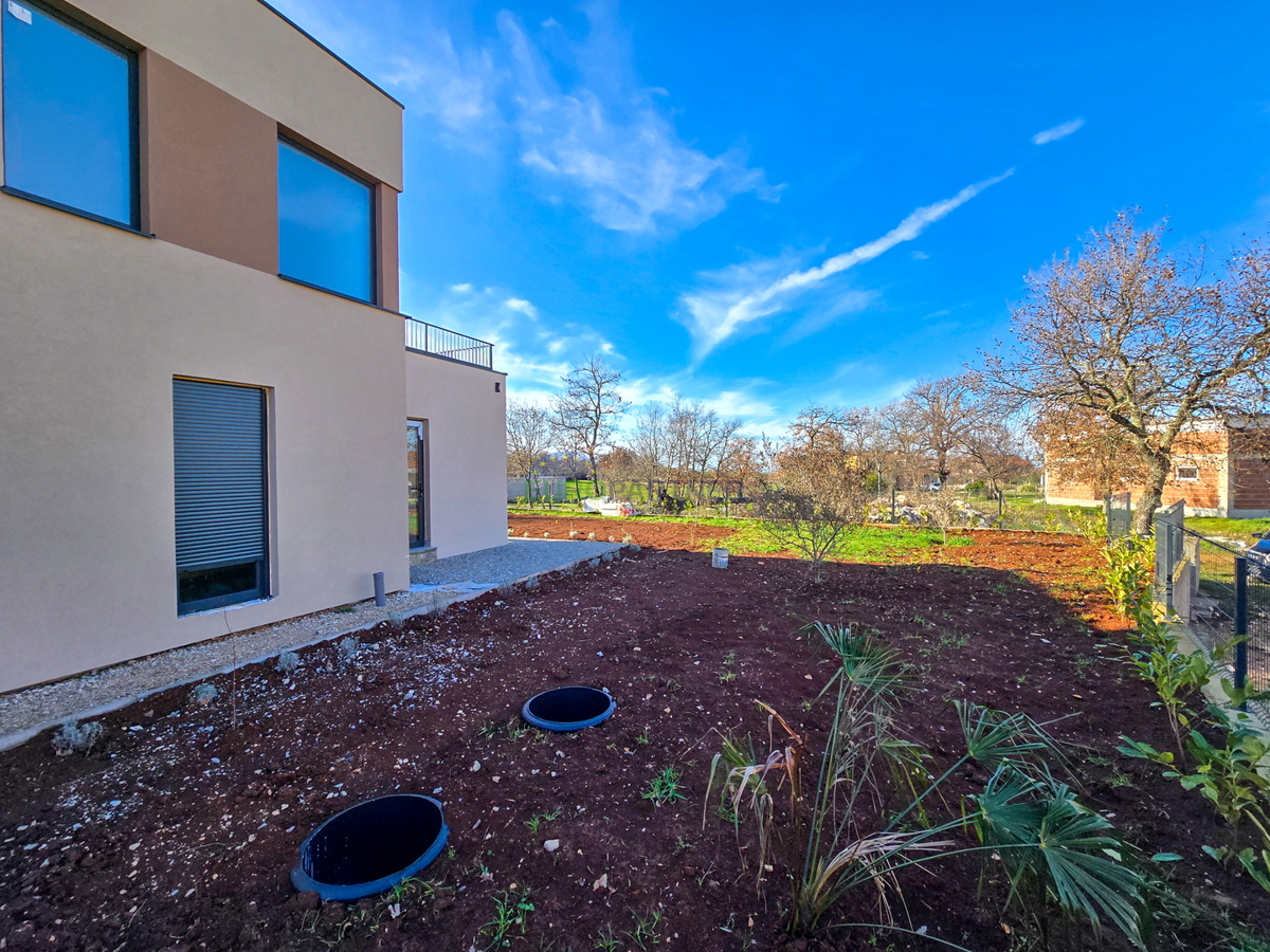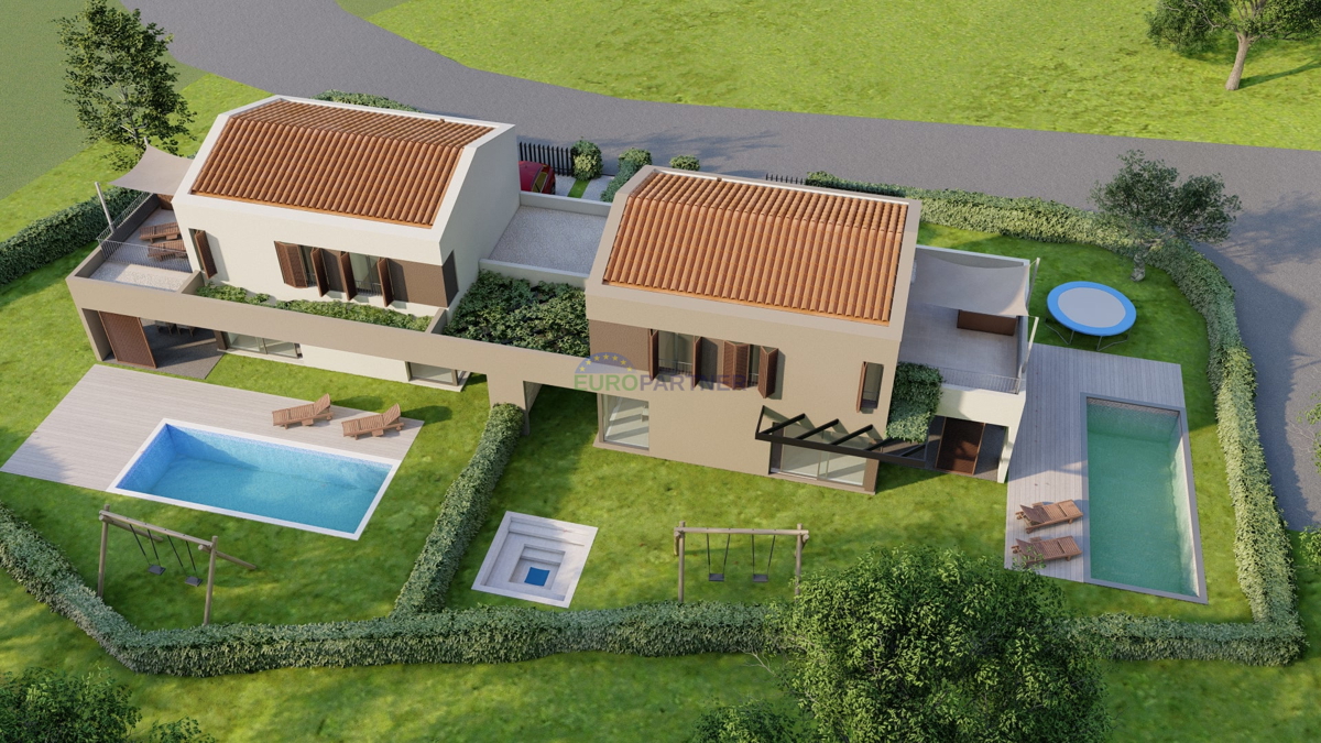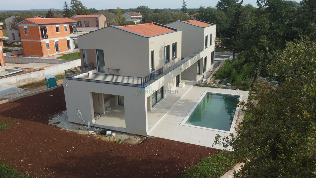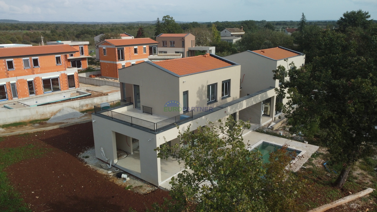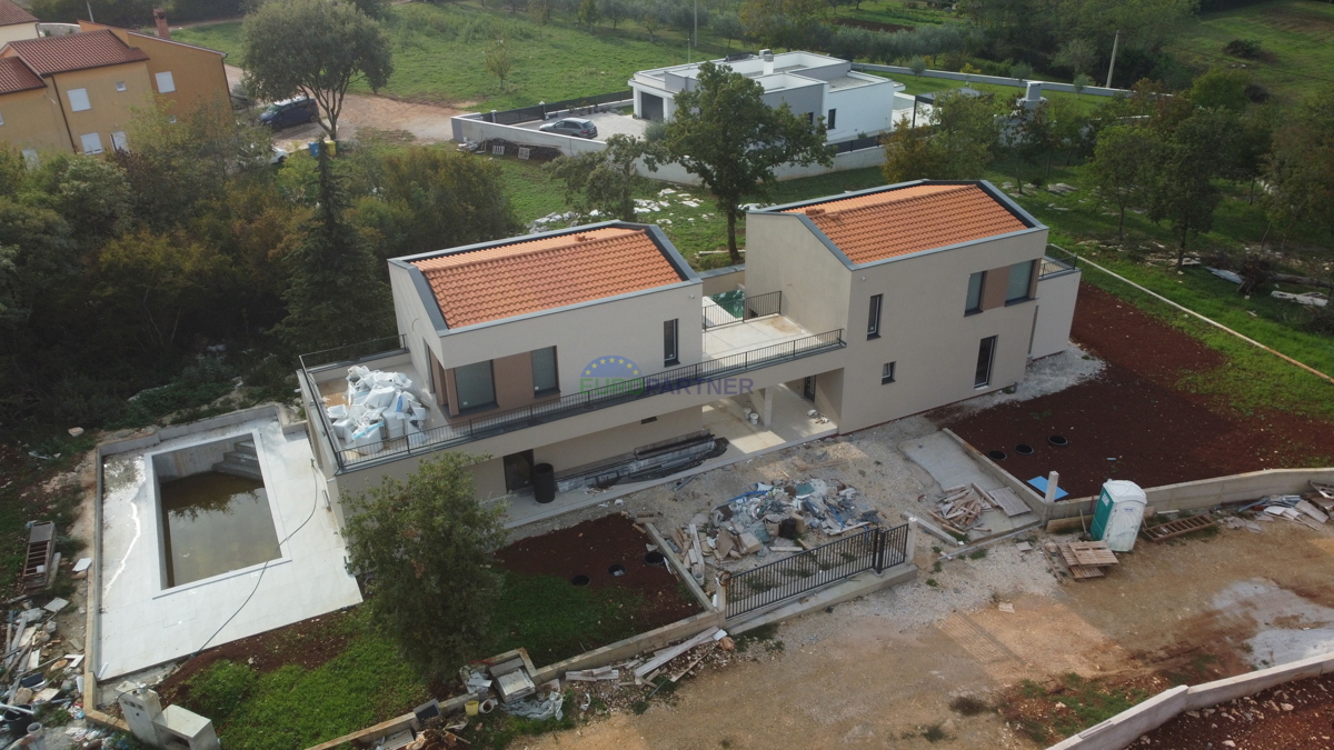 U vrlo mirnom ambijentu, na traženoj lokaciji, samo 5km udaljenoj od grada Poreča smješteno je ovih šest kuća iz naše ponude. Ova kuća koju Vam predstavljamo, kao i preostalih 4 kuća istog kompleksa, je izgrađena suvremenim stilom gradnje i raspolaže s 13