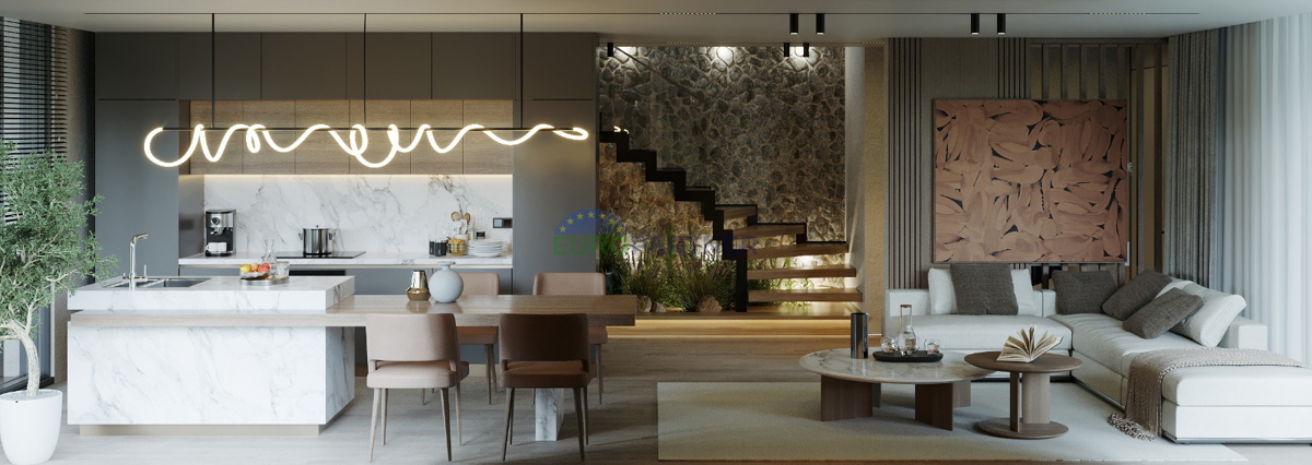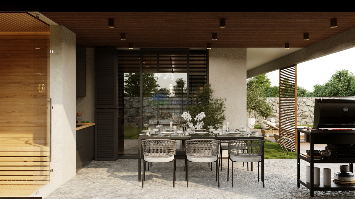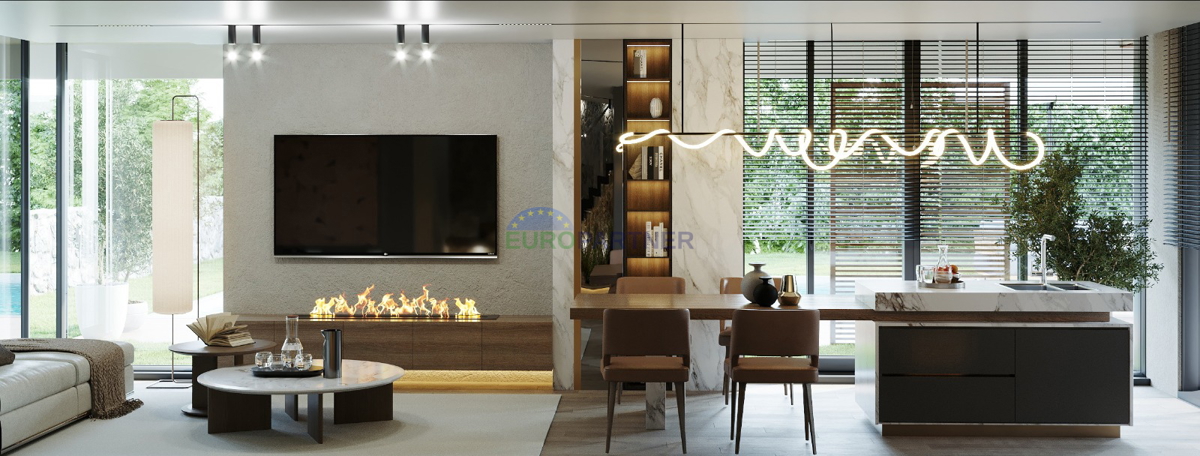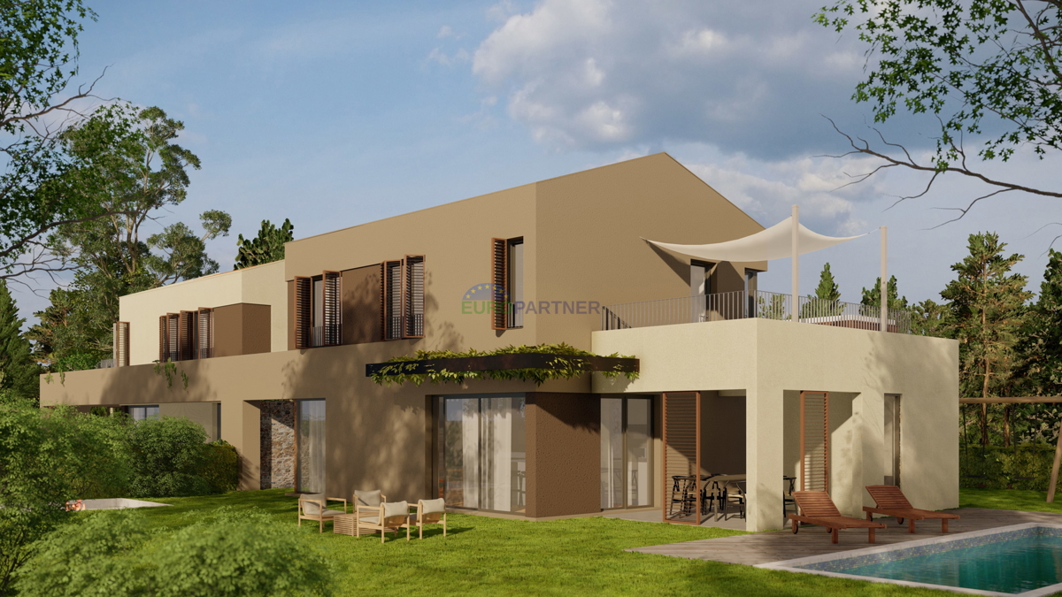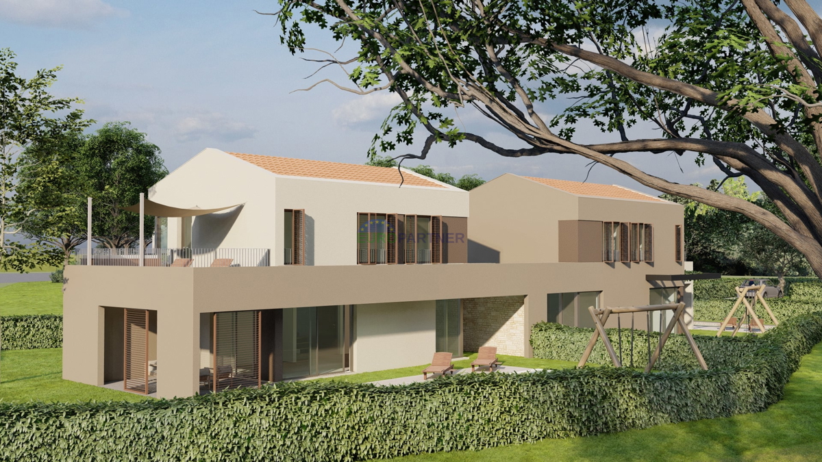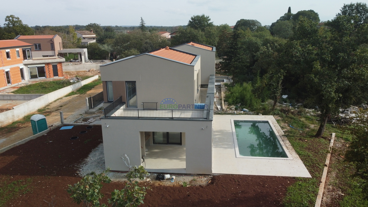 U vrlo mirnom ambijentu, na traženoj lokaciji, samo 5km udaljenoj od grada Poreča smješteno je ovih šest kuća iz naše ponude. Ova kuća koju Vam predstavljamo, kao i preostalih 4 kuća istog kompleksa, je izgrađena suvremenim stilom gradnje i raspolaže s 13