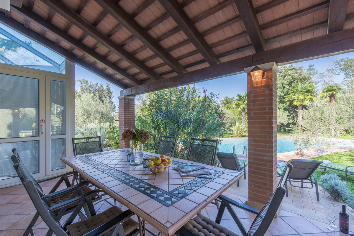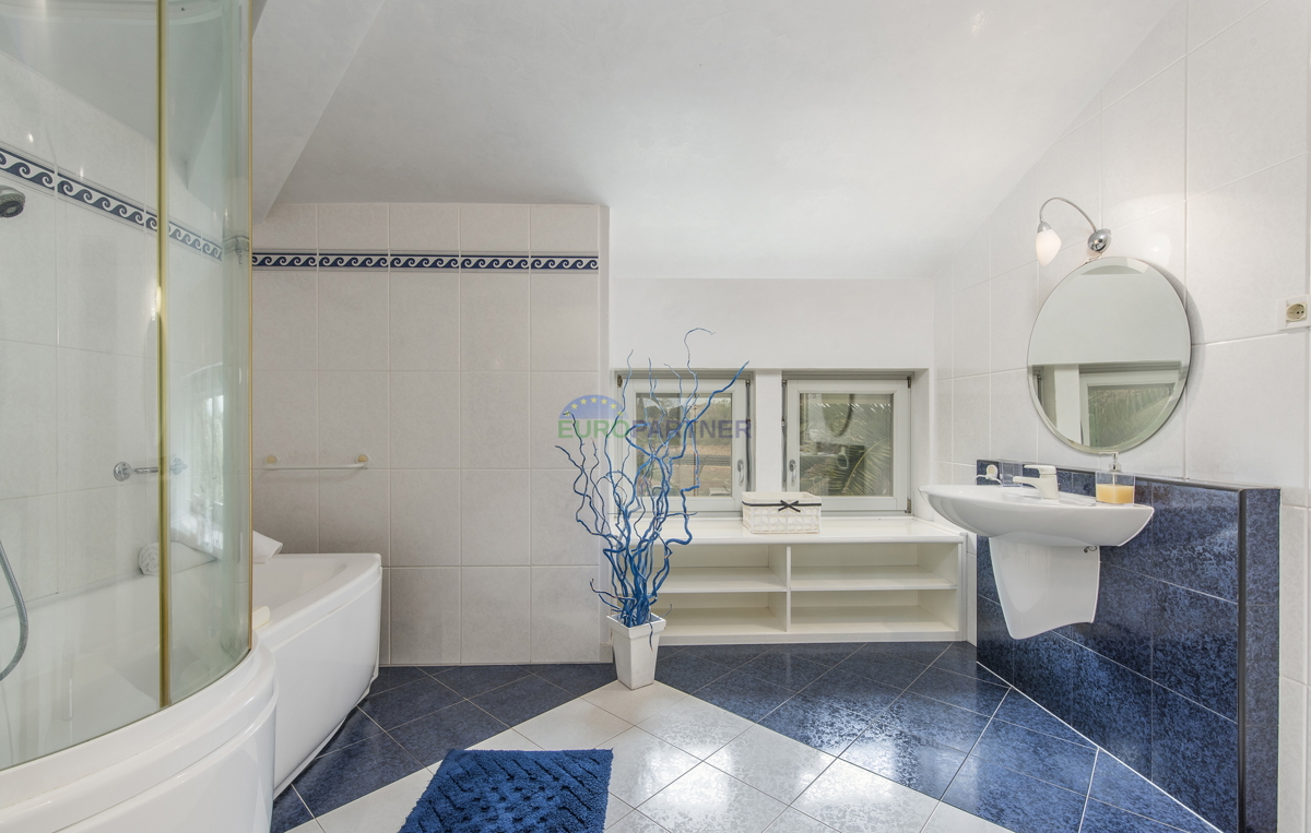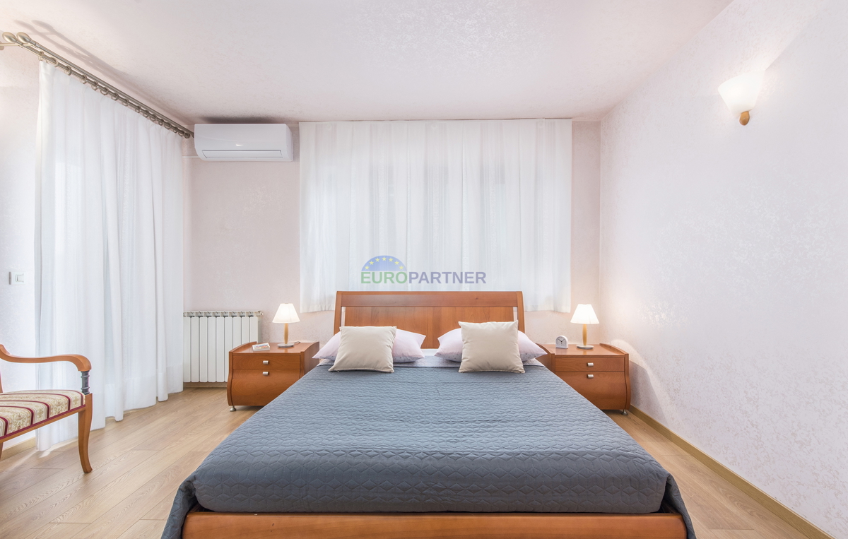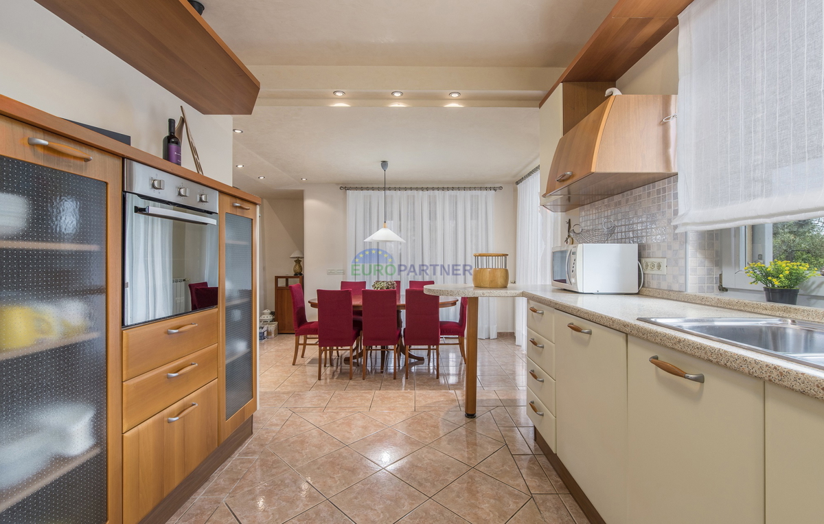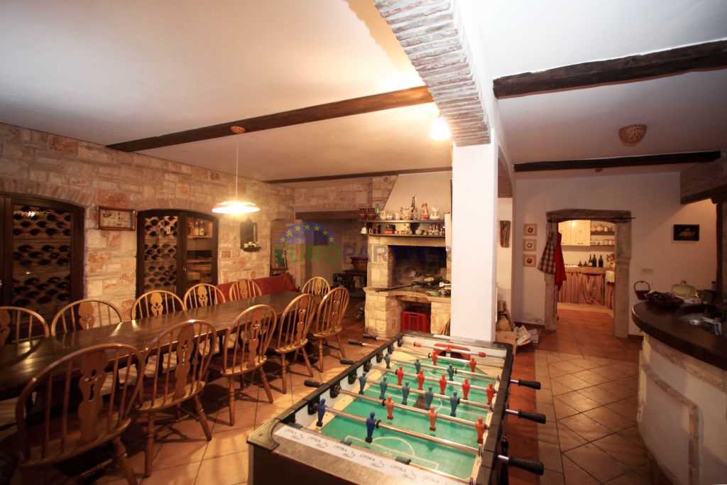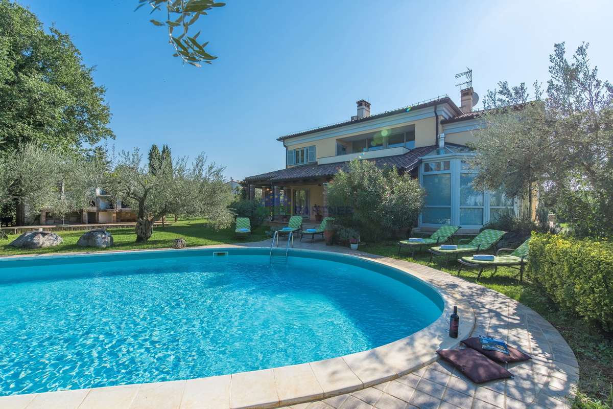 Prekrasna Vila u Poreču smještena u mirnome naselju okružena prirodom 1km od mora. Površine 420m2 koji se protežu na tri etaže. Nešto posebno i vrijedno nalazi se u podrumu kuće, tradicionalna istarska konoba u kojoj se nalazi mini kameni bar, velika blag