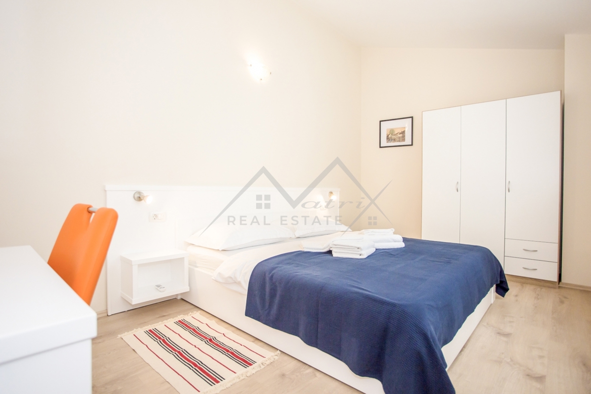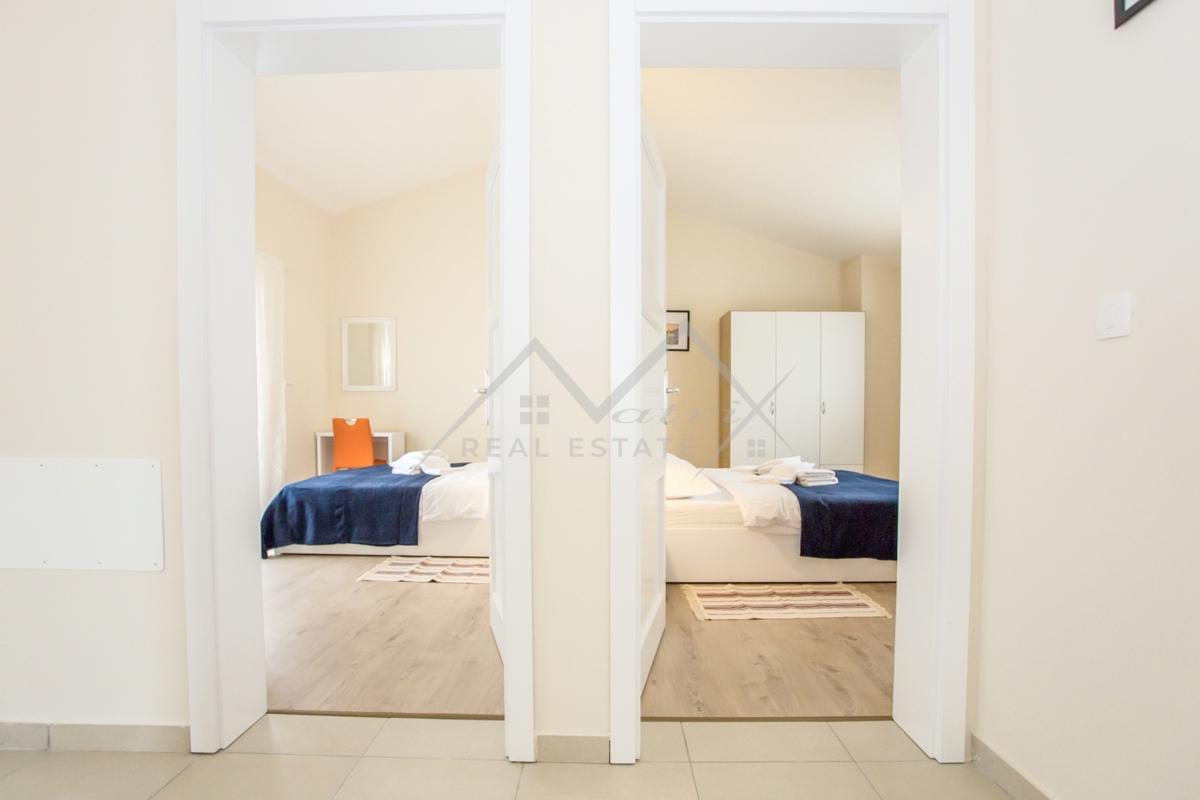 Dobrodošli u ovu veličanstvenu vilu, zapanjujuću nekretninu koja je savršen spoj modernog luksuza i udobnosti. Ova prostrana i dobro opremljena vila ima stambenu površinu od 180 četvornih metara, zajedno s lijepo uređenim dvorištem koje se proteže na imp