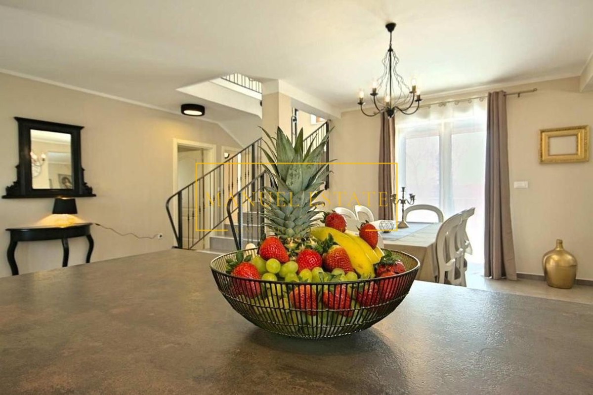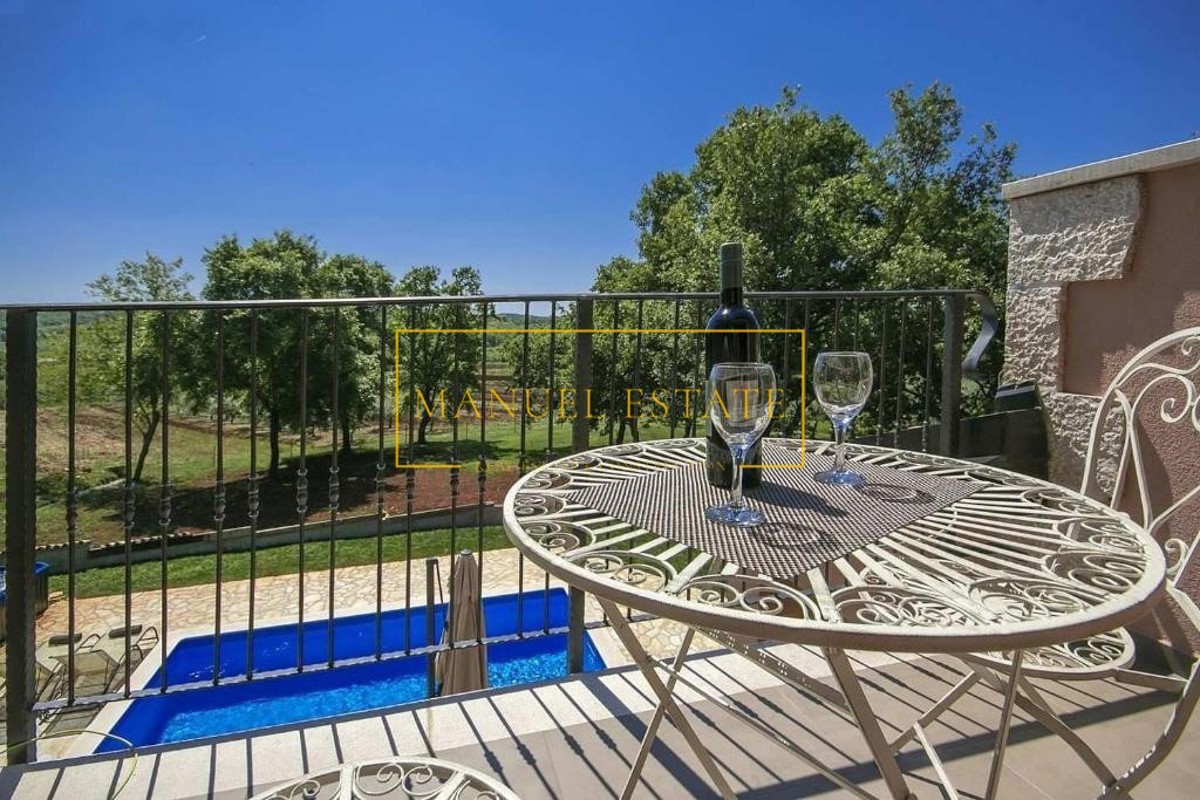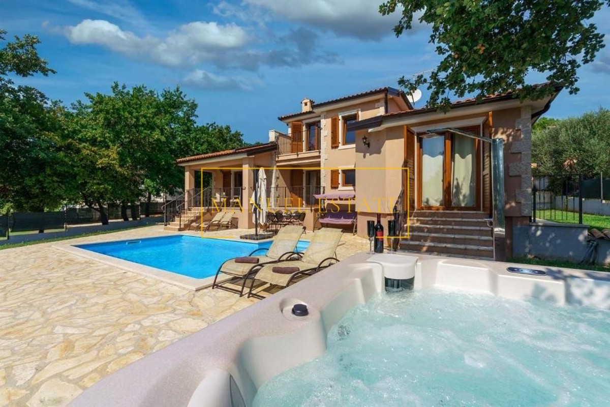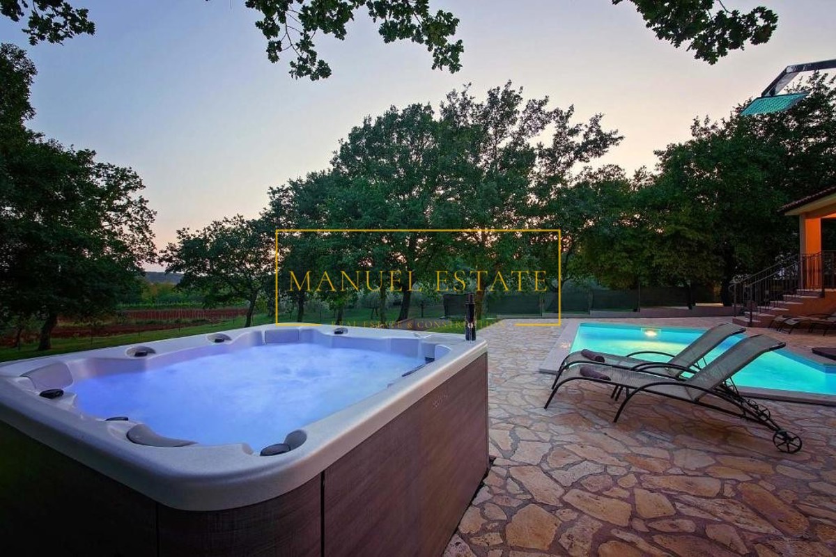 Moderna vila rustikalnog dizajna, sveukupne stambene površine od 165 m2 sa pomno uređenom okućnicom od 820 m2. Nalazi se na mirnoj lokaciji, na rubu manjeg sela u blizini Poreča. Prostire se na dvije etaže, prizemlje i kat; prizemlje se sastoji od dvije s