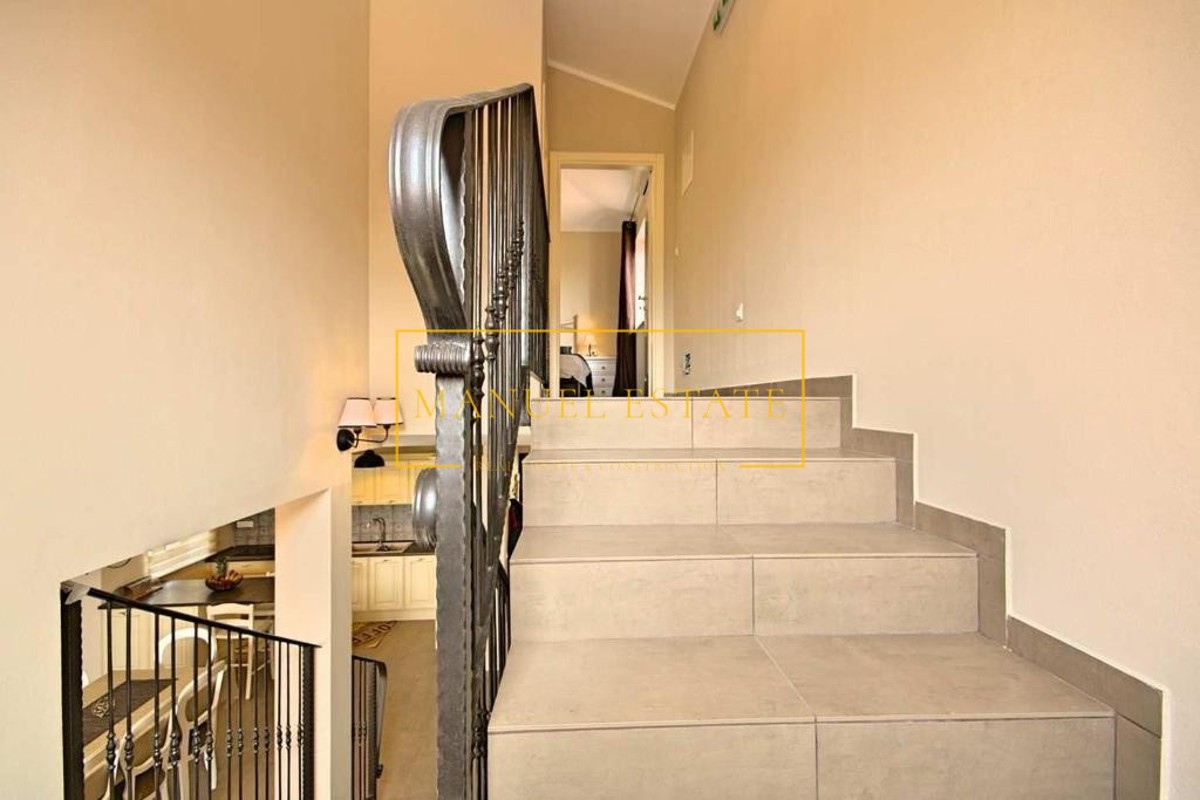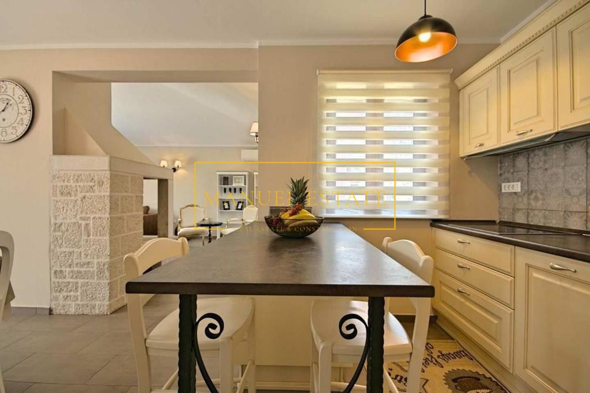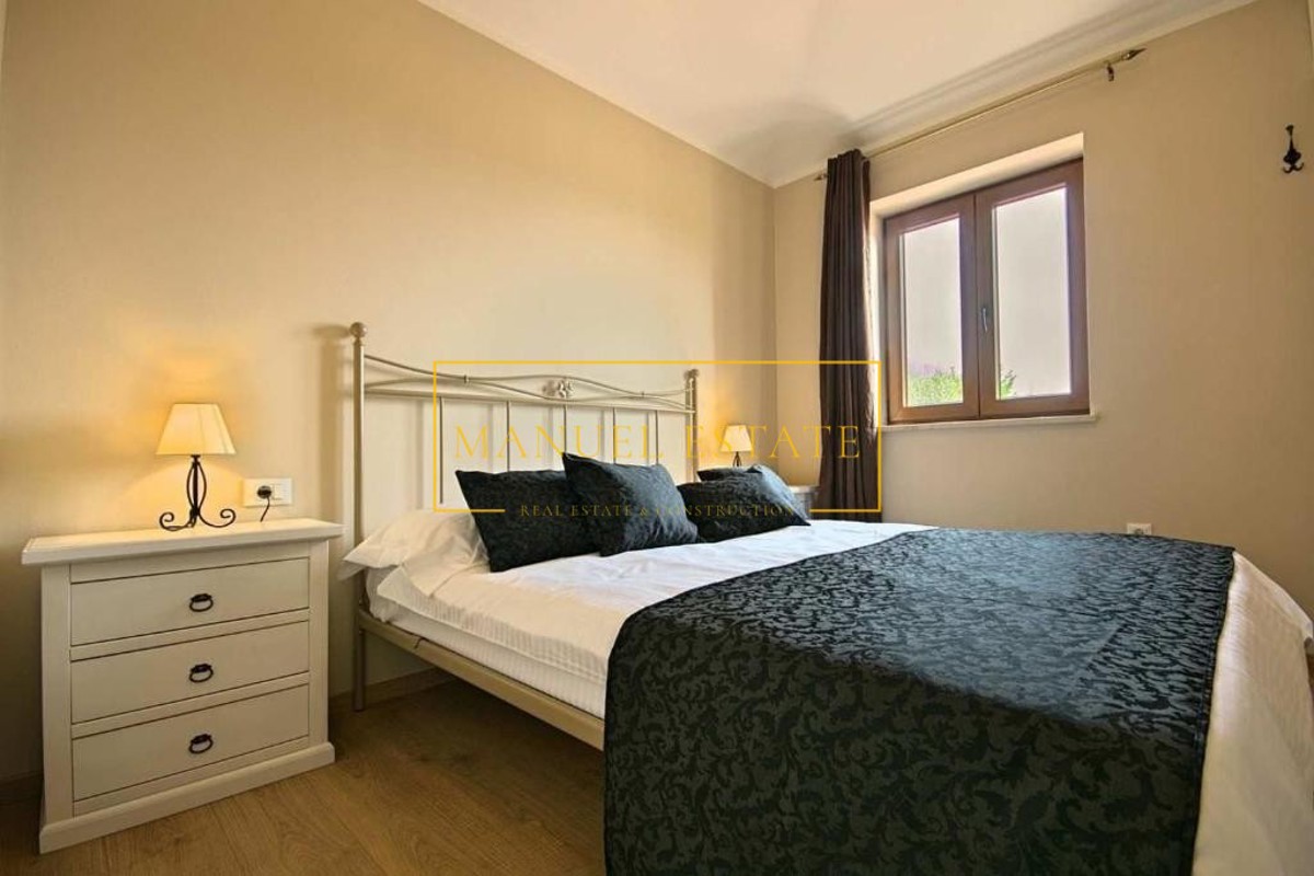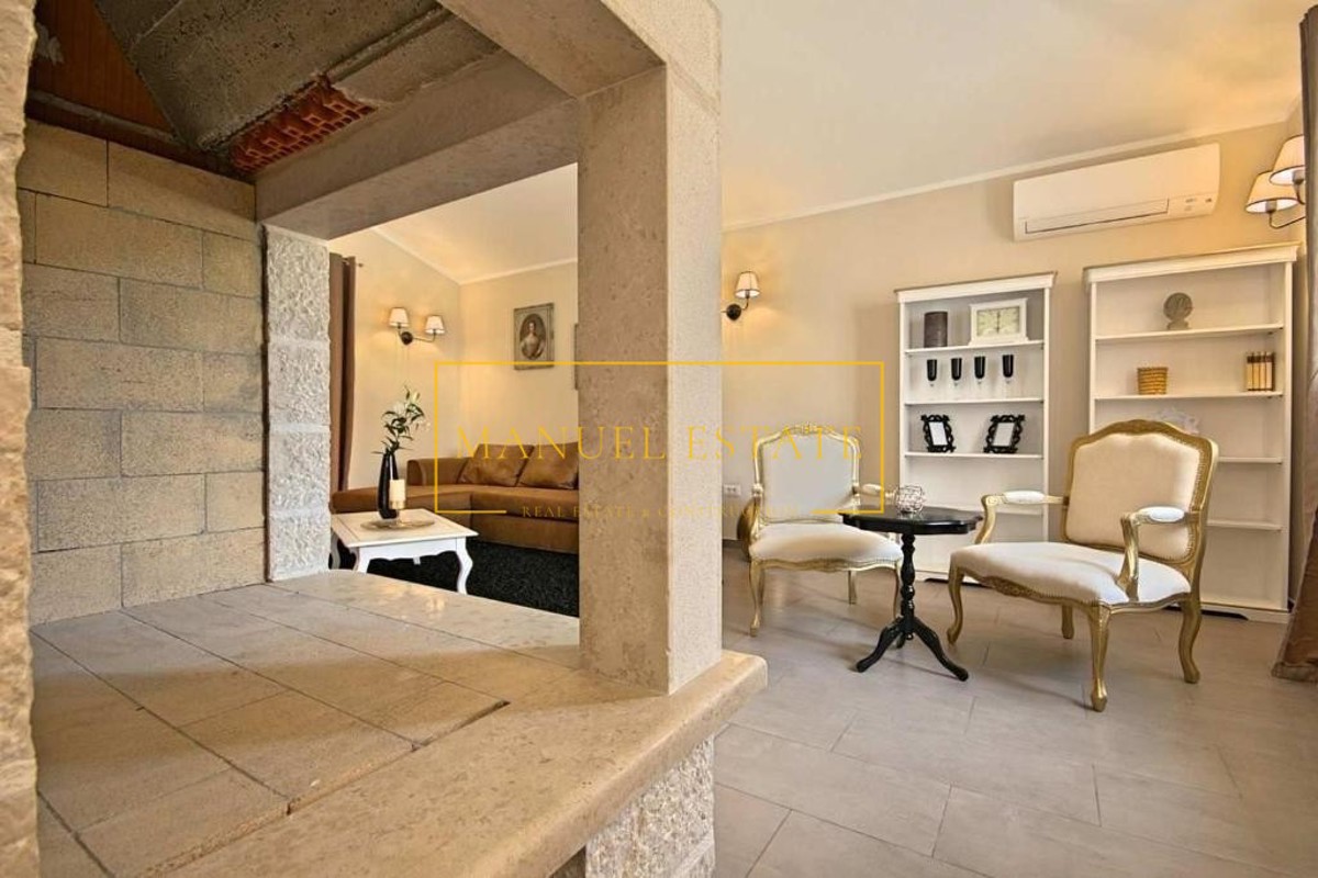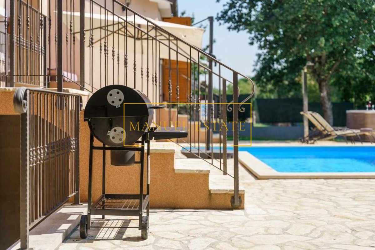 Moderna vila rustikalnog dizajna, sveukupne stambene površine od 165 m2 sa pomno uređenom okućnicom od 820 m2. Nalazi se na mirnoj lokaciji, na rubu manjeg sela u blizini Poreča. Prostire se na dvije etaže, prizemlje i kat; prizemlje se sastoji od dvije s