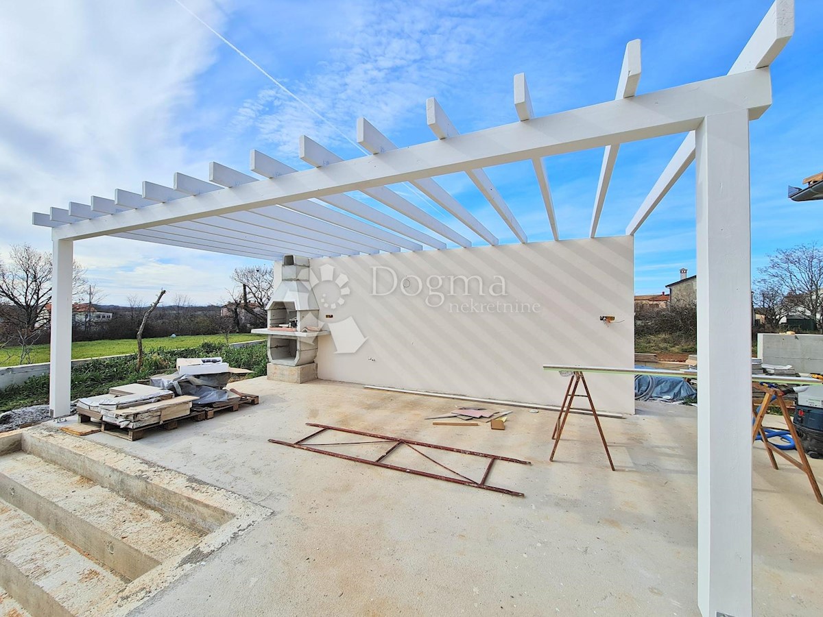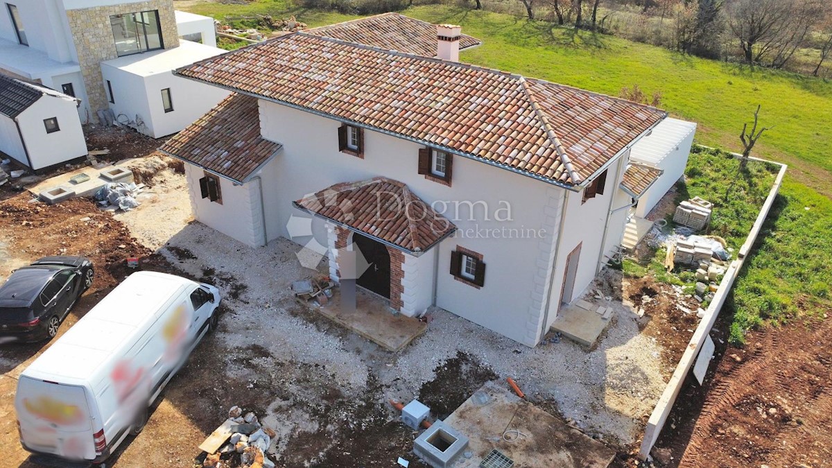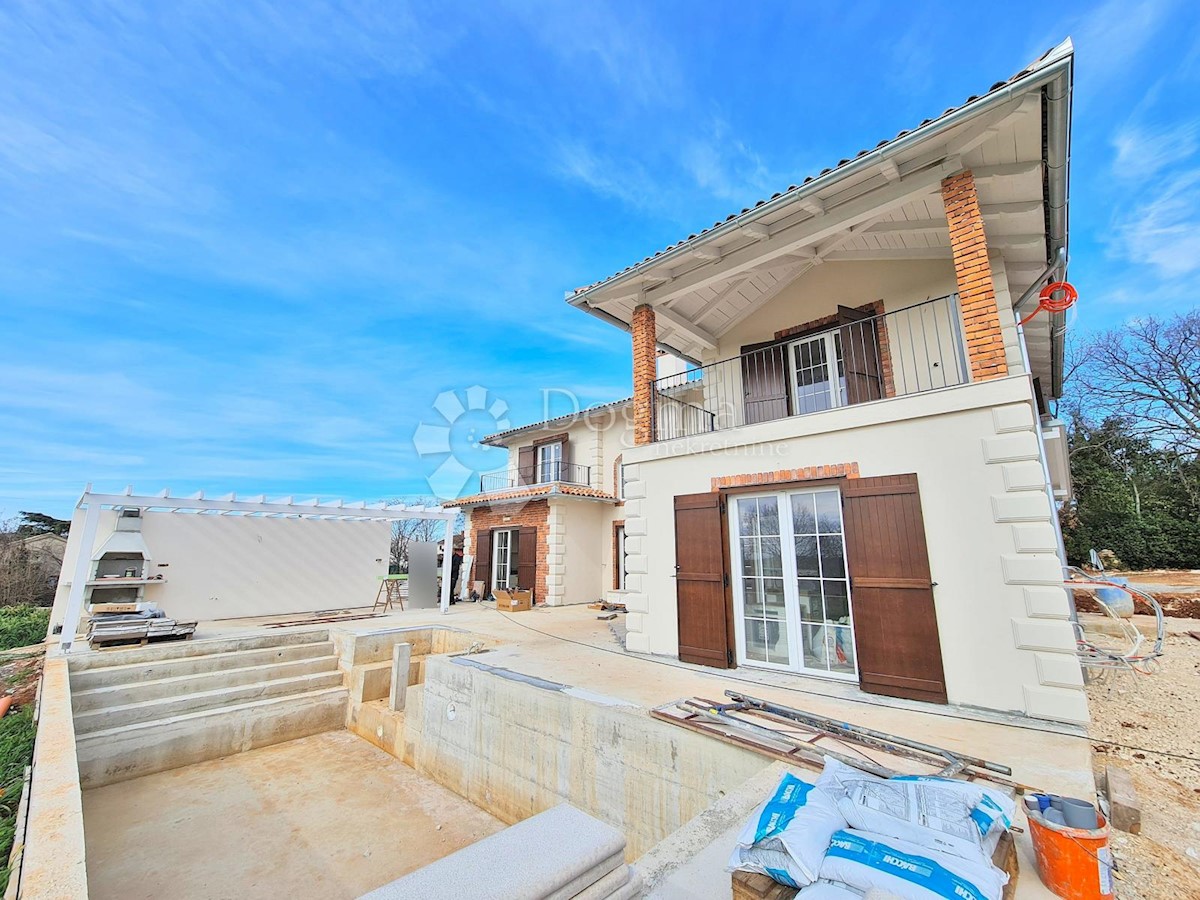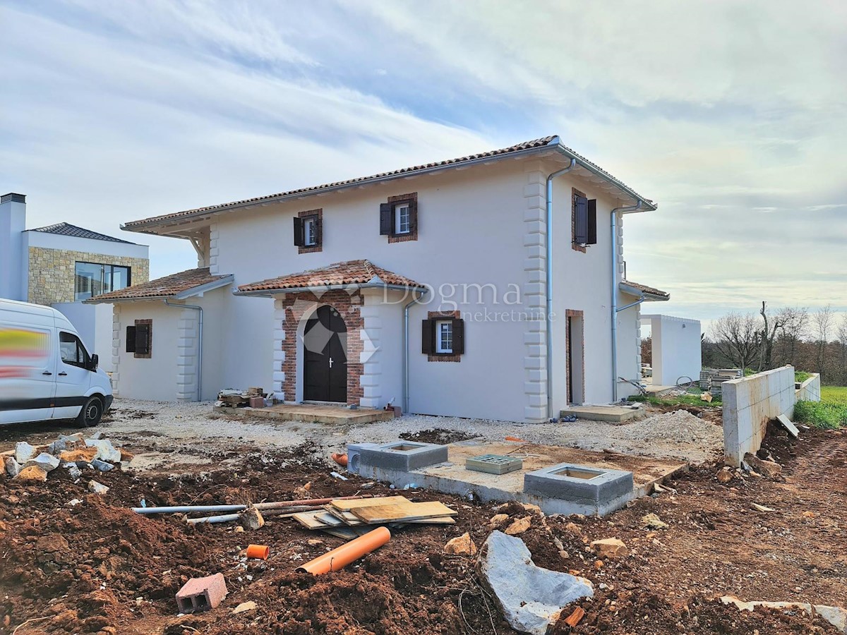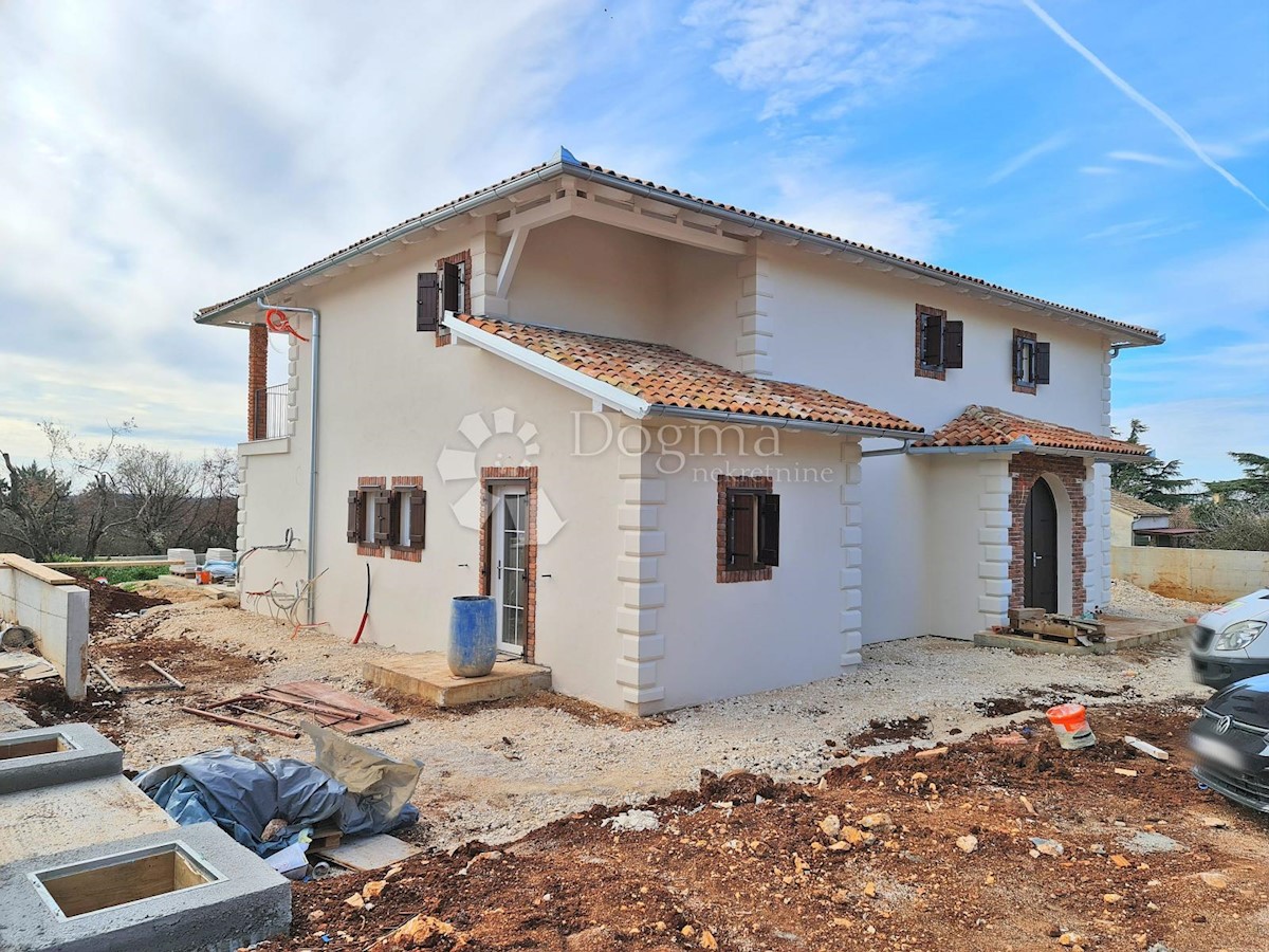 Predivna kuća na fantastičnoj lokaciji. Novogradnja u završnoj fazi. Konceptualno je zamišljena kao tradicionalna Istarska kuća sa primjesama Španjolskog štiha.. Sagrađena je na parceli od 712 m2 na kojoj osim kuće pronalazimo bazen, vrt, terasu, roštilj,