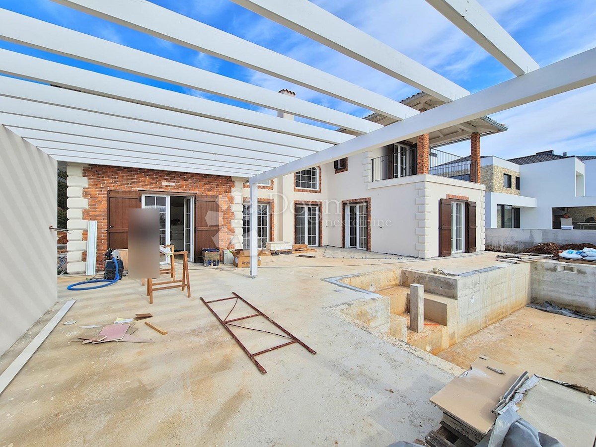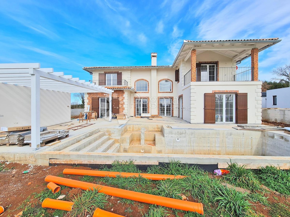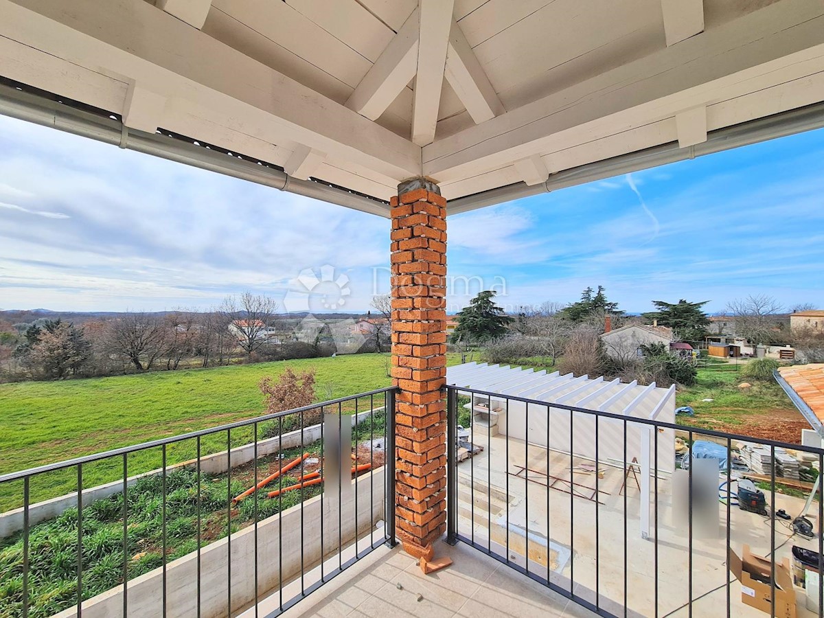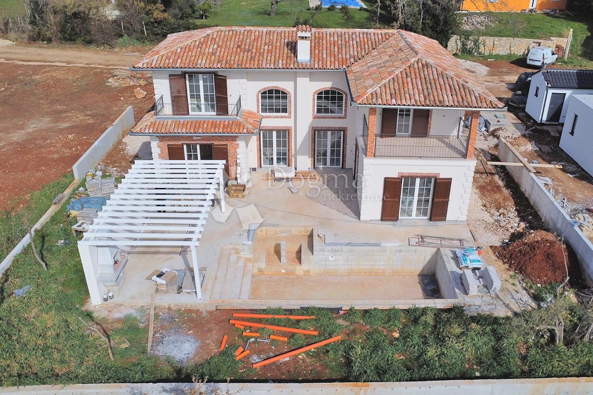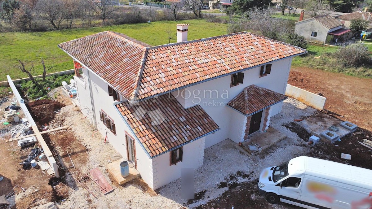 Predivna kuća na fantastičnoj lokaciji. Novogradnja u završnoj fazi. Konceptualno je zamišljena kao tradicionalna Istarska kuća sa primjesama Španjolskog štiha.. Sagrađena je na parceli od 712 m2 na kojoj osim kuće pronalazimo bazen, vrt, terasu, roštilj,