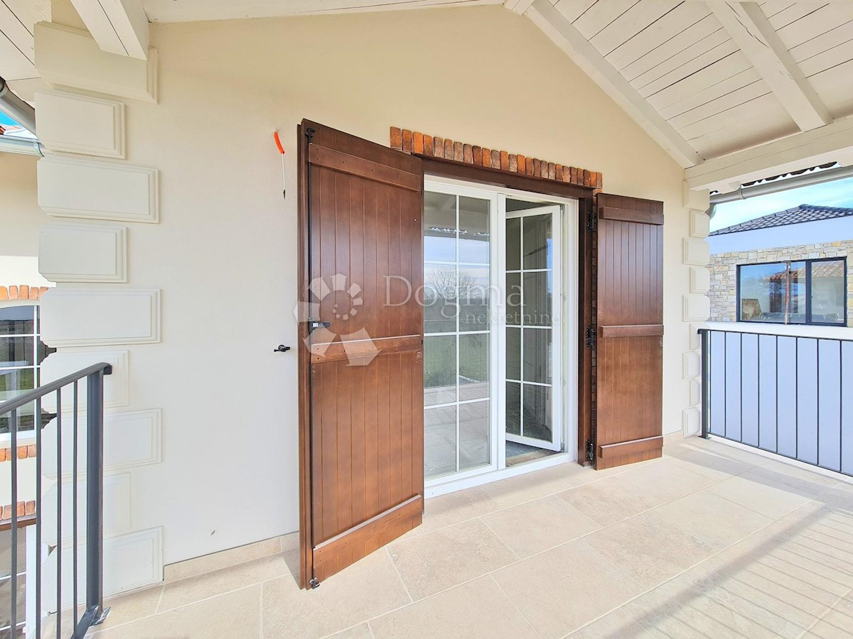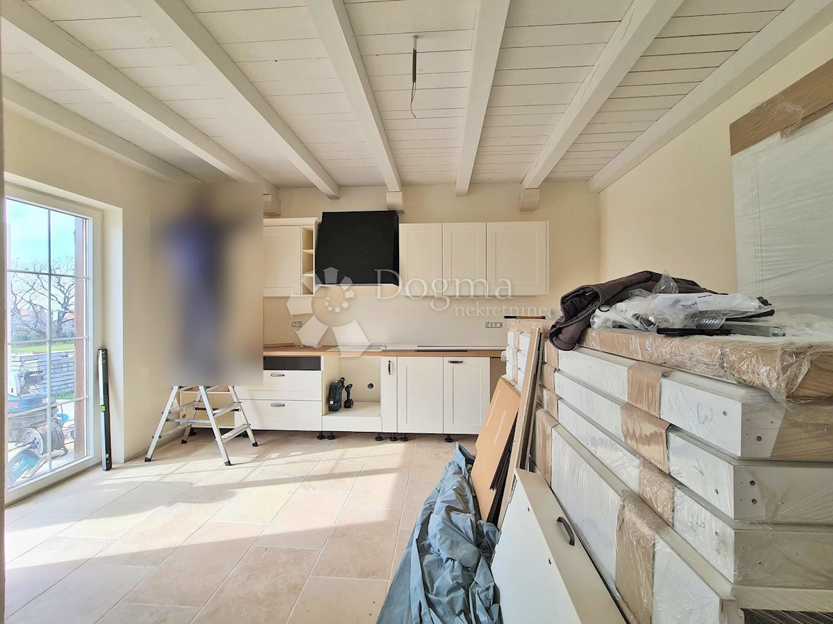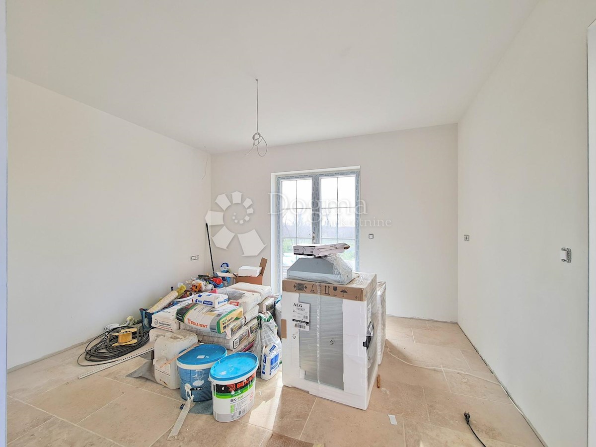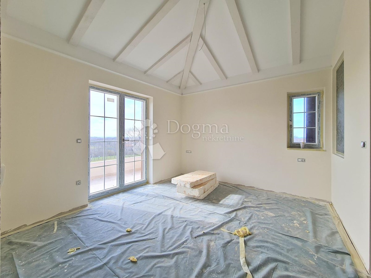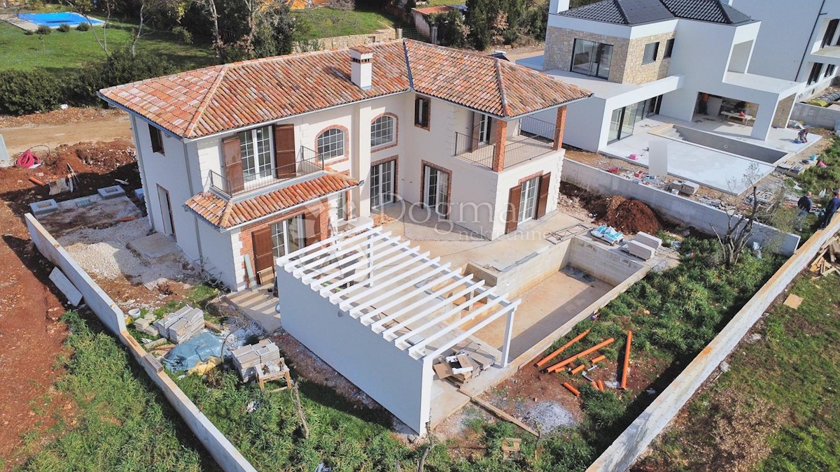 Predivna kuća na fantastičnoj lokaciji. Novogradnja u završnoj fazi. Konceptualno je zamišljena kao tradicionalna Istarska kuća sa primjesama Španjolskog štiha.. Sagrađena je na parceli od 712 m2 na kojoj osim kuće pronalazimo bazen, vrt, terasu, roštilj,
