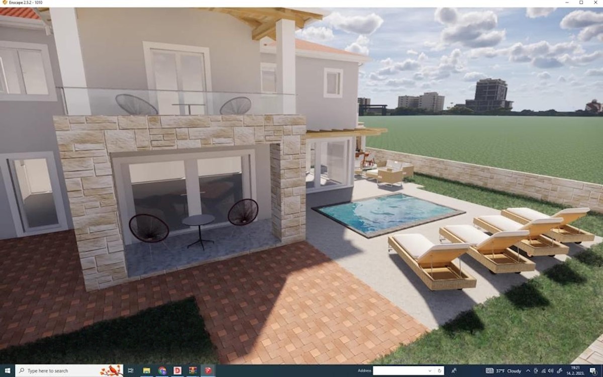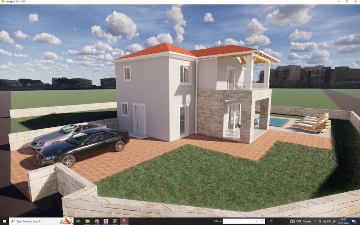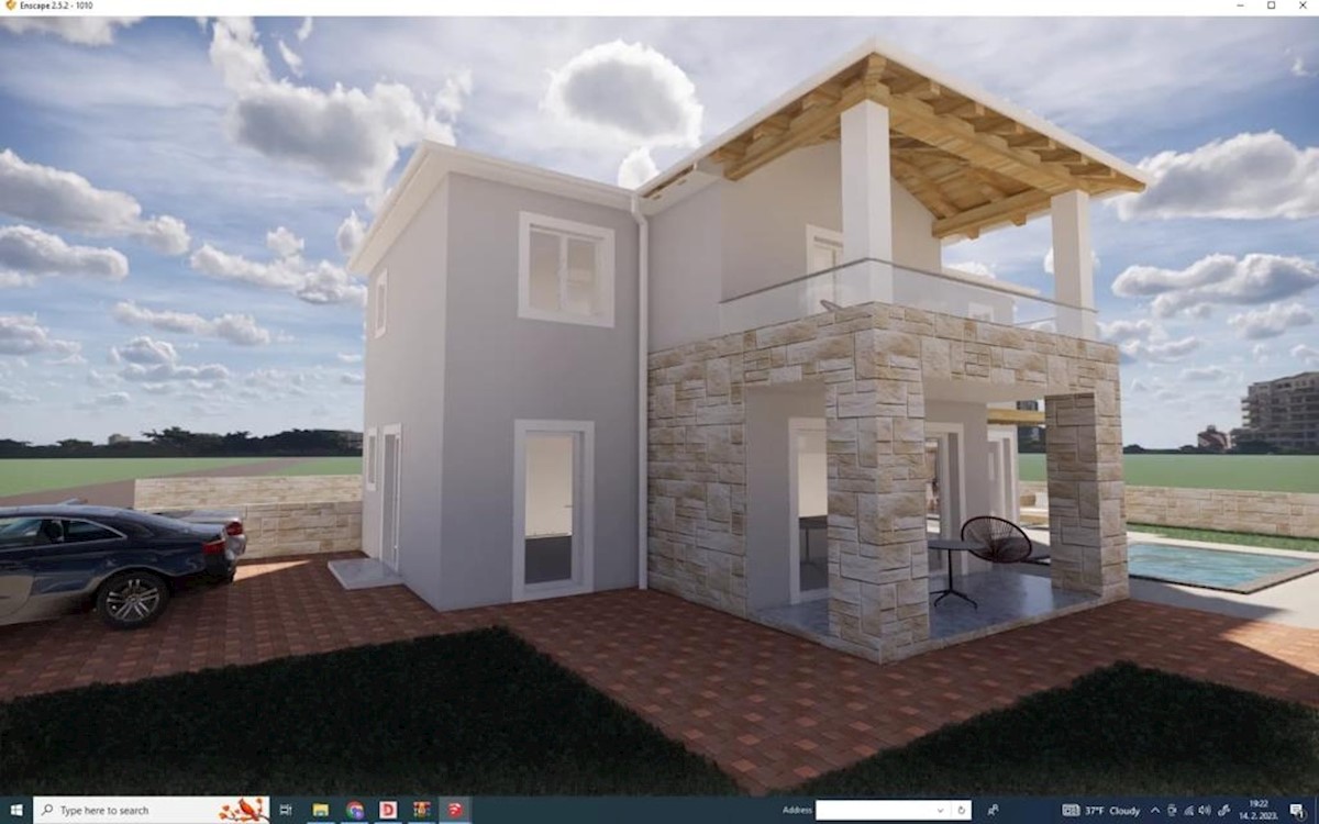 Poreč - u širem centru grada Poreča dvojna kuća u prodaji. Do ljeta 2023 planiran je dovršetak ove kvalitetne dvojne kuće ukupne površine 147 m2. Kuća se prostire na dvije etaže. U prizemlju nalazi se hodnik, wc, spremiše, dnevni boravak, kuhinja sa blago