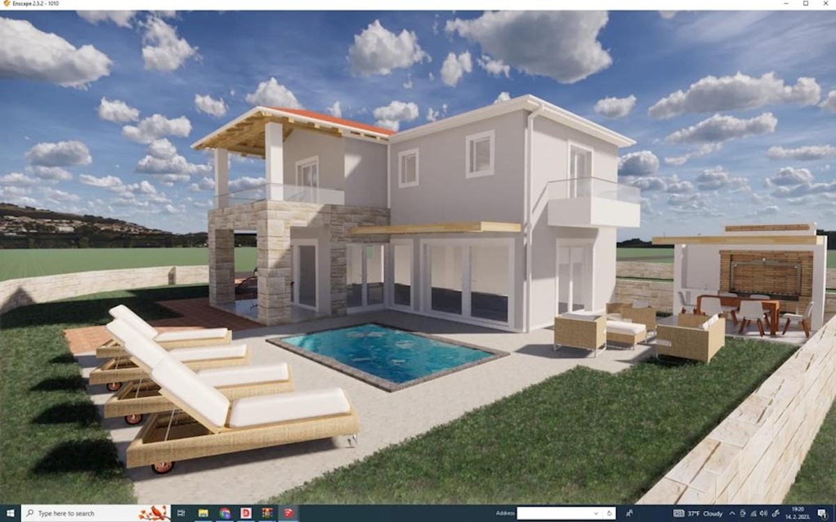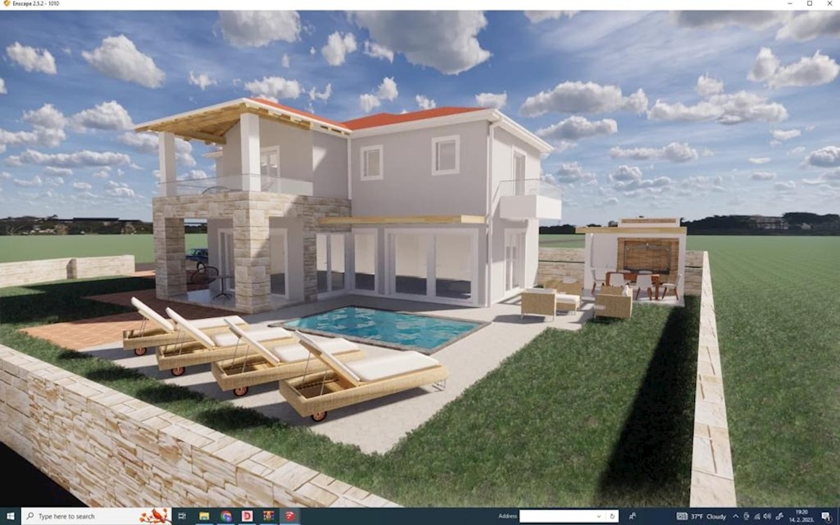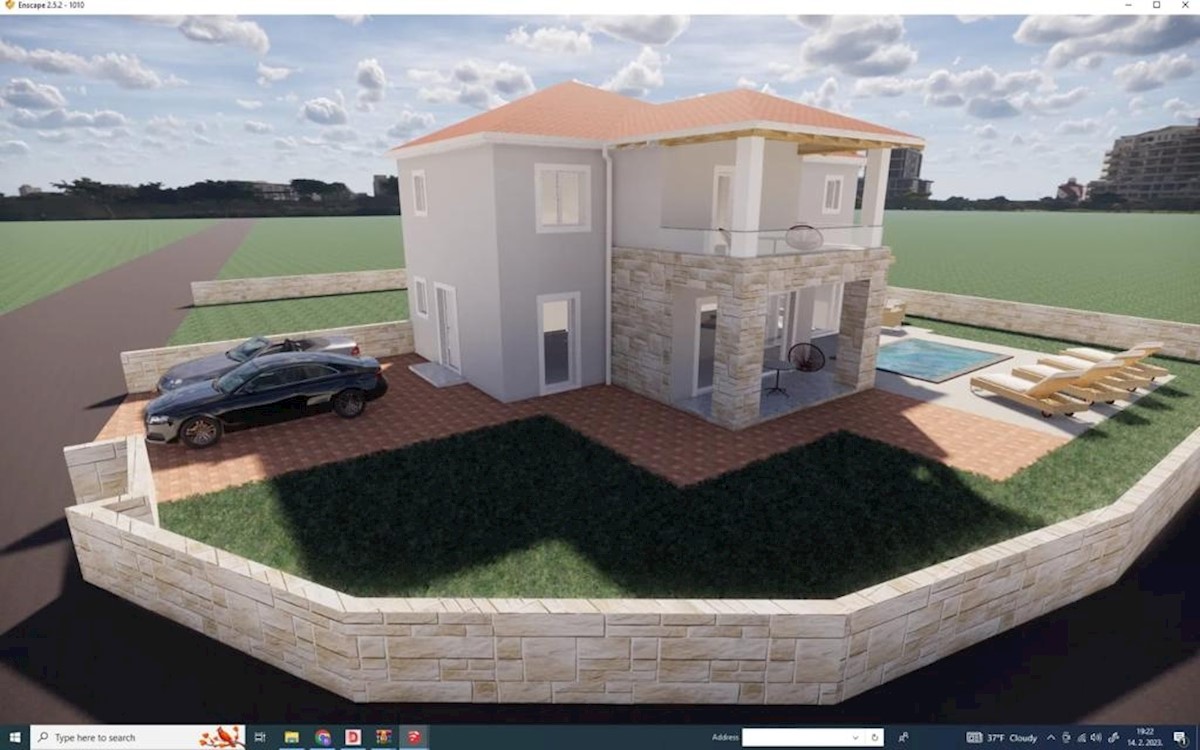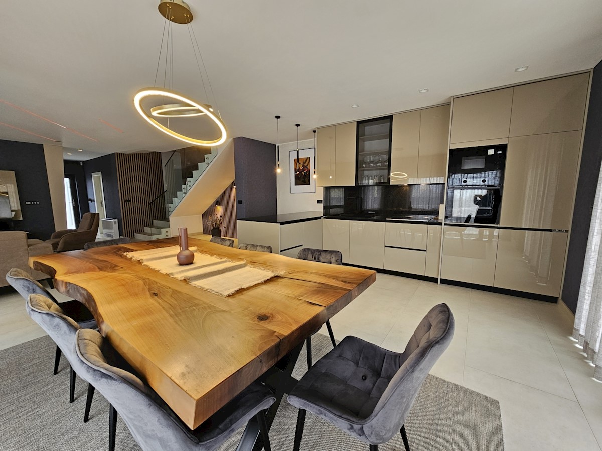 Poreč - u širem centru grada Poreča dvojna kuća u prodaji. Do ljeta 2023 planiran je dovršetak ove kvalitetne dvojne kuće ukupne površine 147 m2. Kuća se prostire na dvije etaže. U prizemlju nalazi se hodnik, wc, spremiše, dnevni boravak, kuhinja sa blago