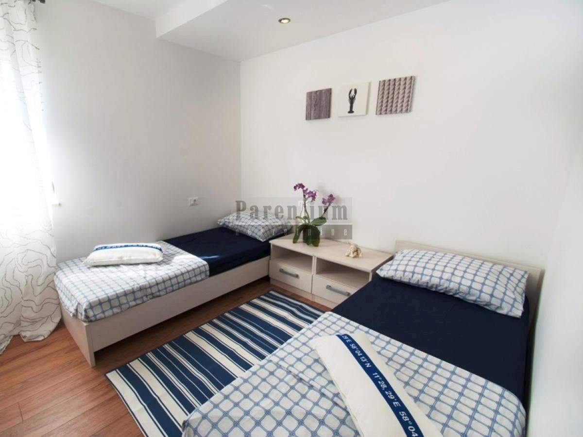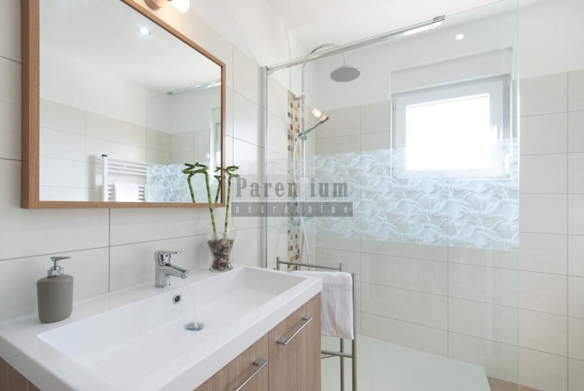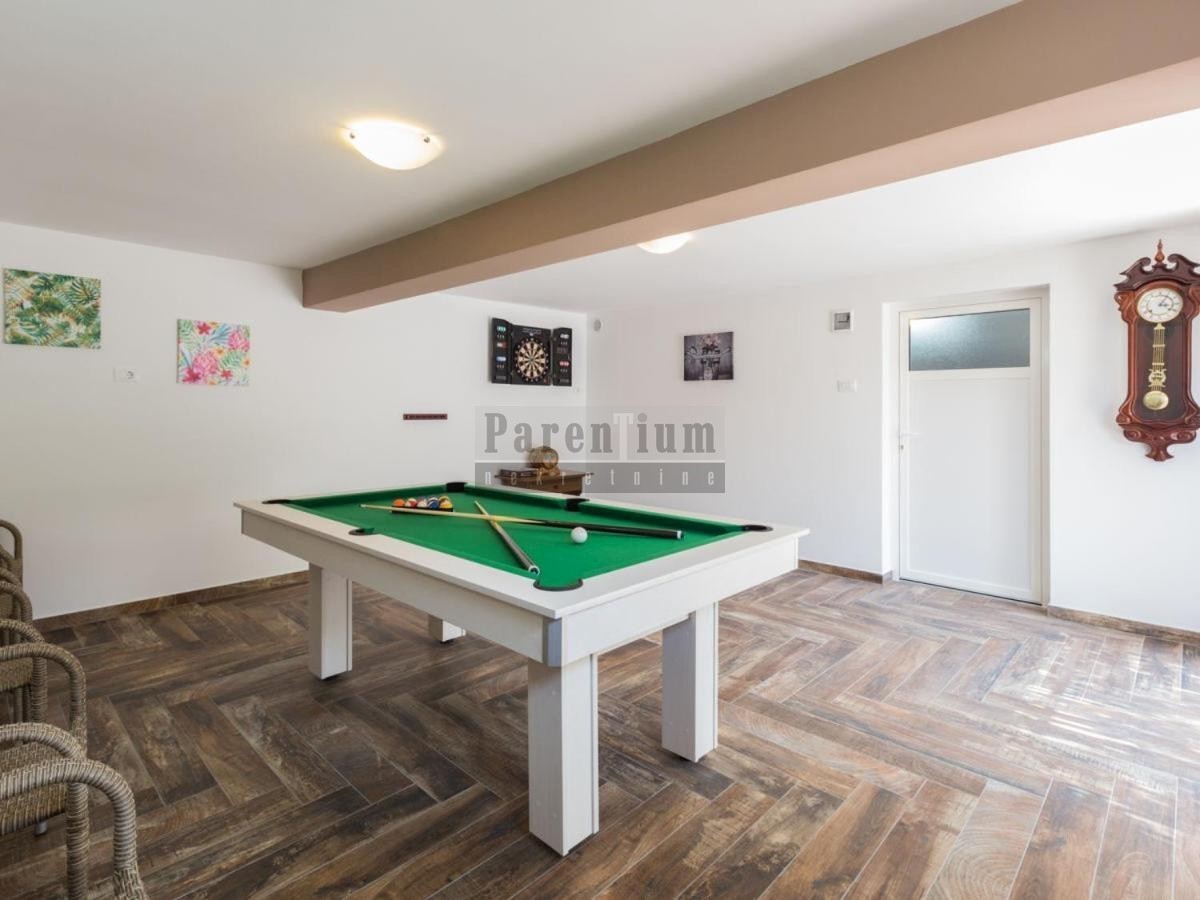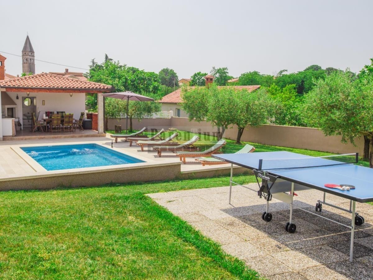 Poreč, okolica, na prodaji je predivna prizemnica sa bazenom površine 150m2. Sastoji se od kuhinje, blagovaone, dnevnog boravka, tri spavaće sobe, dva kupatila. Kuća ima i podrum gdje se nalazi play room. Okućnica kuće održavana je sa puno mediteranskog b