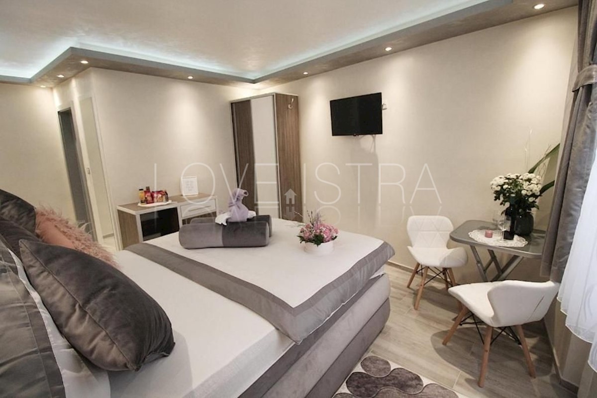 Rijetkost na tržištu! kuća u starogradskoj jezgri od 260m2 na 3 etaže. U naravi 7 soba sa 7 kupaona i recepcija u prizemlju. Kuća je kompletno renovirana. Trenutno su na svakoj etaži po 2 sobe svaka sa svojim kupatilom i jedna soba u potkrovlju također sa