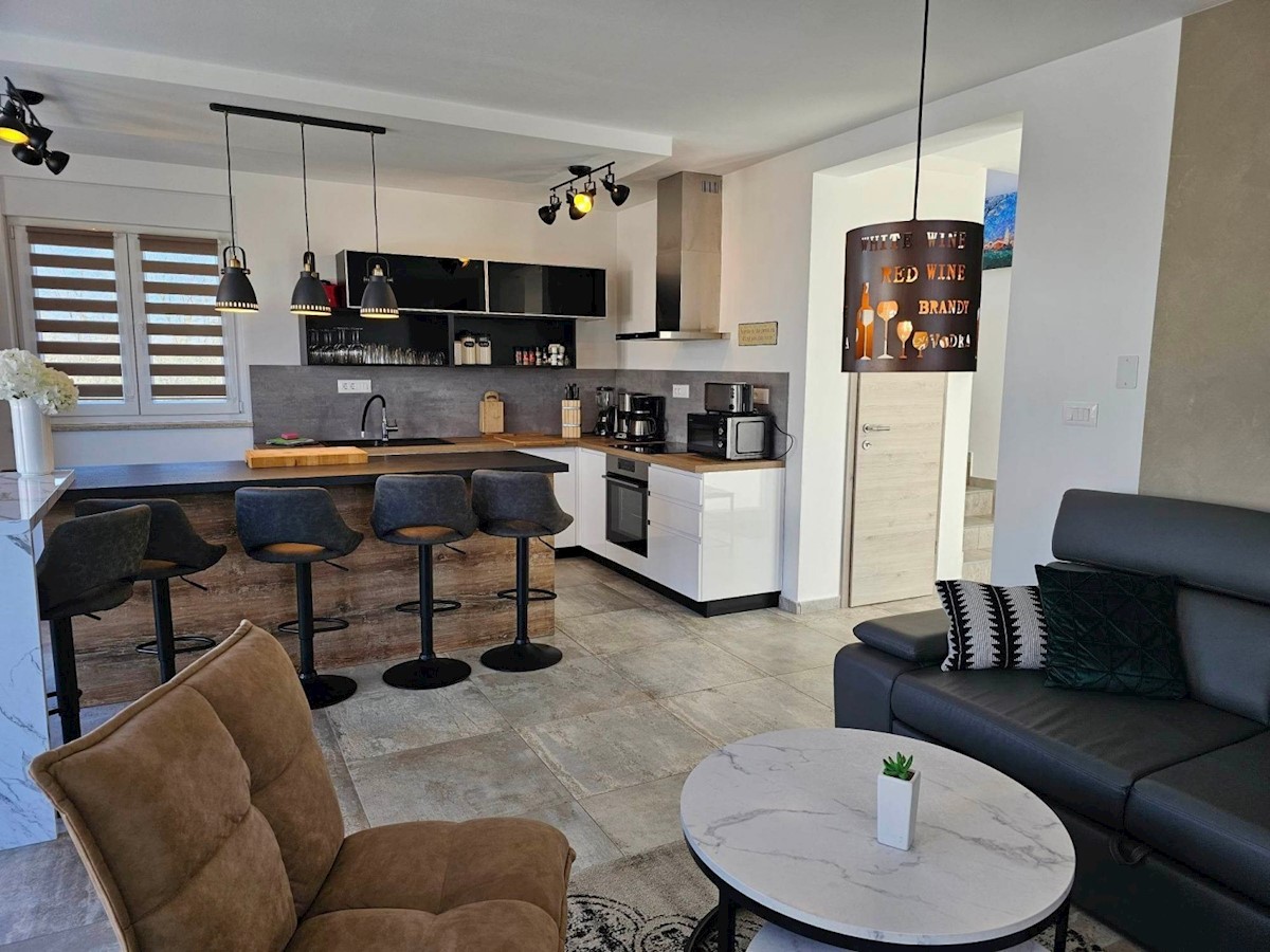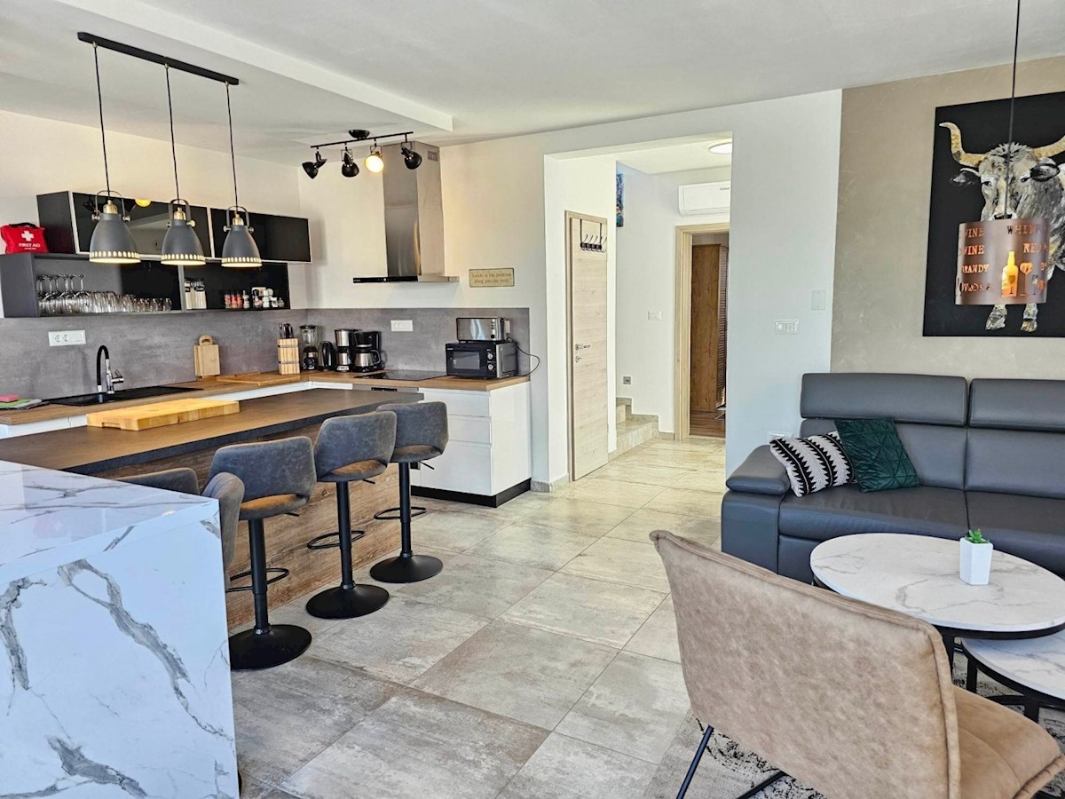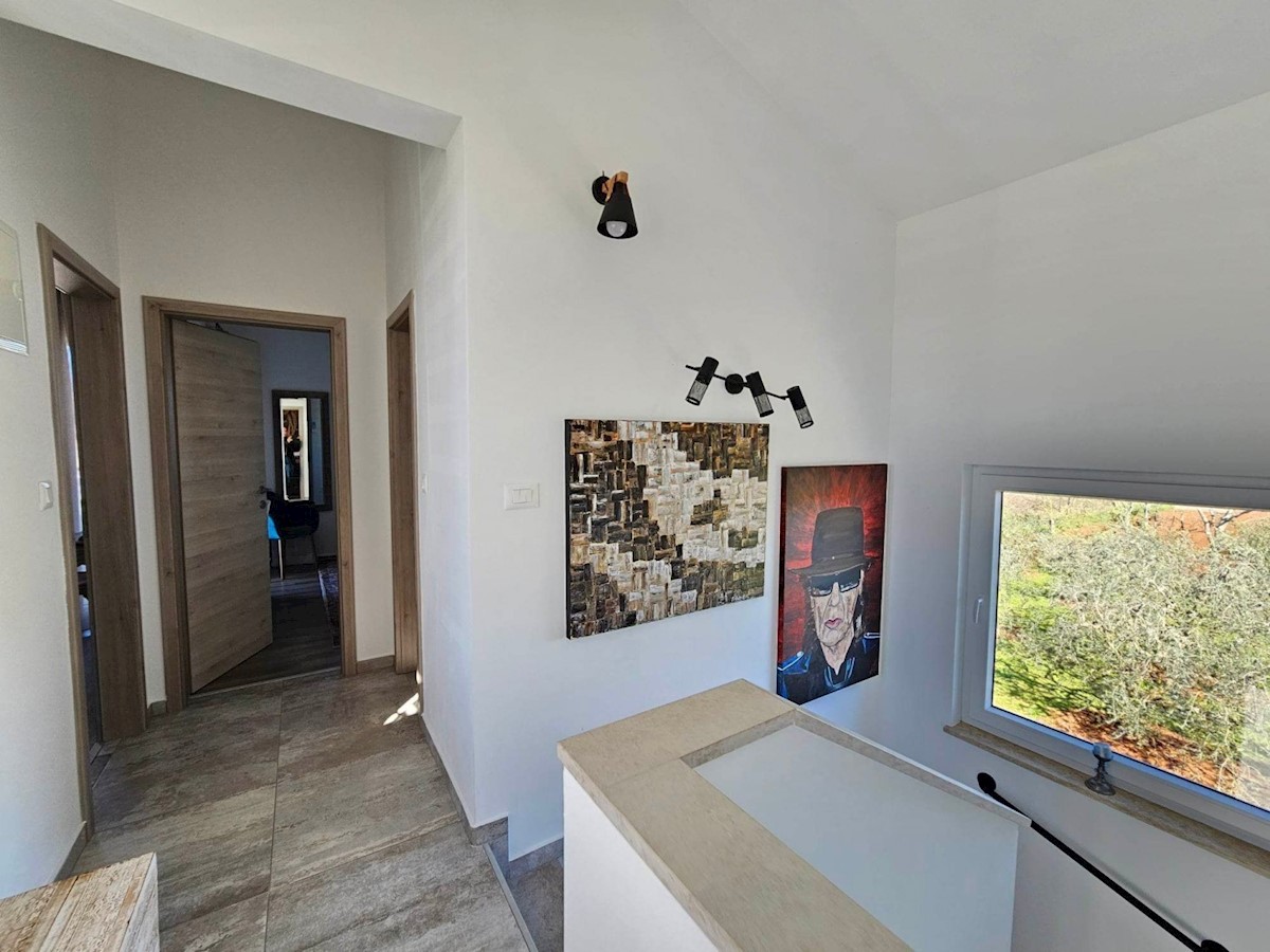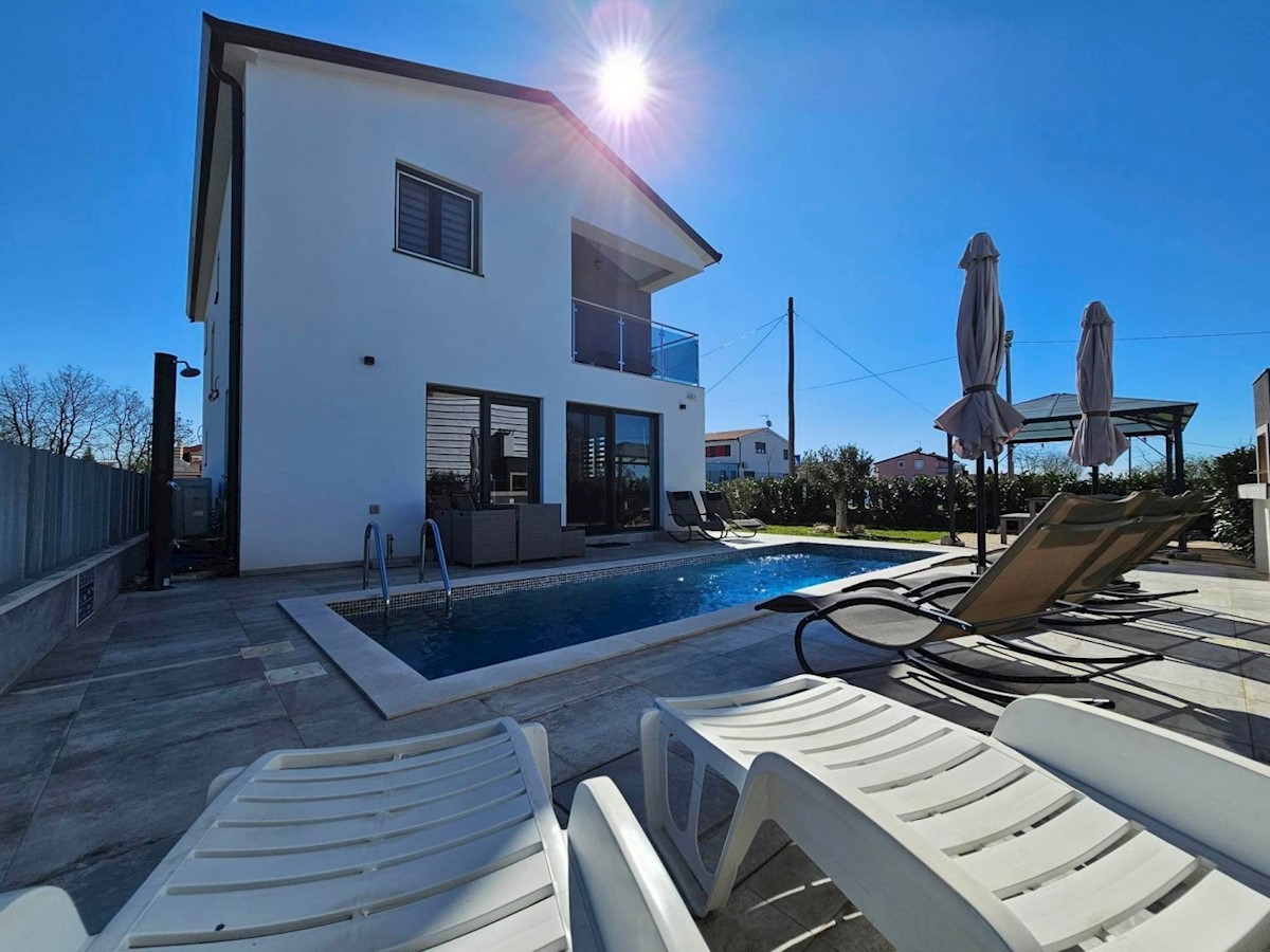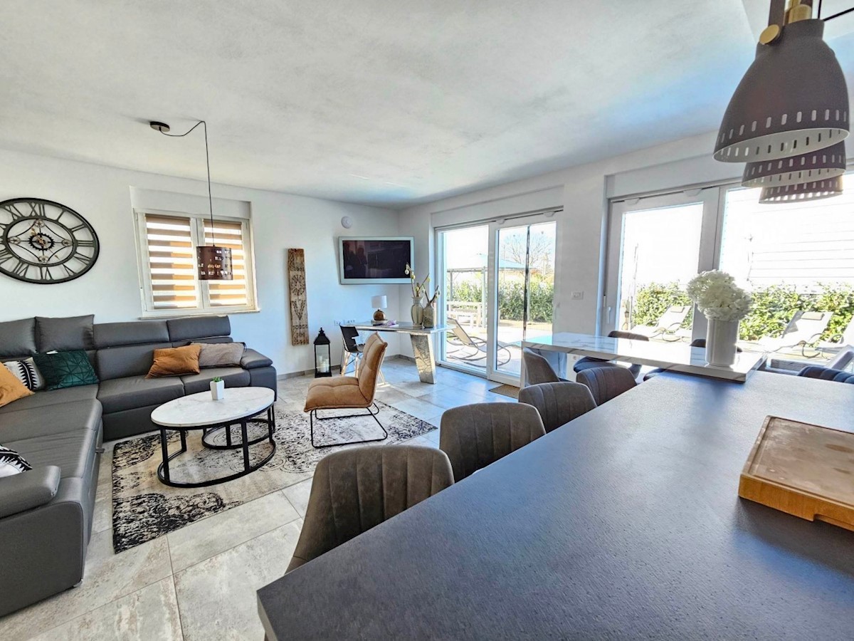 Obiteljska kuća sa bazenom u okolici Poreča- kuća ima ca 120 m2 na dvije etaže: tu su 4 spavaće sobe, svaka sa svojim TV-om, i 3 kupaonice s tuševima, otvoreni dnevni boravak, blagovaonica i prostor za kuhanje s TV-om nudi obilje prostora za ugodna družen
