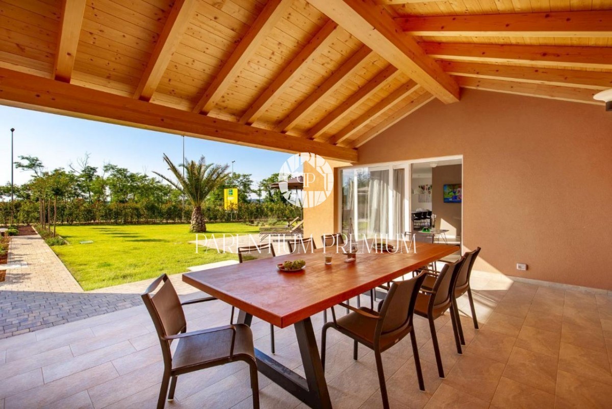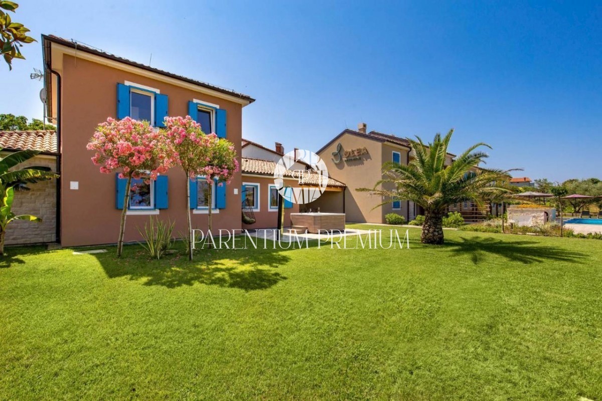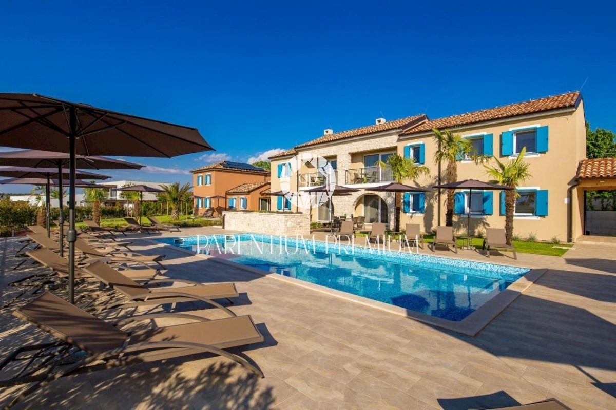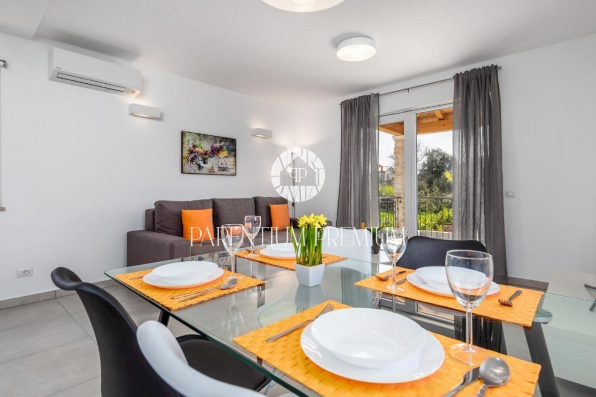 Istra, Poreč Na prodaju turistički kompleks od jedne kuće i šest odvojenih apartmana, a čine ga: Kuća površine 151 m2 koja se sastoji od prostranog dnevnog boravka, kuhinje s blagavaonicom, kupatila te dvije spavaće sobe. Dva apartmana površine 61m2 sv