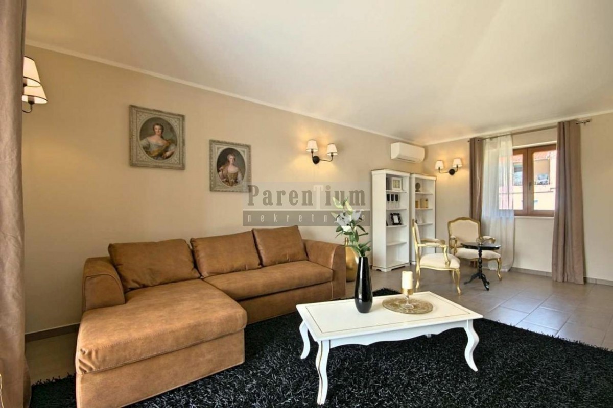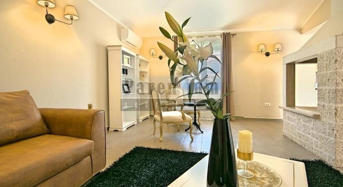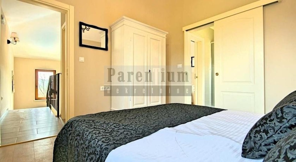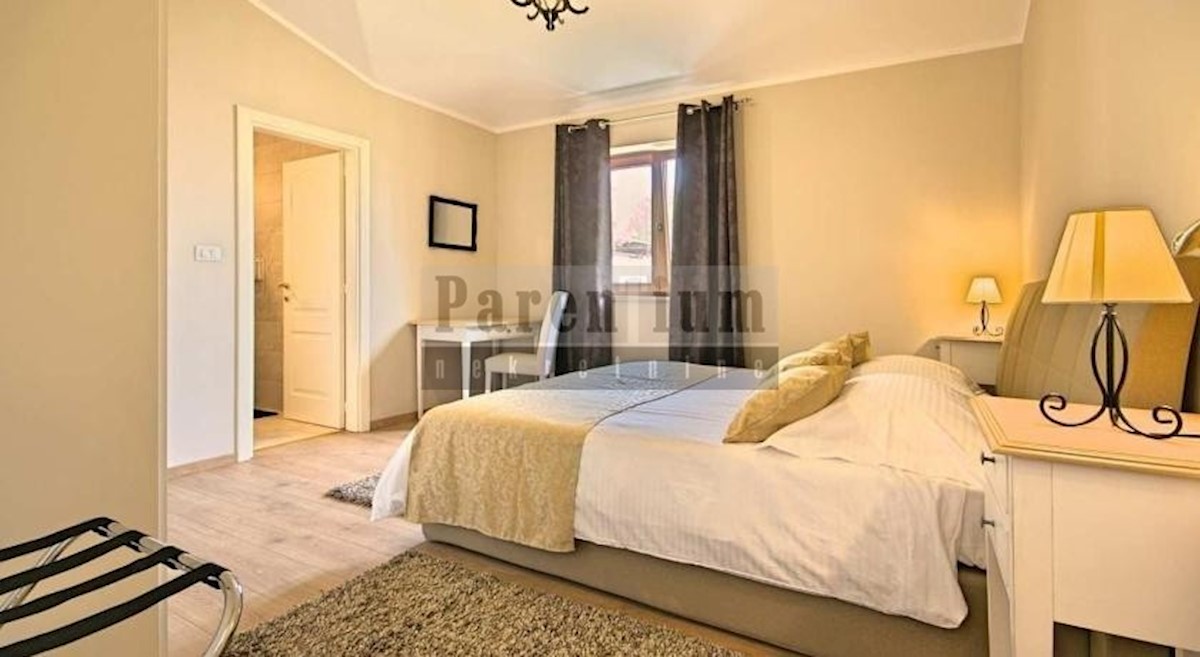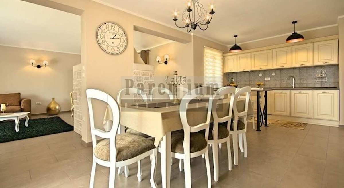 ISTRA - BLIZINA POREČA, Prodaje se elegantna rustikalna vila s bazenom u mirnom selu samo 5 minuta vožnje od mora i 10 minuta vožnje od centra Poreča. Izgrađena 2016. godine, ova prekrasna vila smještena je na vrlo mirnoj poziciji okružena hrastovom šum