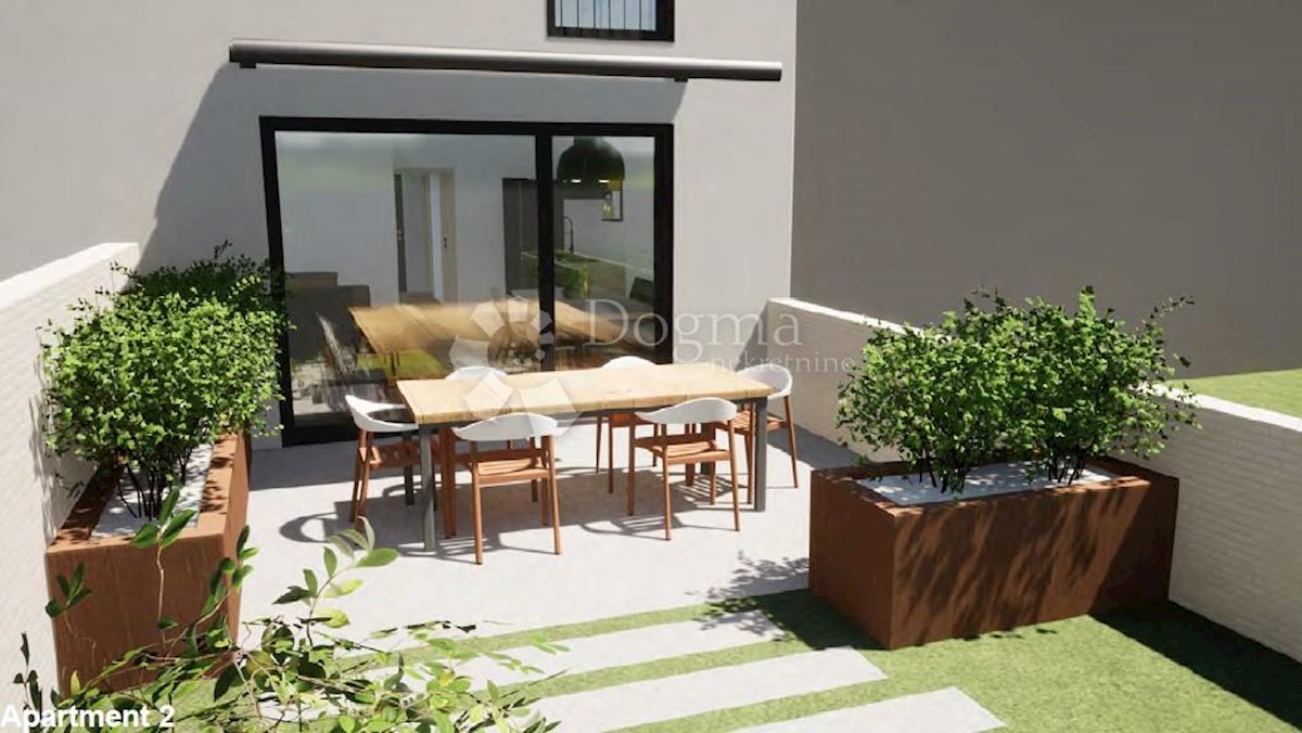 Poreč, okolica, 2m od plaže (APP2) Predstavljamo vam nekretninu u početnoj fazi izgradnje. Objekt se sastoji od prizemlja, kata i potkrovlja, pružajući prostrani prostor za udoban život. Smješten je na mirnoj lokaciji i pruža sve pogodnosti modernog doma