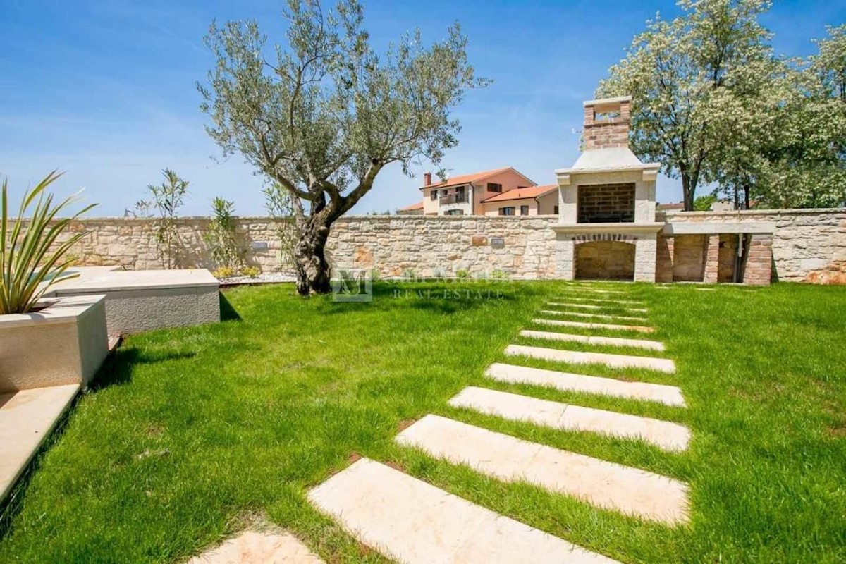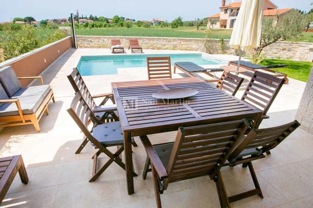 Poreč, okolica U mirnom naselju nedaleko od Poreča prodaje se ova lijepa samostojeća kuća. Kuća se nalazi na lijepo uređenoj okućnici od 471 m2, ima bazen i roštilj. Njena ukupna površina iznosi 124 m2, a sastoji se od 4 spavaće sobe, dnevnog boravka i