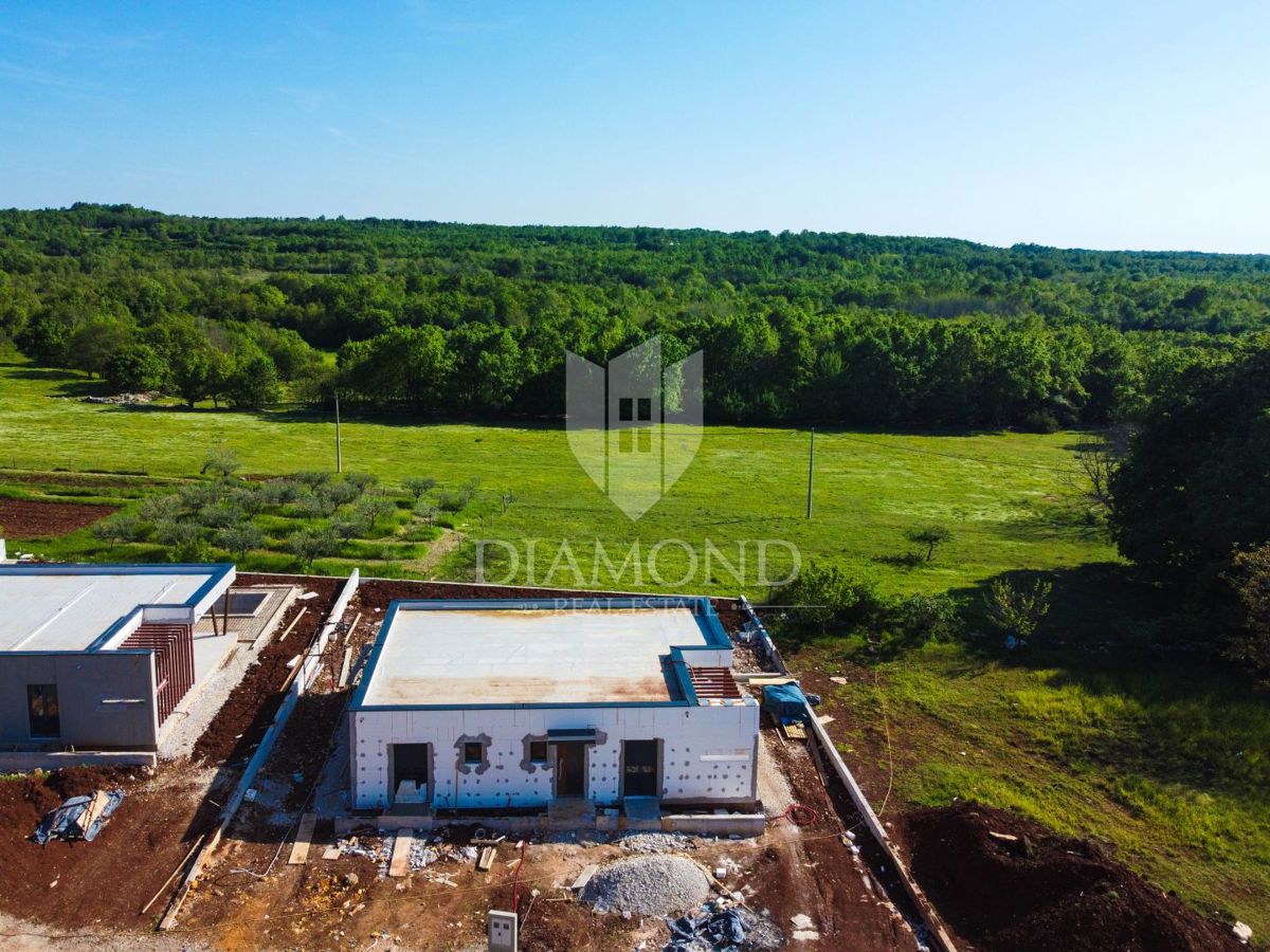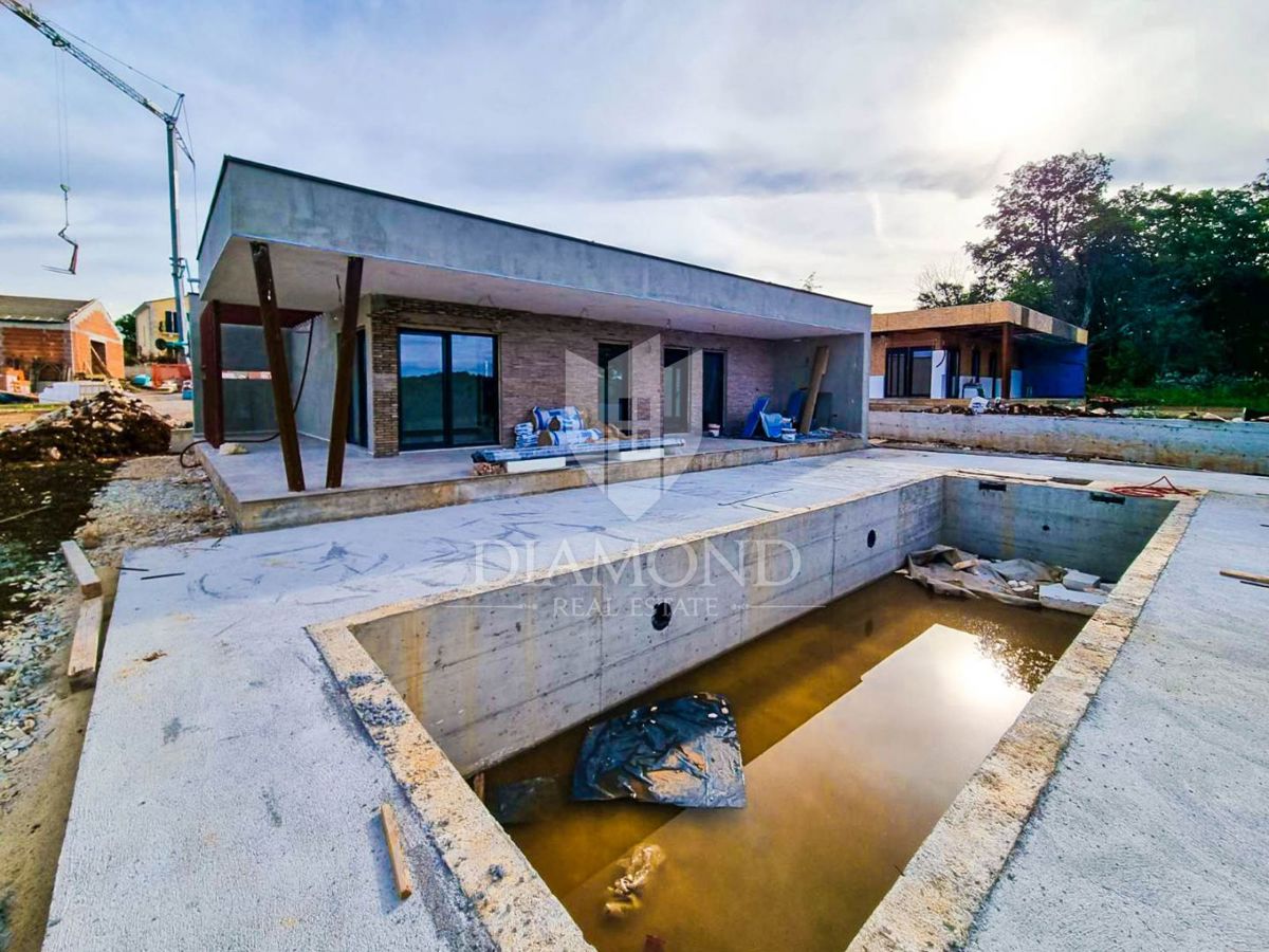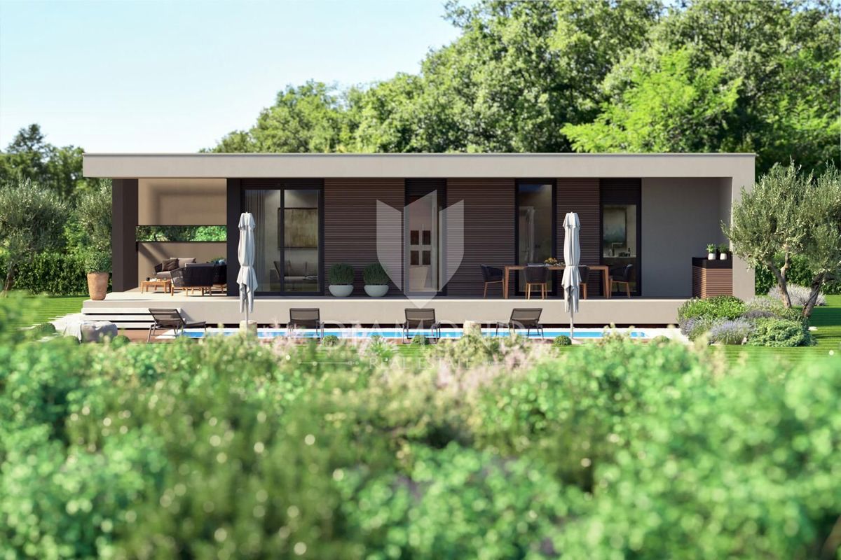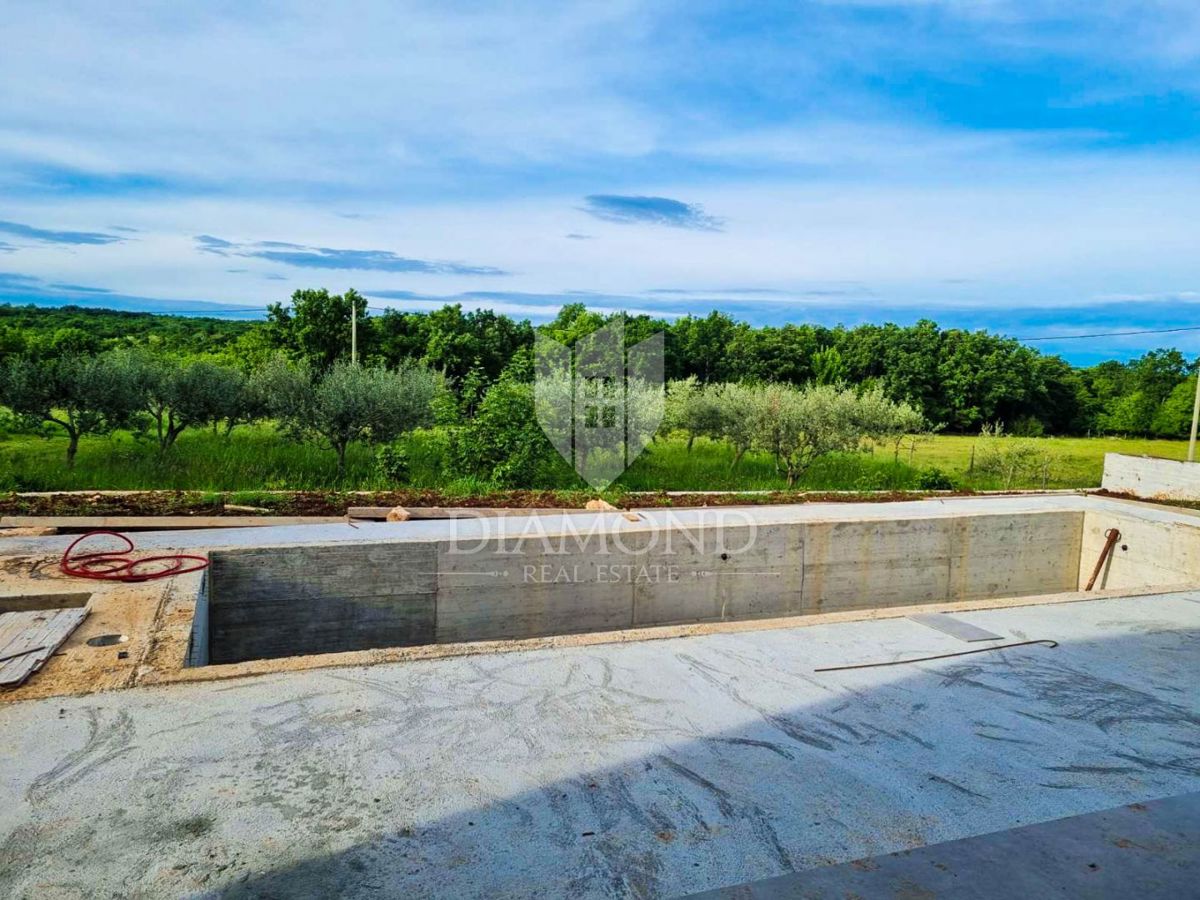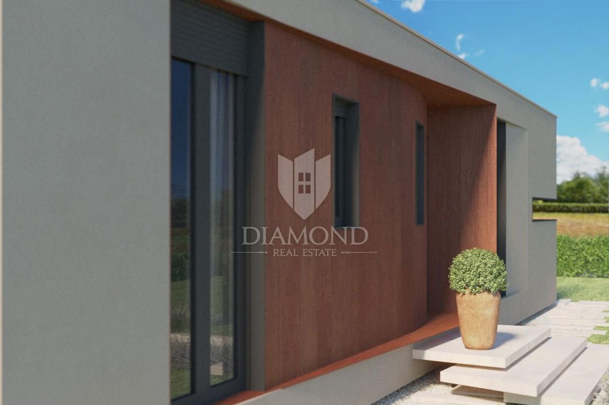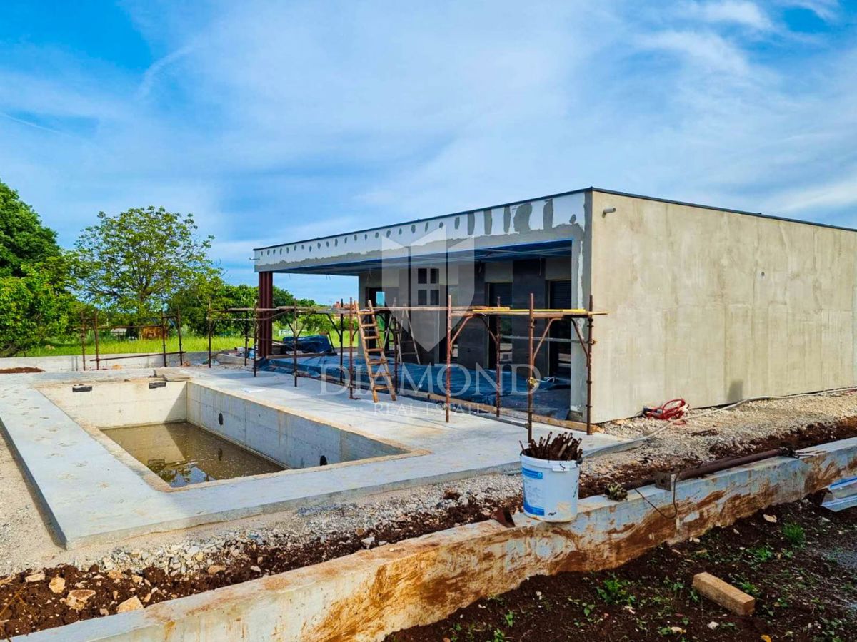 Poreč, okolica, prizemnica sa bazenom u mirnom mjestu! U mirnom mjestu predgrađa grada Poreča na samo 18 km udaljenosti od prvih plaža smjestila se prizemnica sa bazenom. Njezina ukupna veličina iznosi 98.11 m2 te se sastoji od prostranog dnevnog boravka