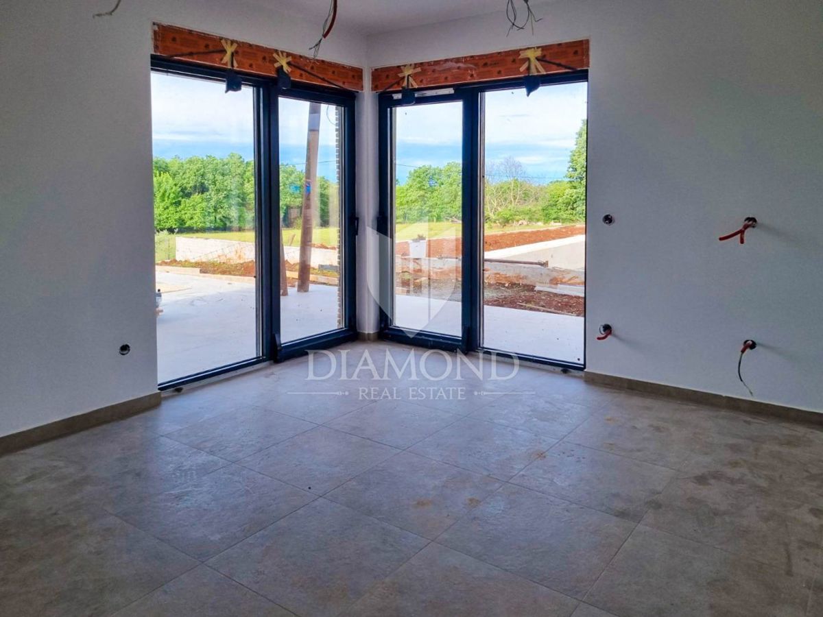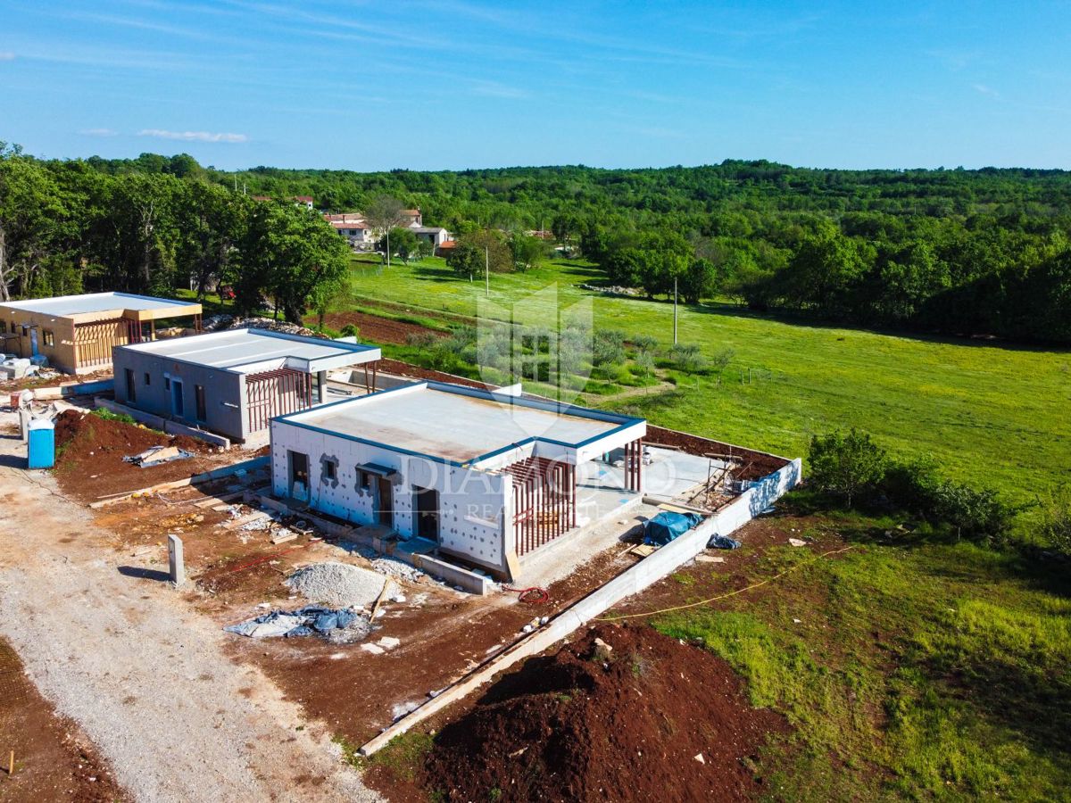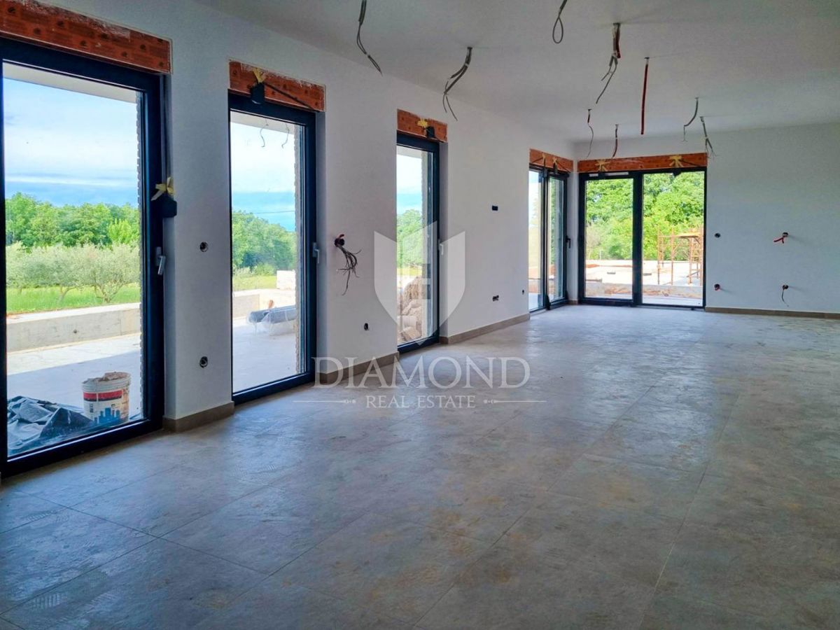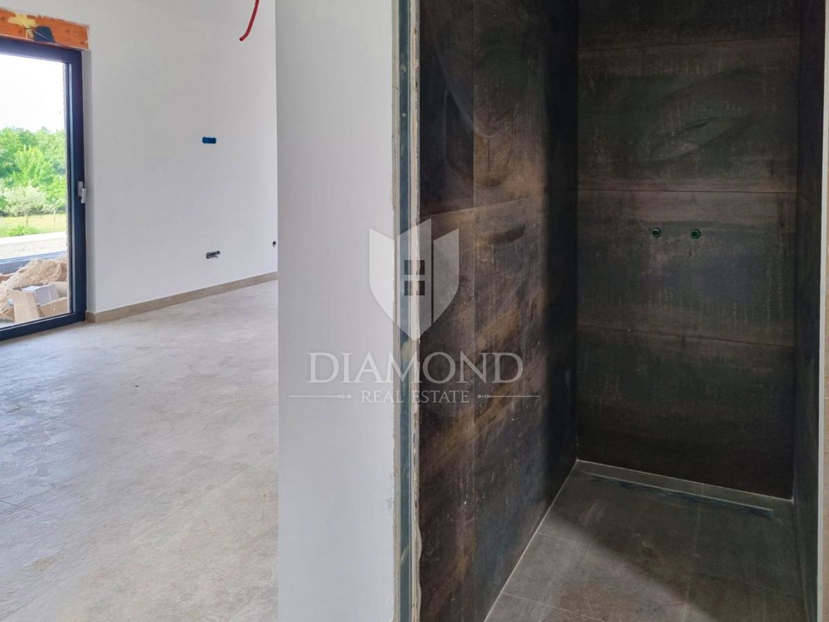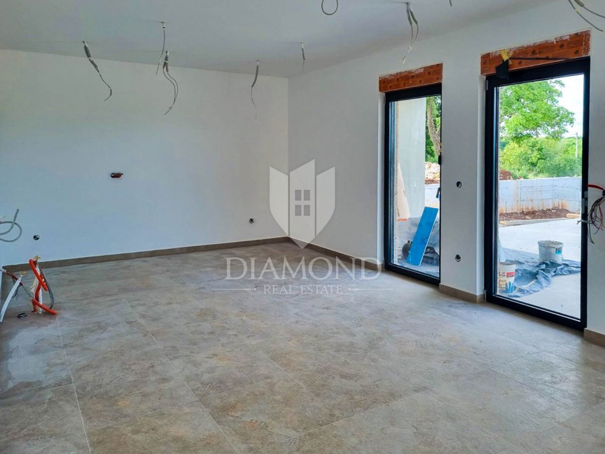 Poreč, okolica, prizemnica sa bazenom u mirnom mjestu! U mirnom mjestu predgrađa grada Poreča na samo 18 km udaljenosti od prvih plaža smjestila se prizemnica sa bazenom. Njezina ukupna veličina iznosi 98.11 m2 te se sastoji od prostranog dnevnog boravka