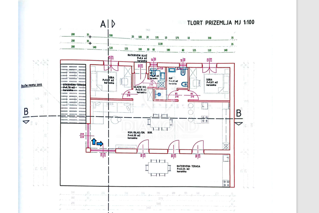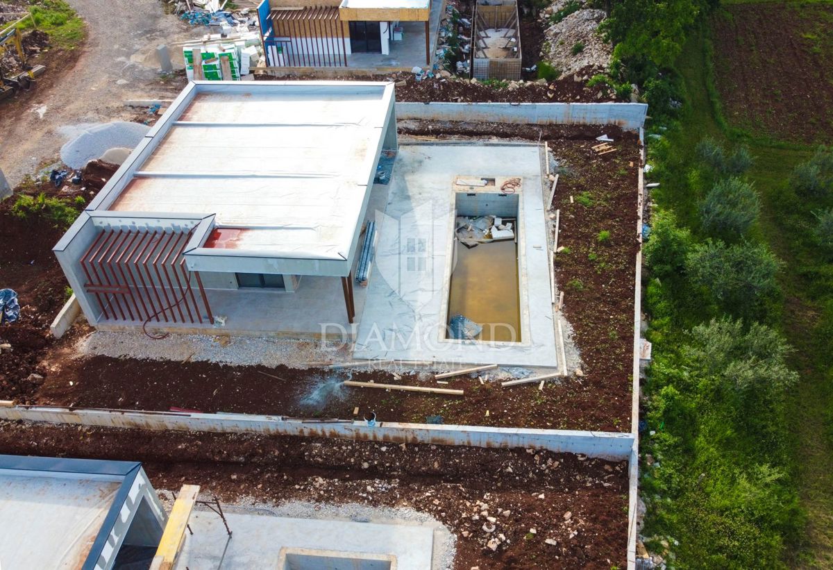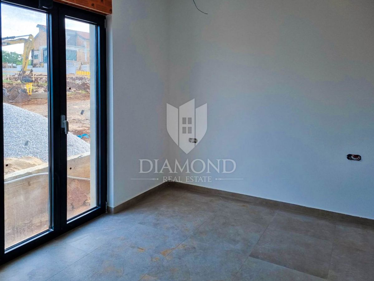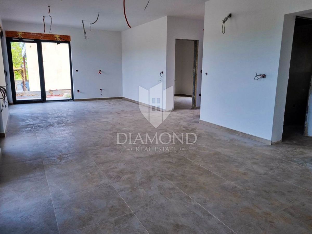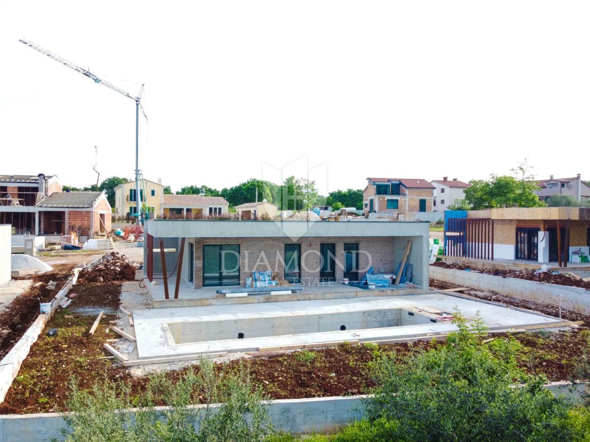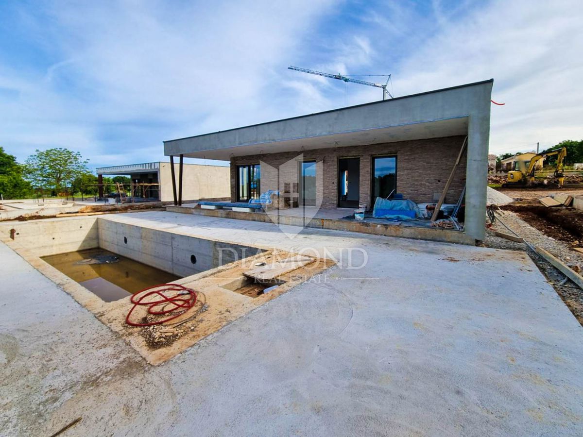 Poreč, okolica, prizemnica sa bazenom u mirnom mjestu! U mirnom mjestu predgrađa grada Poreča na samo 18 km udaljenosti od prvih plaža smjestila se prizemnica sa bazenom. Njezina ukupna veličina iznosi 98.11 m2 te se sastoji od prostranog dnevnog boravka