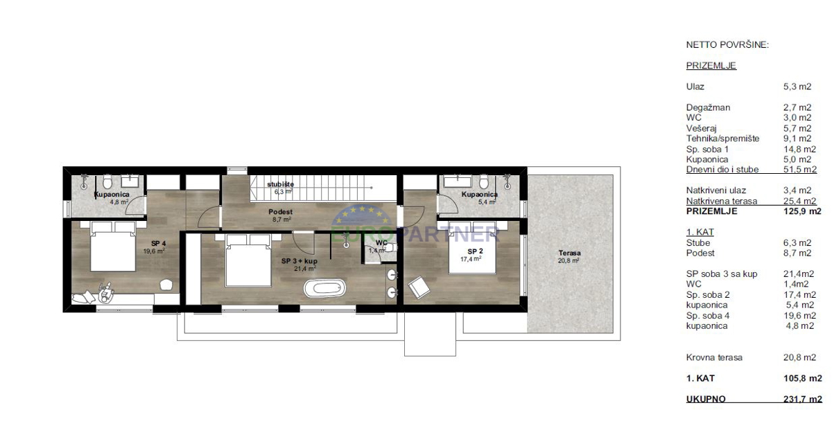 Prodaje se predivna moderna luksuzna vila u okolici Poreča. Vila je pozicionirana na zemljištu koje se nalazi na rubu građevinske zone čime je osiguran mir i privatnost. Radi se o vili modernog dizajna, spoja novije modernije arhitektonske struje i istars