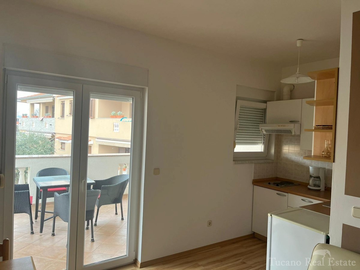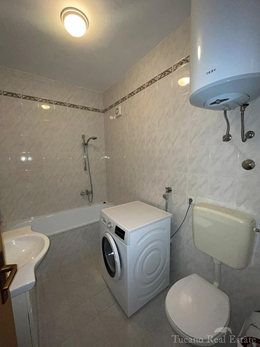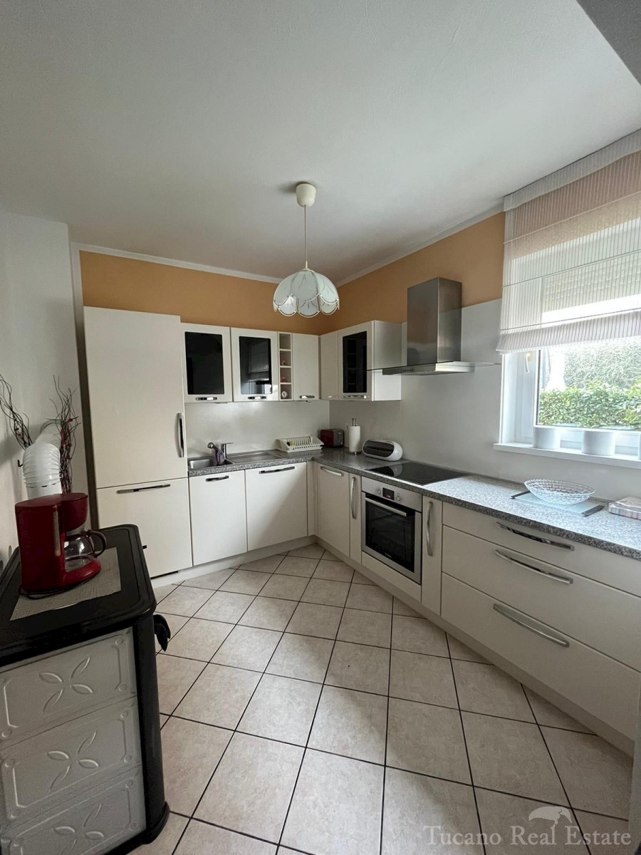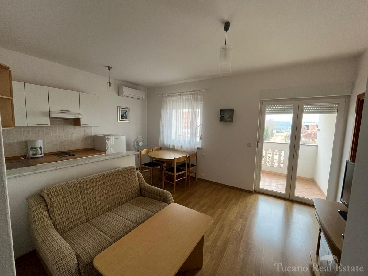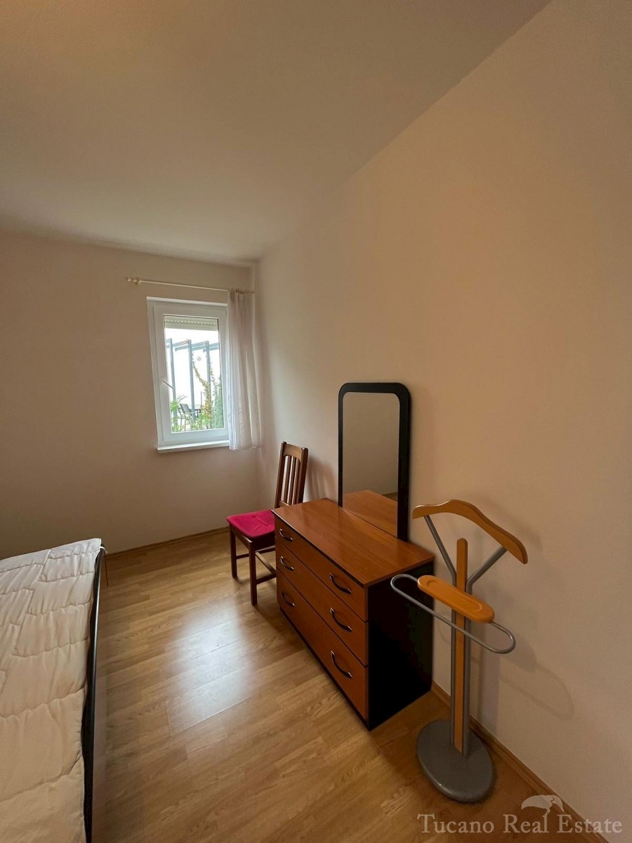 Samostojeća apartmanska kuća , 800 m od mora , na parceli od 545 m2 , ukupne stambene površine 370 m2 , u 3 etaže : Prizemlje : komforan trosoban stan od 130 m2 , sa kuhinjom , blagovaonicom , dnevnim boravkom , 3 spavaće sobe i dvije kupaonice , spremiš
