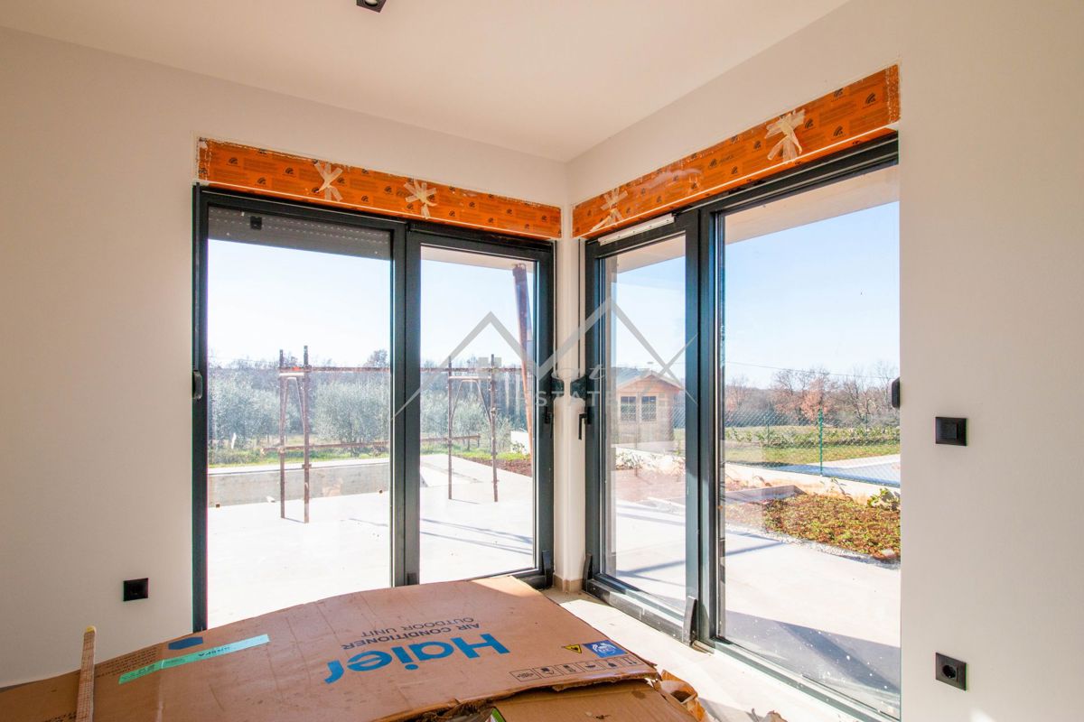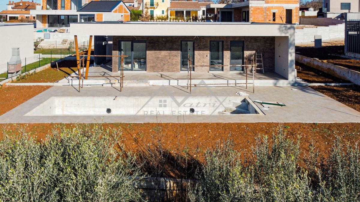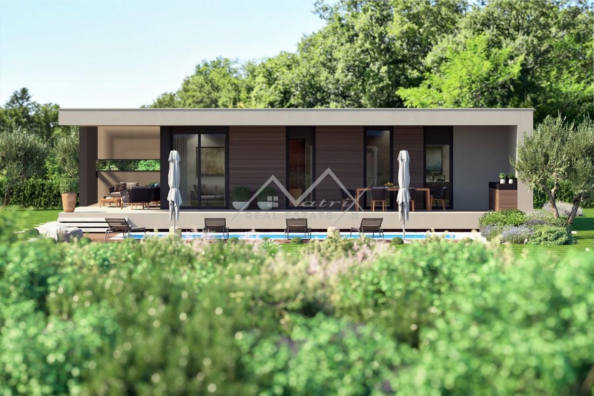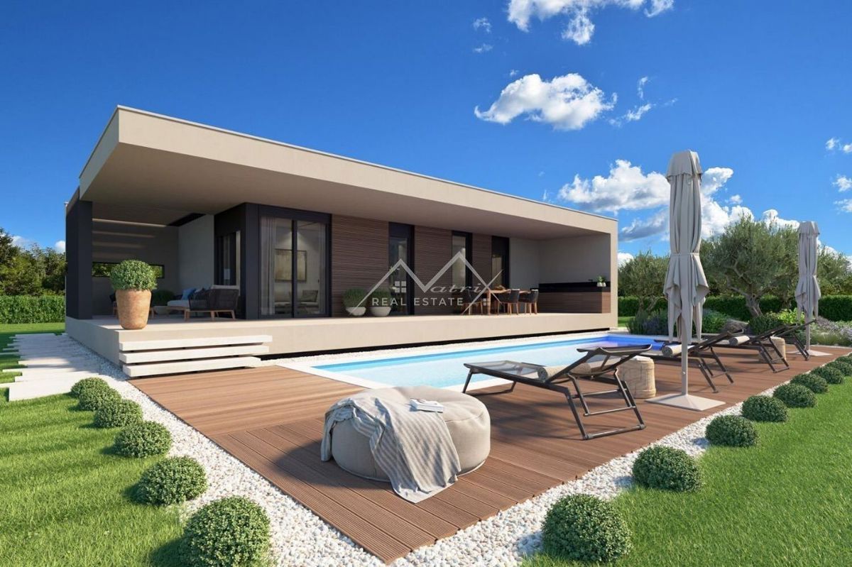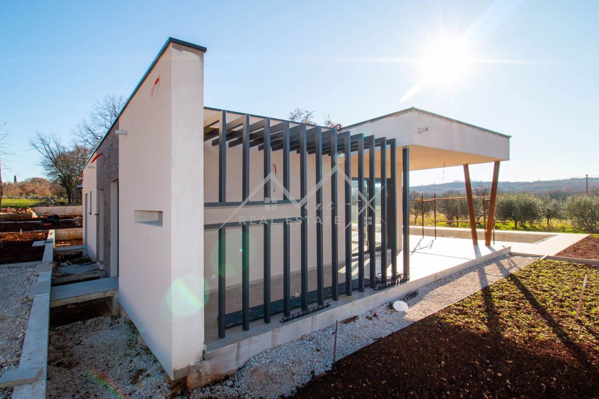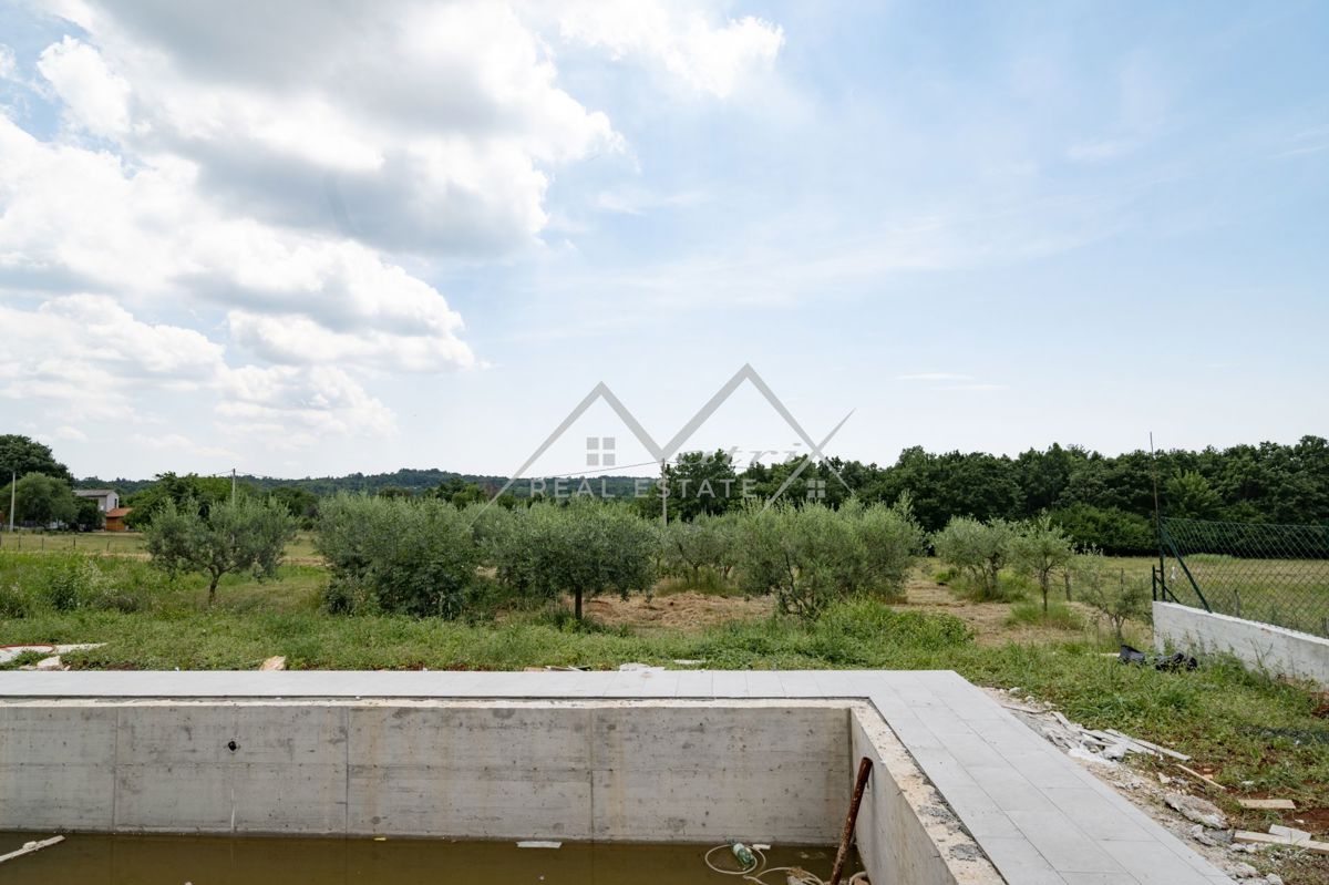 Predstavljamo vam ovu fantastičnu modernu prizemnicu s grijanim bazenom, smještenu na rubu građevinske zone mirnog naselja blizu mora i grada Poreča. Ova prekrasna kuća pruža spektakularan pogled na masline i prirodu, stvarajući idiličnu atmosferu mediter