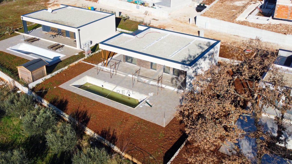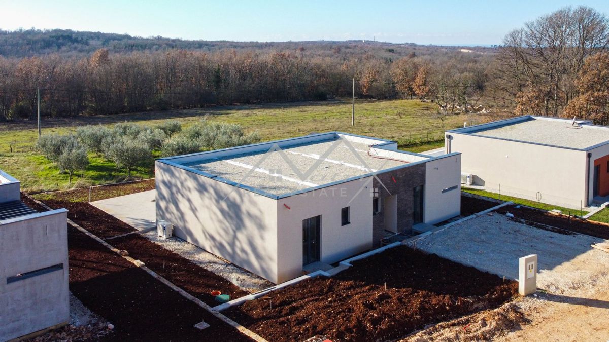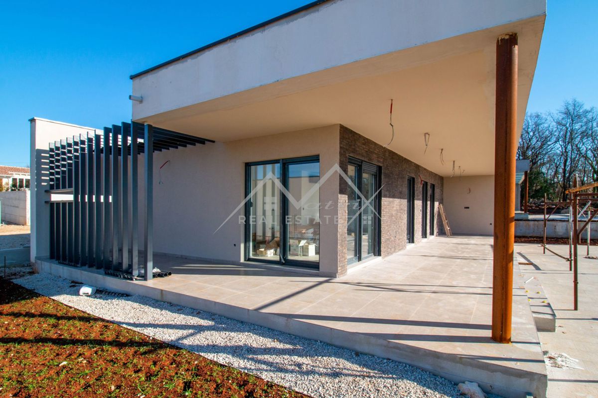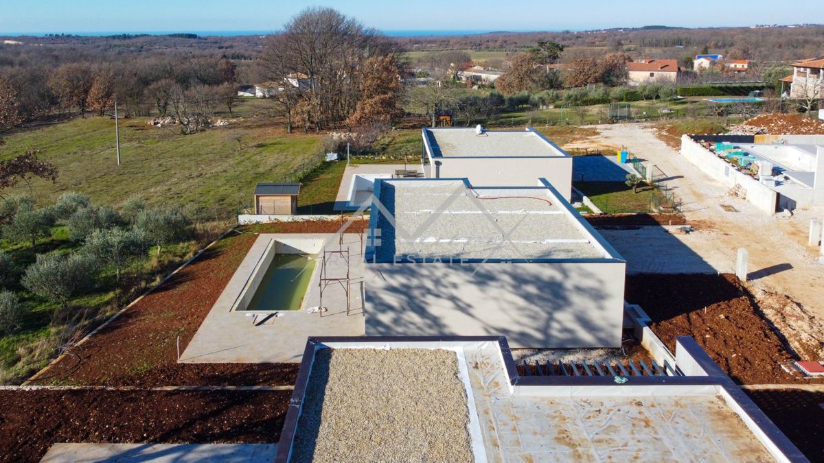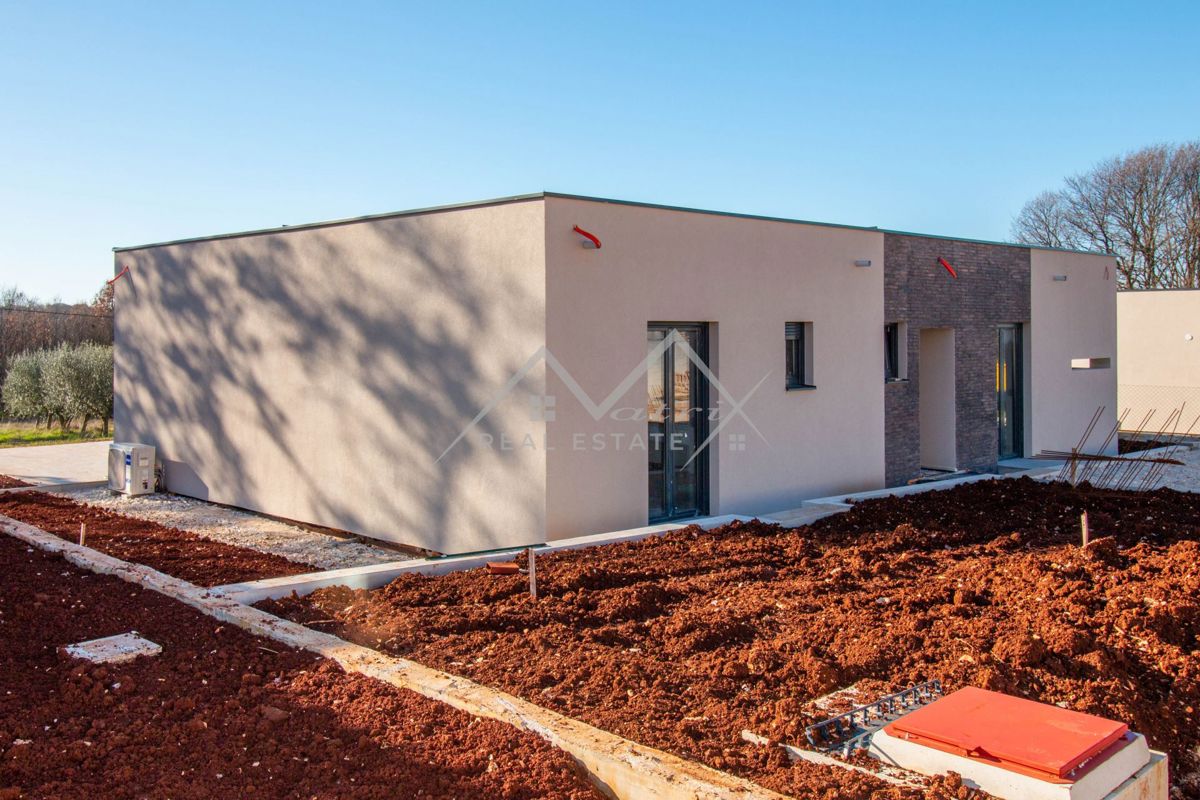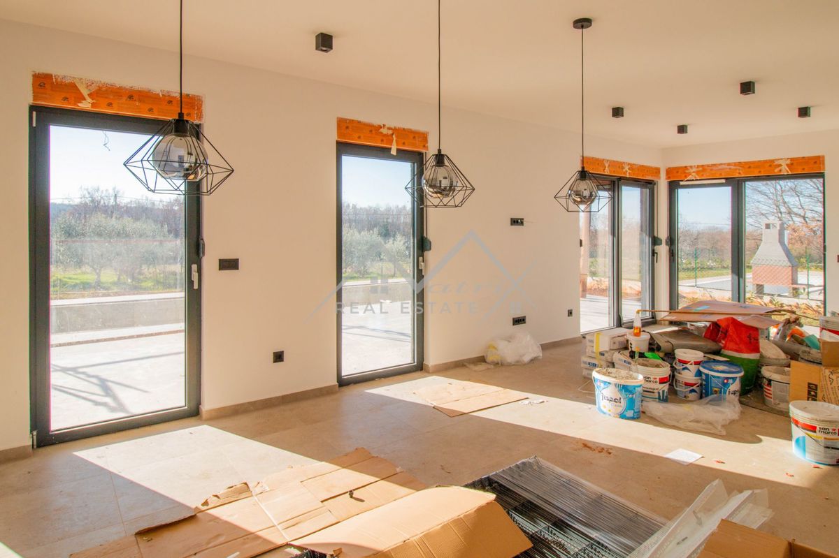 Predstavljamo vam ovu fantastičnu modernu prizemnicu s grijanim bazenom, smještenu na rubu građevinske zone mirnog naselja blizu mora i grada Poreča. Ova prekrasna kuća pruža spektakularan pogled na masline i prirodu, stvarajući idiličnu atmosferu mediter