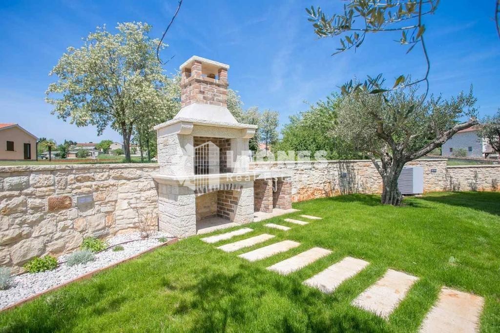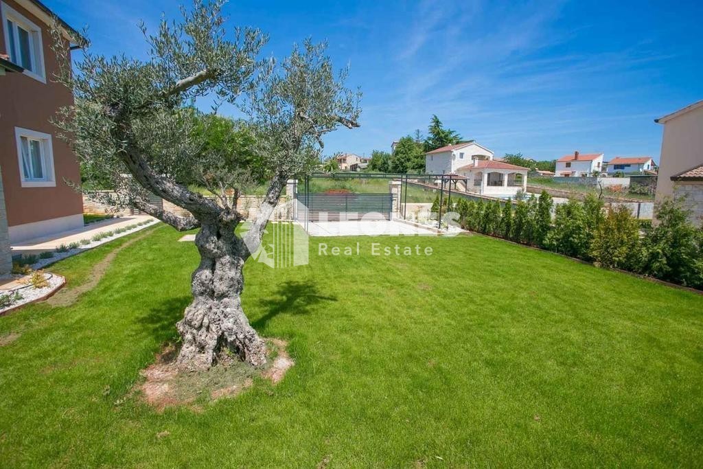 Kuća s bazenom u okolici Poreča Prodaje se predivna kuća s bazenom 8 km od mora i grada Poreča. Površina kuće je 155 m2 dok je površina zemljišta 620 m2 na kojemu je smješten bazen od 26 m2, natkriveni parking te dječje igralište. Prizemlje se sastoji od
