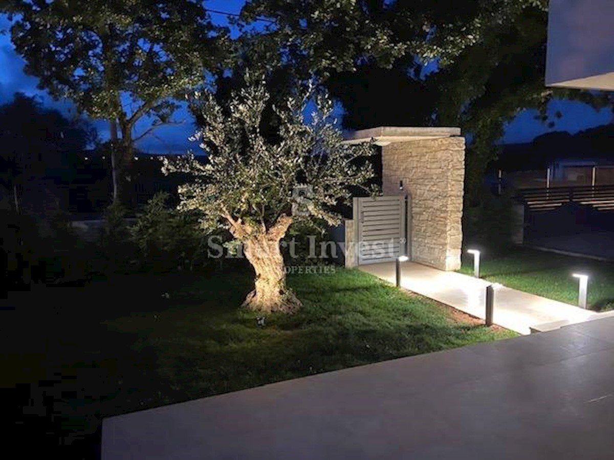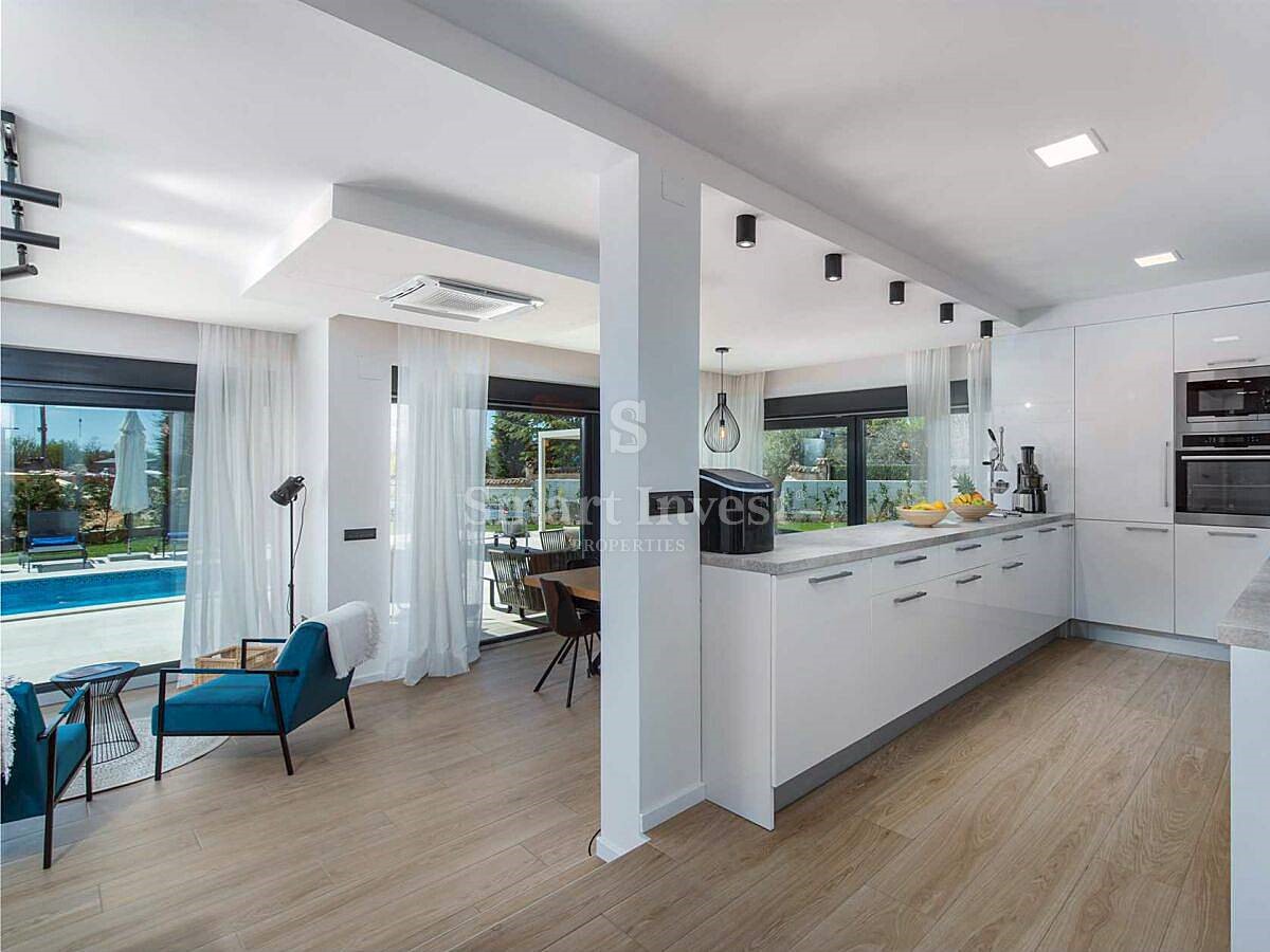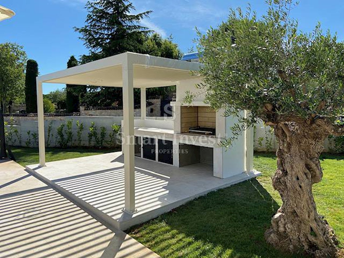 POREČ okolica, Na prodaju je atraktivna moderna vila s grijanim bazenom na lijepoj mirnoj lokaciji u malom istarskom selu nedaleko od Poreča. Kuća neto površine 201,38 m2 smještena je na lijepo uređenom zemljištu površine 1.065 m2, ima 4 spavaće sobe, 4